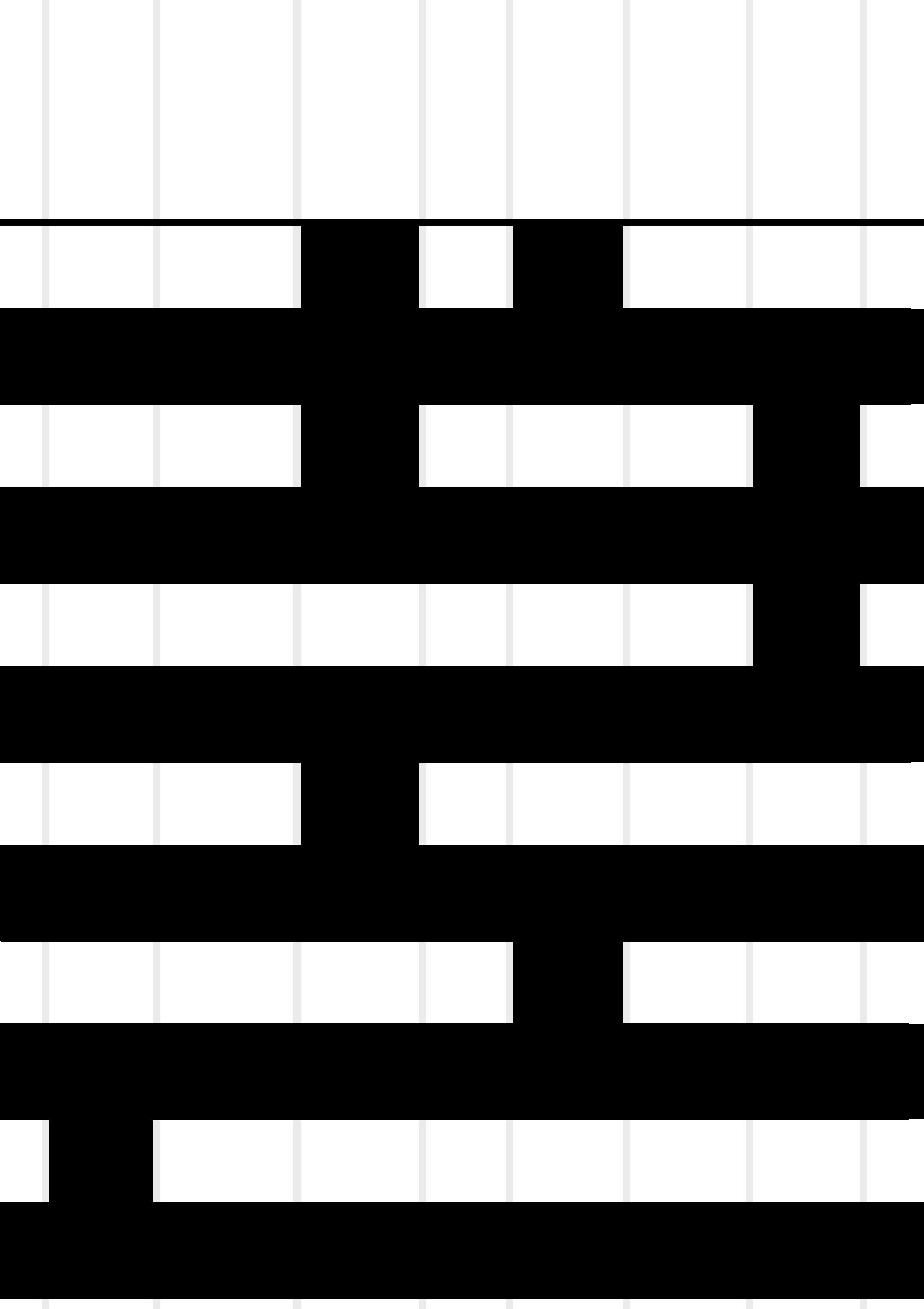 0 = nič1 = 12 = 23 = 3 alebo 1 + 24 = 4 alebo 1 + 35 = 2 + 3 alebo 1 + 46 = 2 + 4 alebo 1 + 2 + 37 = 3 + 4 alebo 1 + 2 + 48 = 1 + 3 + 49 = 2 + 3 + 4pred každou číslicou je plná čierna čiara, na ktorej sa skener zarovná, potom sa posunie o kúsok ďalej a tam prečíta ďalšiu cifru. Po prečítaní trojciferného čísla číslice zaradom vyťuká na klávesnici.
