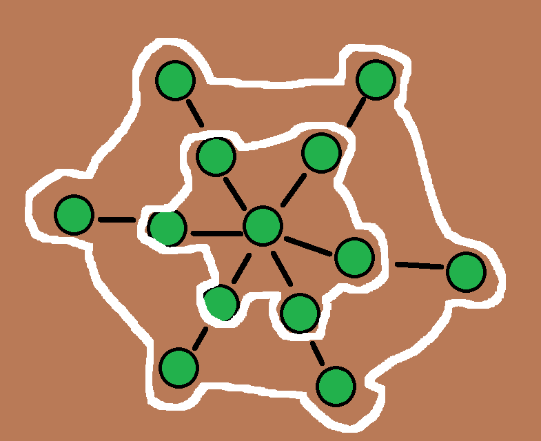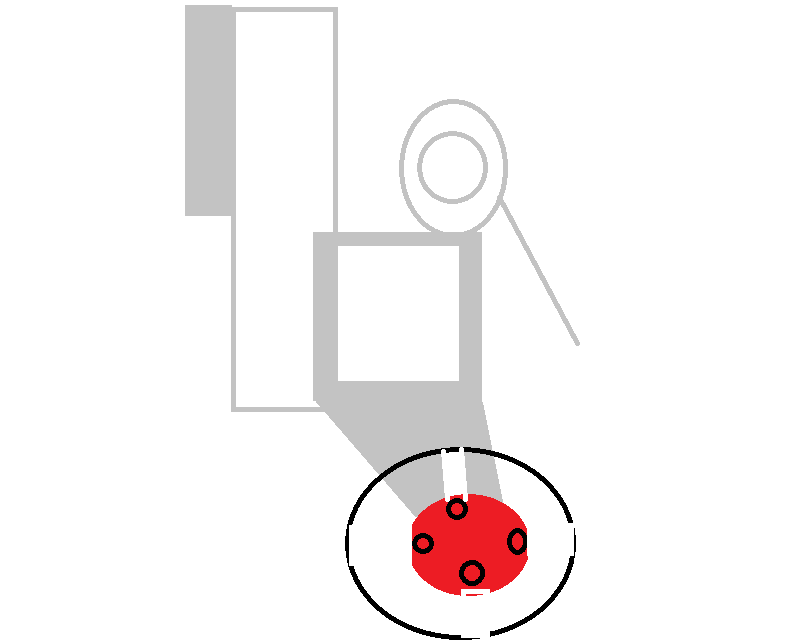Chceli sme robotovi postavit ihrisko ako je na obrazku, kde zelene kruhy su plastove flase, bielou je biela paska, ciernou je cierna paska a hnedou su parkety. Robot by najprv sledoval bielu ciaru, cim by obmotal jednym smerom plastove flase, a potom by chodil po ciernych ciarach a spajal by flase spojene ciernou ciarou. Pritom by sa mu odmotavala nitka z drziaku.