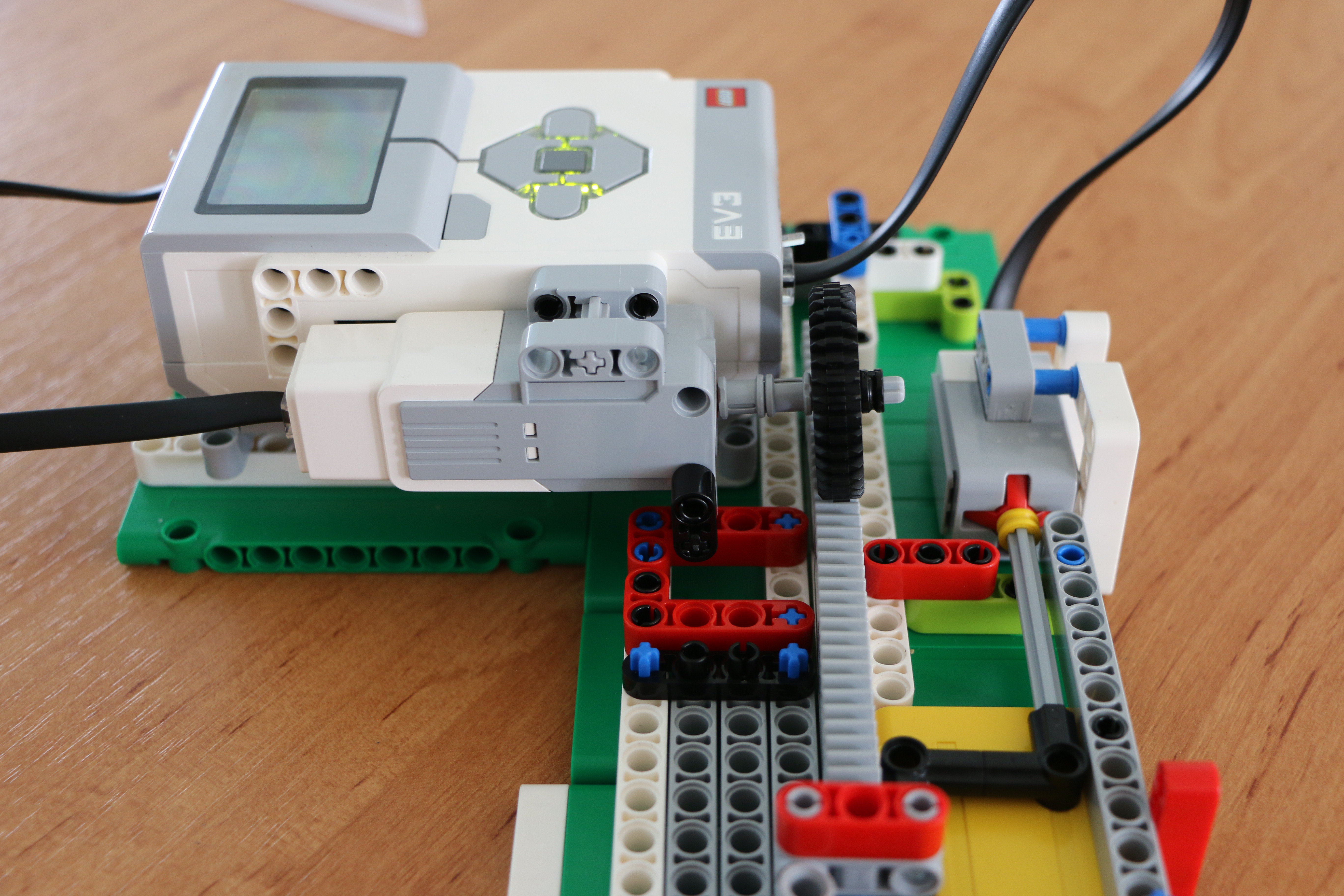 Zostrojili sme robota,ktorý má za úlohu odmeriať tyčky pomocou posuvného zariadenia zloženého z lego dielikov.Posuvné zariadenie poháňa jeden motor.Na posuvnom zariadení je pripevnená tyčka,ktorú má odmeriať.Pred posuvným zariadením sa nachádza tlakový senzor,ktorý kedˇstlačí tyčka,zapíše nameranú hodnotu.Nameraná hodnota je vypočítaná pomocou rovnice,ktorá prevedie počet otáčok motora v stupňoch do prejdenej vzdialenosti v milimetroch. Našu rovnicu sme zostavili pomocou série meraní pravítkom. Konečnú hodnotu robot ukáže na displeji a to je celková dĺžka tyčky. Náš robot pracuje s +-1milimetrovou odchýlkou. Nášho robota sme skúšali s tyčkami všetkých dĺžok,ktoré sme mali k dispozícii.Na videu je ukážka s jednou tyčkou.