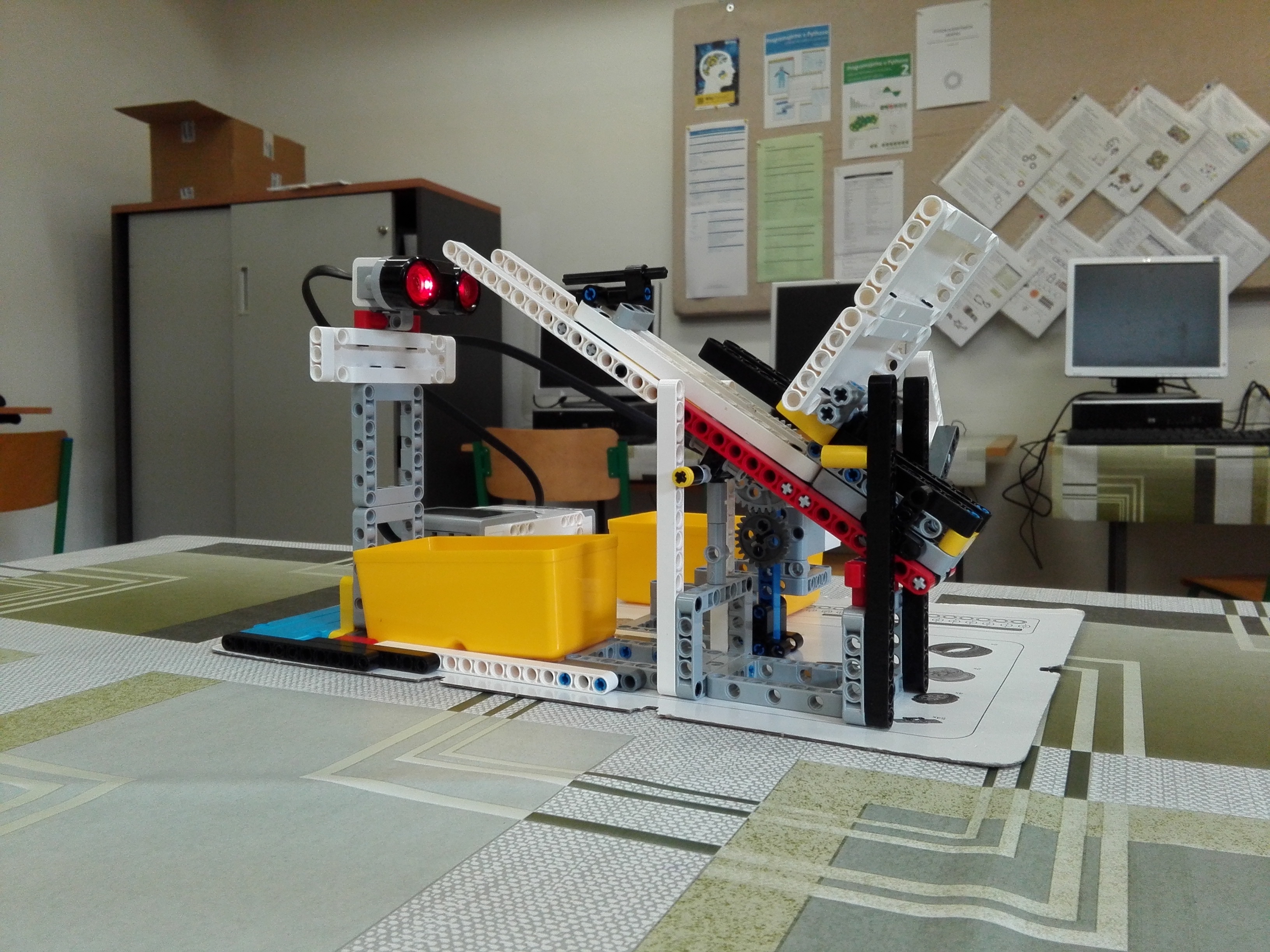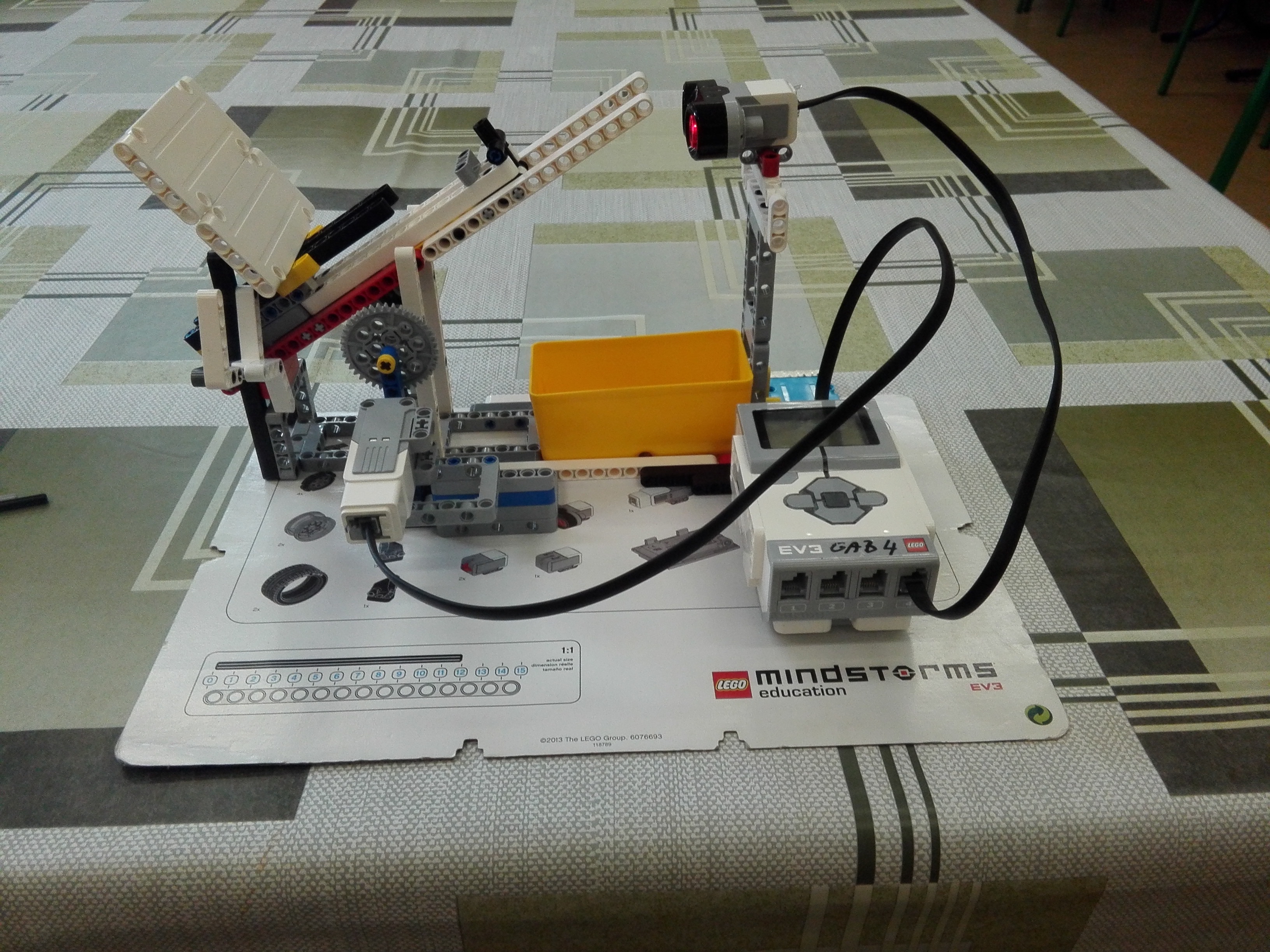 Spoločné poznámky: riešenia úloh v tomto kole boli veľmi inšpirujúce a tvorivé, dali ste si záležať. Nielen že ste mali výborné nápady, ale pohrali ste sa s množstvom technických detailov. Vznikla pekná séria šikovných mašiniek, na ktoré bolo radosť sa dívať. Rátalo sa mi, že ste využívali rozličné senzory a každý robot bol niečím iným zaujímavý. Všetky videá stoja za pozretie. Okrem prepracovaných riešení potešili aj tie minimalistické, ktoré využili nejaký šikovný trik a úlohu tak celú zvládli. Ešte stále sa niekomu stáva, že sa pozabudne a video nahráva mobilom na výšku namiesto na šírku, alebo, že mu pri nahrávaní tak bije srdiečko, že ani dodatočná softvérová stabilizácia obrazu nepomôže. Žiadny problém, ale skúste na to dať trochu pozor, nech to sa okrem vás z dobre urobenej práce môžu tešiť aj rozhodcovia, ostatní súťažiaci i náhodní návštevníci stránok. GAB.sc tím: Vyrobili ste fungujúci stroj, človek by ani neveril, že to ten ultrazvuk tak presne a spoľahlivo zmeria. 1. Pekne ste to vymysleli, hoci je to len také poloautomatické riešenie. Tá západka na konci mohla byť tiež s motorčekom. 2. Za vyriešenie úlohy Autoservis získavate 3b. Odporúčila by som nabudúce vypíssať číslice rovnako veľké aký bol otáznik. 3. Zaujímavé využitie nakláňania platne. Možno by bolo fajn využiť motor, ktorý by platňu posúval.