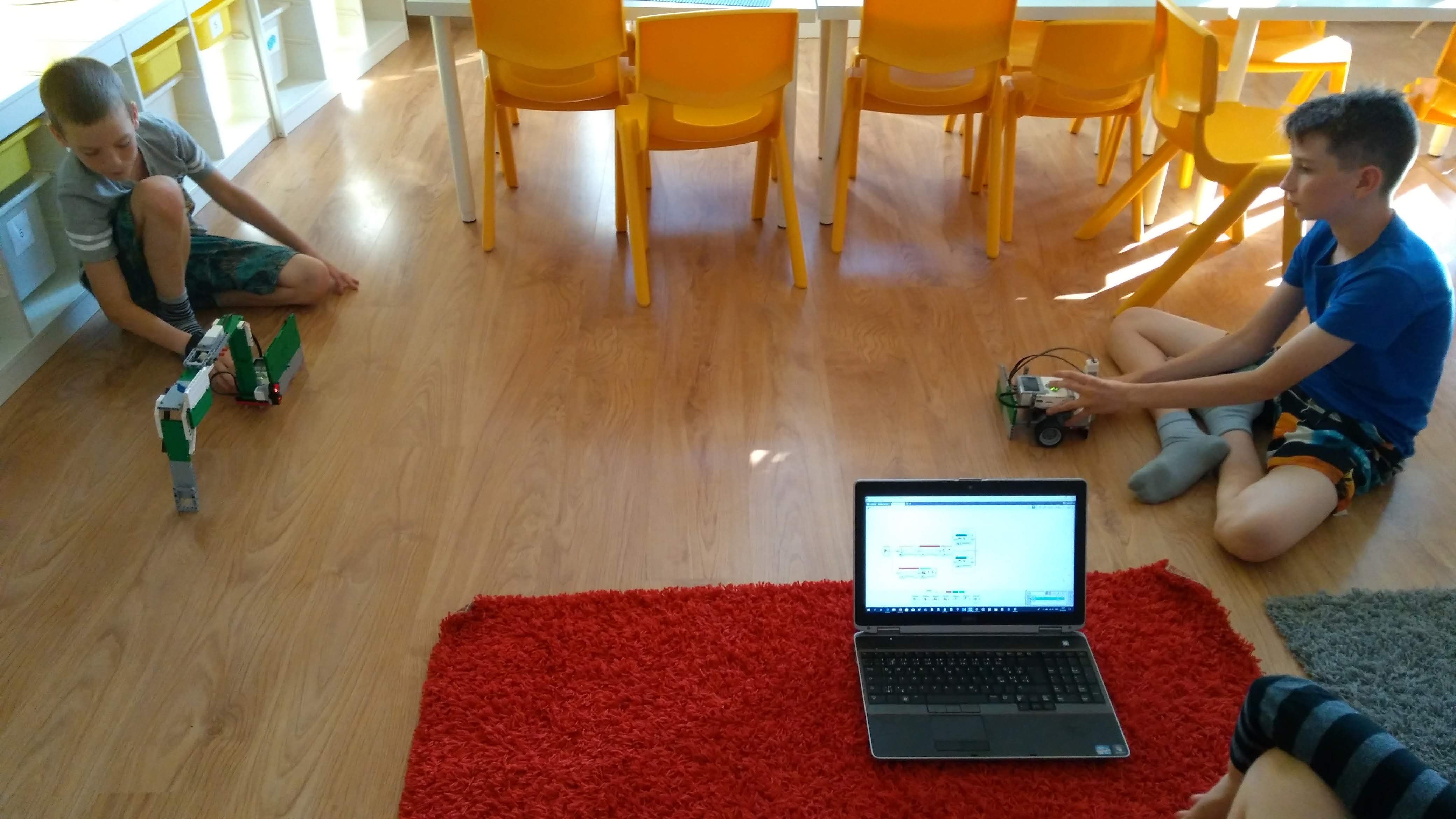 1. To je takmer raketový pohod, veľmi kreatívne riešenie! 2. Nuž, veru to poskočenie je na celej úlohe to najťažšie. Veľmi pekný pokus. 3. Robot nejakým spôsobom podskočil, ale pri tom sa ani moc neposunul.