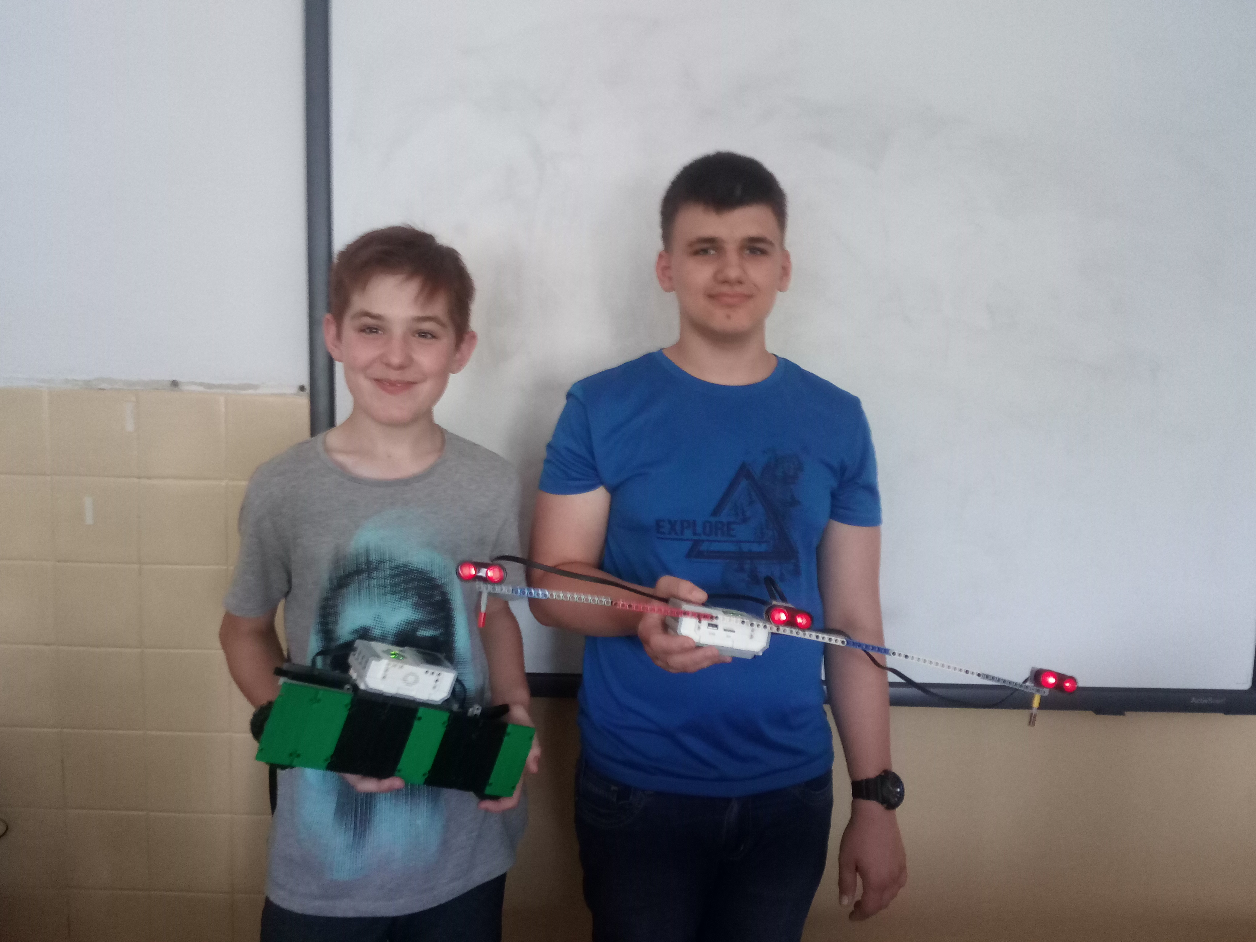 Všetci: Hoci už panuje predprázdninová výletná doba, niektorí boli v čase riešenia tohto kola dokonca v Kanade na majstrovstvách RoboCupu a aj u ostatných bolo vidieť, že aj keď riešili, často to bolo poznačené únavou z konca školského roka, ách. Ale prázdniny sú za dverami a potom začne sezóna FLL, ak ste sa náhodou ešte neprihlásili, teraz je na to najlepší čas. Úlohu o skákaní sa nikomu nepodarilo pekne vyriešiť a iba v jednom prípade došlo k odlepeniu sa od podložky (bez pomôcky v podobe schodu). A pritom stačilo použiť jeden sáčok gumičiek, skrčiť veľké žabacie nohy a uvoľniť ich klapkou motora... to ma teda sklamalo, že sa to nikomu nepodarilo. Naši robotici boli na dobrej ceste, jednu nohu aj spravili, ale potom išiel jeden do Nemecka, druhý kamsi na exkurziu a tretí nasadil koncoročnú apatiu. Nuž, veď snáď sa k tomu niekto eŠte cez prázdniny dostane - ak hej, pošlite nám video! Počul som, že niektorý tím to chcel riešiť odrazovou rampou, ale robot z rampy len padol ako hnilá hruška. :-) Tak sa aspoň inšpirujme touto veselou súťažou: Robot Long Jump. Koncoročné horúčavy sme predpokladali a tak sme druhú úlohu pre istotu zadali takú, čo by sme aj my zvládli spraviť :-), aby ste sa veľmi nenatrápili. A veru, tu sa to skoro všetkým podrilo pekne spracovať - niektorí pomocou dvoch alebo viacerých senzorov v kolmom smere a niektorí jedným senzorom, ktorý robil viacero meraní - to sa mi zdá byť predsa len úspornejšie, aj keď možno o niečo menej presné a trochu to naráža na problem nasmerovania - ak pravda nemá vozdilo do radaru nabúrať. NuŽ ale to už mi je len bezpečnosť - umiestniť radar do stredu vozovky :-). Ďakujeme vám za skvelý ročník plný výborných riešení (spolu ich bolo až 151) a dúfame, že sa pridáte i na budúci rok. Pripravujeme novinky, ale zatiaľ si ich necháme ako prekvapenie. :-) Veselé prázdniny!!! RobotSapiens: výborne - a nezabudnite cez leto trochu trénovať stručnosť a výstižnosť. :-) 1. Za úlohu Bezpečnosť na cestách získavate 3b. Na videu je vidieť, že ste zakomponovali aj pokutu pri nespomaleni. Páči sa mi, že je video komentované. 2. Pekné riešenie, ktoré robí všetko čo treba. 3. Oceňujem podrobnejší popis riešenia úlohy na videu a tiež viaceré situácie merania rýchlosti.