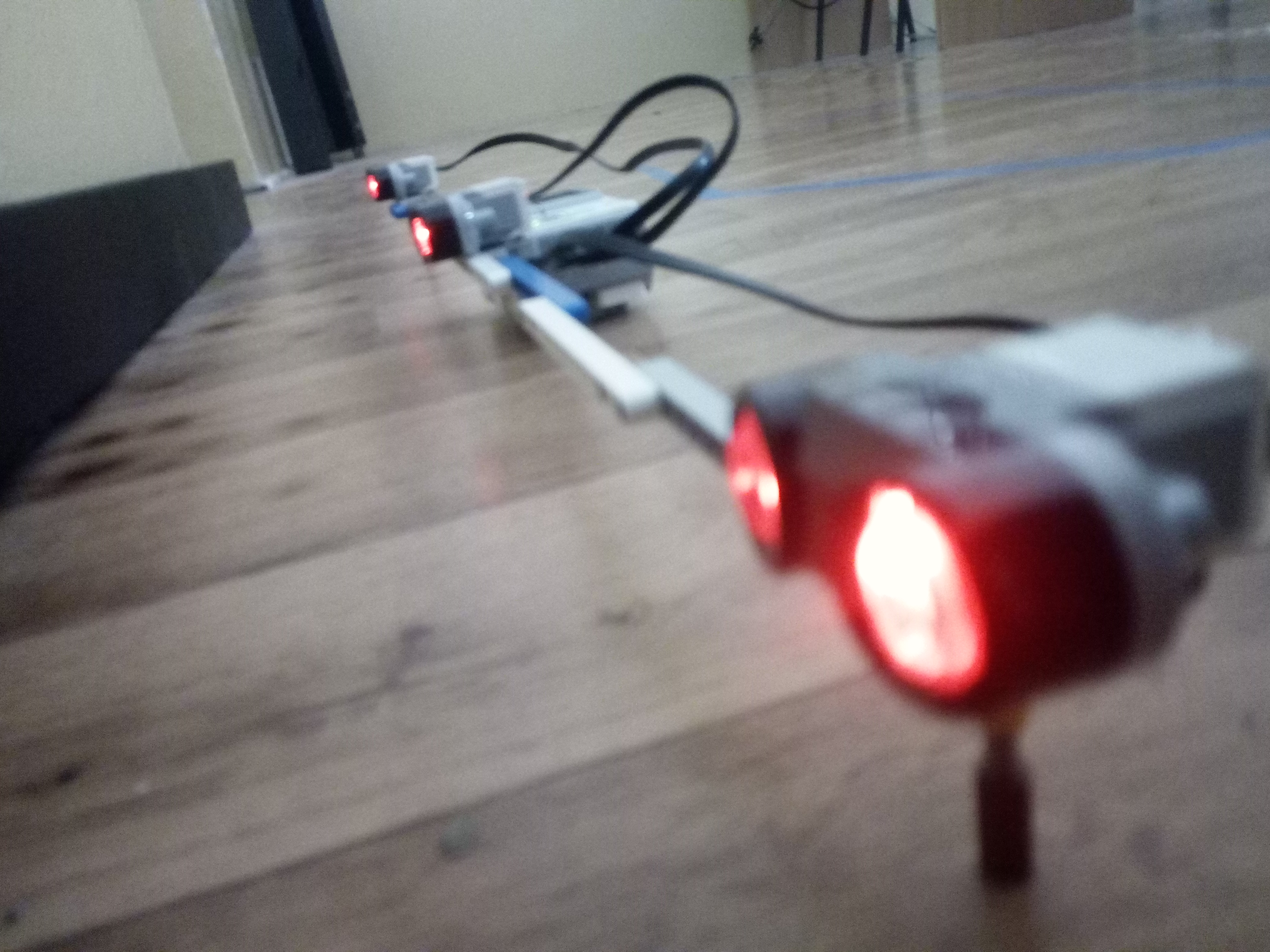 2.Potom robot čaká až pokiaľ sa počiatocná hodnota prestane rovnať hodnote ktorú momentálne vidí prvím ultrasonick sensorom.