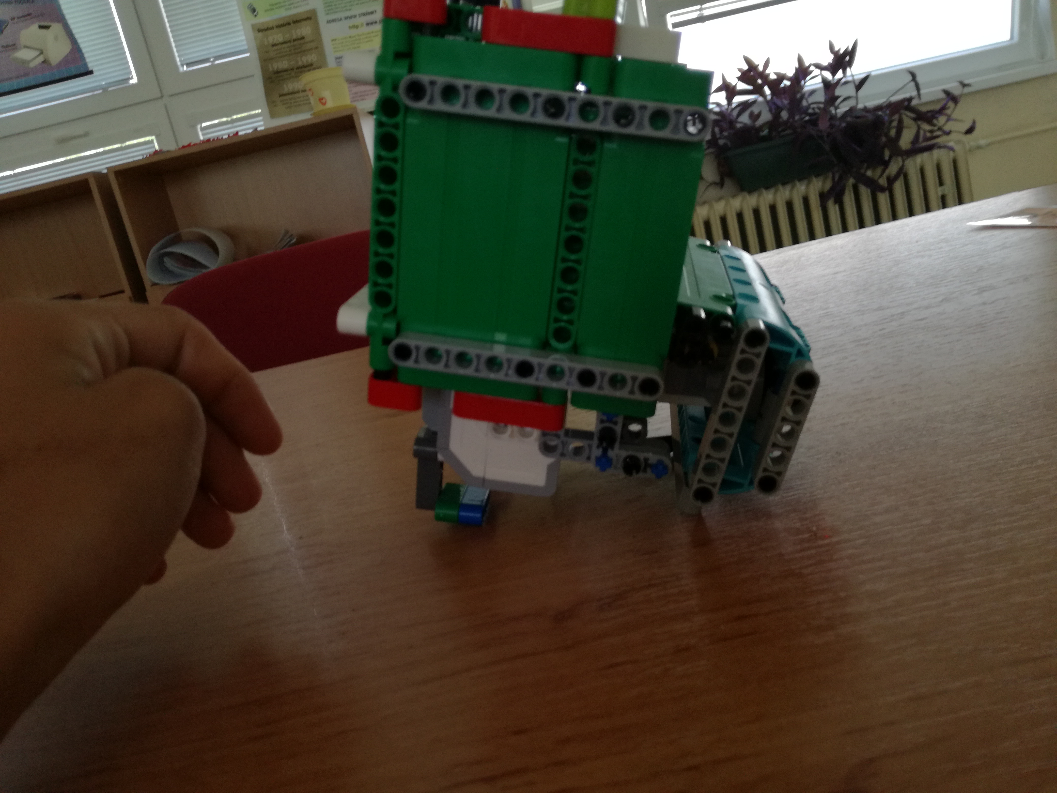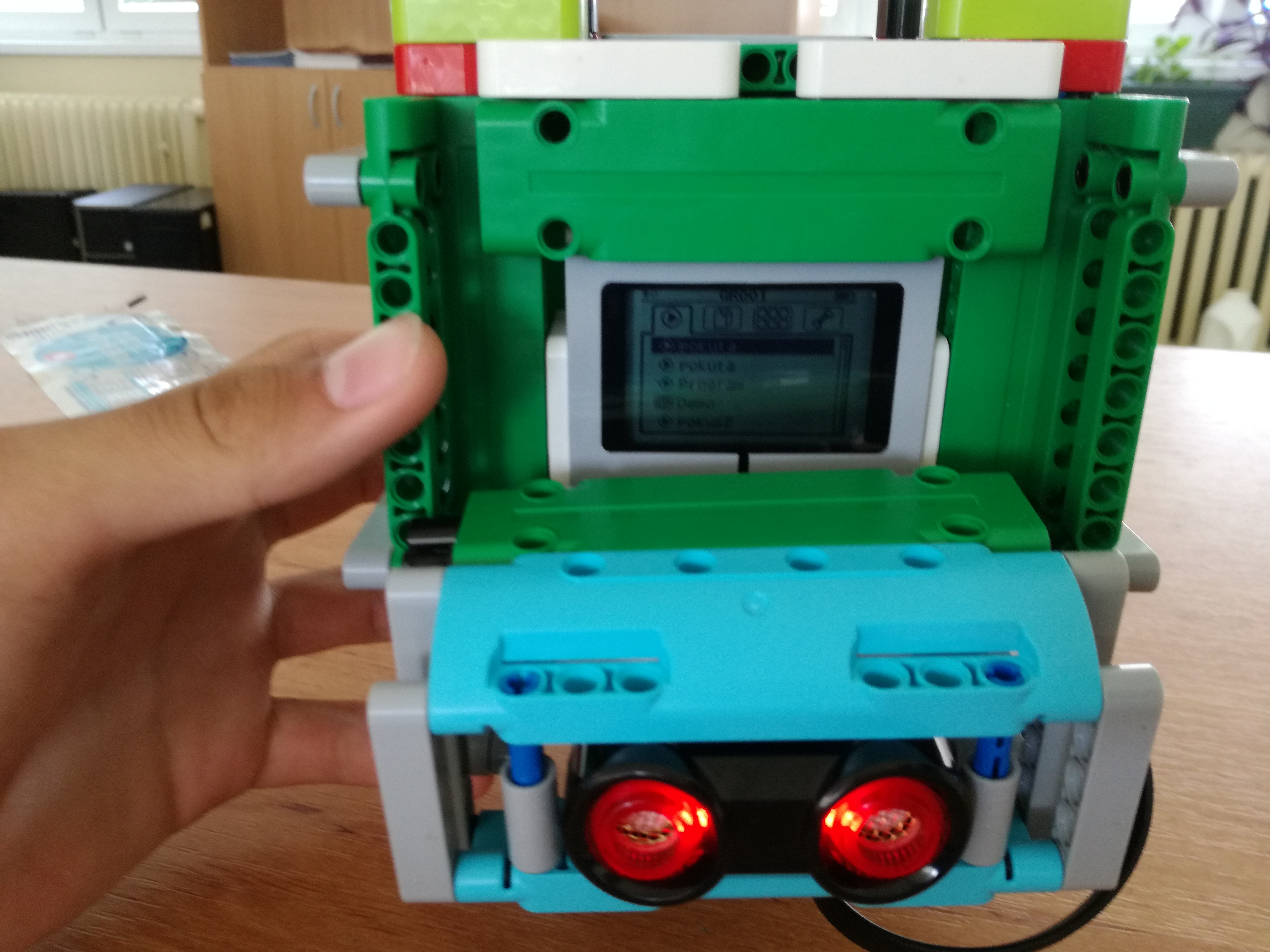 Zkonštruovali sme radar, ktorý meria rýchlosť oproti idúceho auta.Naprogramovali sme ho tak,že najprv odmeria vzdialenosť auta od radaru,potom sa auto presunie o 0.5 sekundy a radar ho zase odmeria.Rýchlosť sme vypočítali tak, že sme videlili dráhu časom.Dráha je rozdiel, ktorý prešlo auto za 0.5 sekundy.Jednotku sme si zvolili sami a to cm/s.Na displeji robot ukáže 3 čísla: