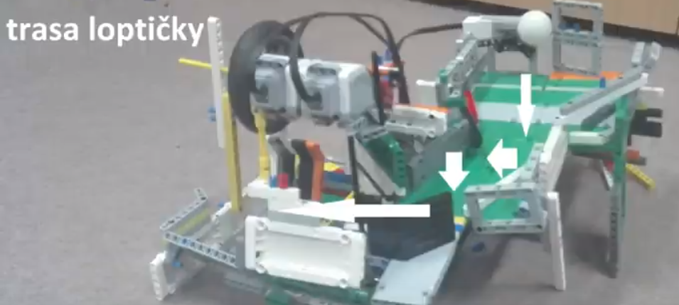 Sme radi, že ste sa pri riešení zabavili! :-) Aj konštrukcia je veselá, má umelecké prvky, to by len tak nejaký inžinier nevymyslel. Pekná spolupráca, skvelé, že ste s nami aj tento rok, dúfame, že vydržíte! Rozhodcovia: 1. Za úlohu Stolný tenis získavate 2.9b. Zostrojený robot má zaujímavú konštrukciu. Bez problémov dokáže vystreliť loptičky do diaľky. Robot je však statický a nedokáže vystrelovať loptičky do rôznych strán. 2. Na videu bolo vidieť, že robot vystrelil aspoň jednu loptičku do trošku väčšej vzdialenosti. Ešte by mal vystreľovať loptičky v rôznych smeroch. 3. Hm. To je rozhodne zaujímavá konštrukcia... Škoda, že ste neprirobili aj nejaký zásobník na viac loptičiek ale hlavne že ich nevystreľujete do viacerých smerov. A neprekvapuje ma, že Lazy Robots hrajú ping-pong po sediačky :) 4. Riešenie vystreľovača neumožňuje také vystrelenie loptičky, aby bol robot funkčný a využitý ako trenažér pre hráčov ping-pongu. Chýba zásobník a schopnosť náhodne vystreľovať loptičku do rôznych smerov. Do budúcna netreba zabúdať na kvalitný opis riešenia. Držím palce!