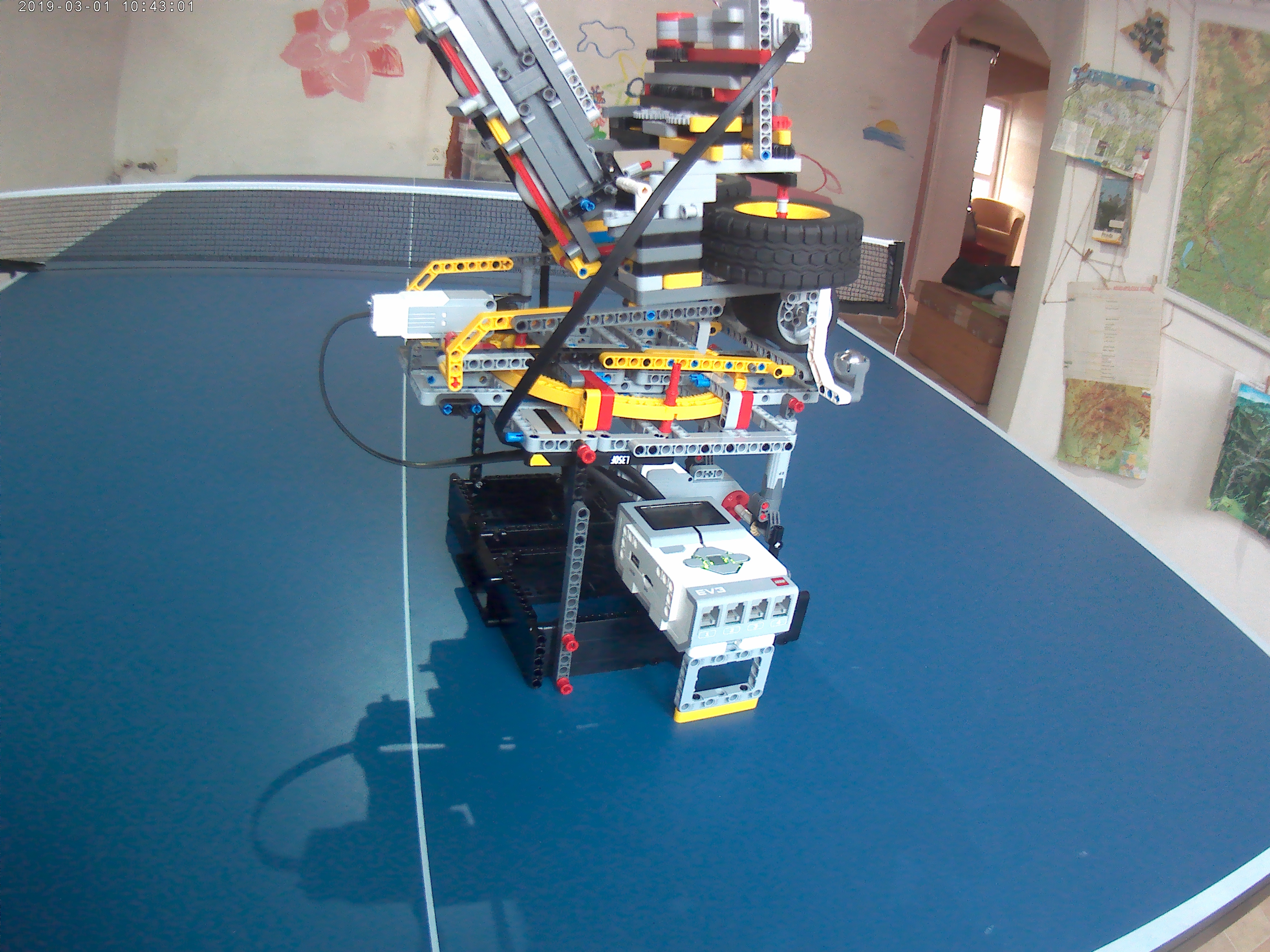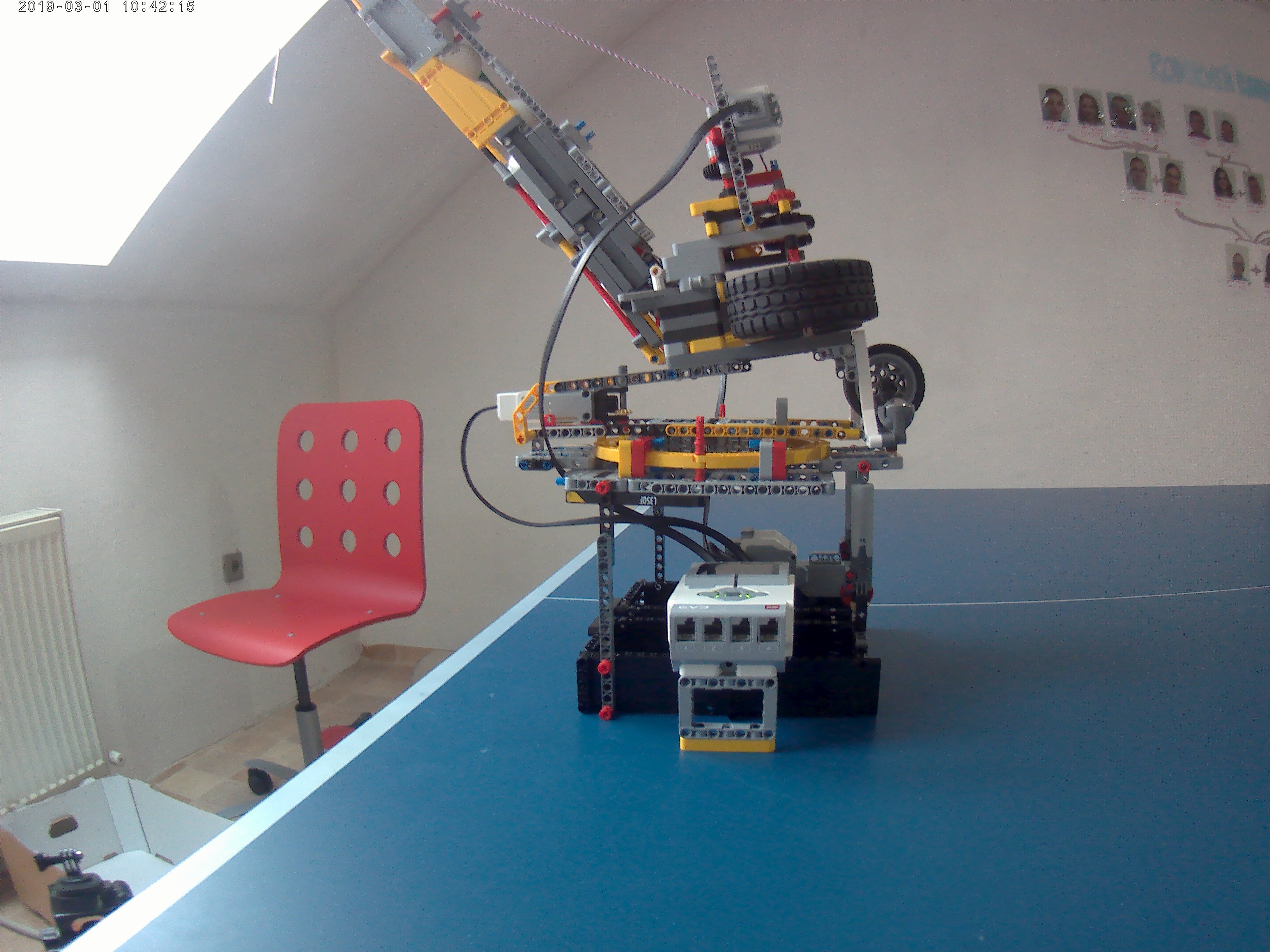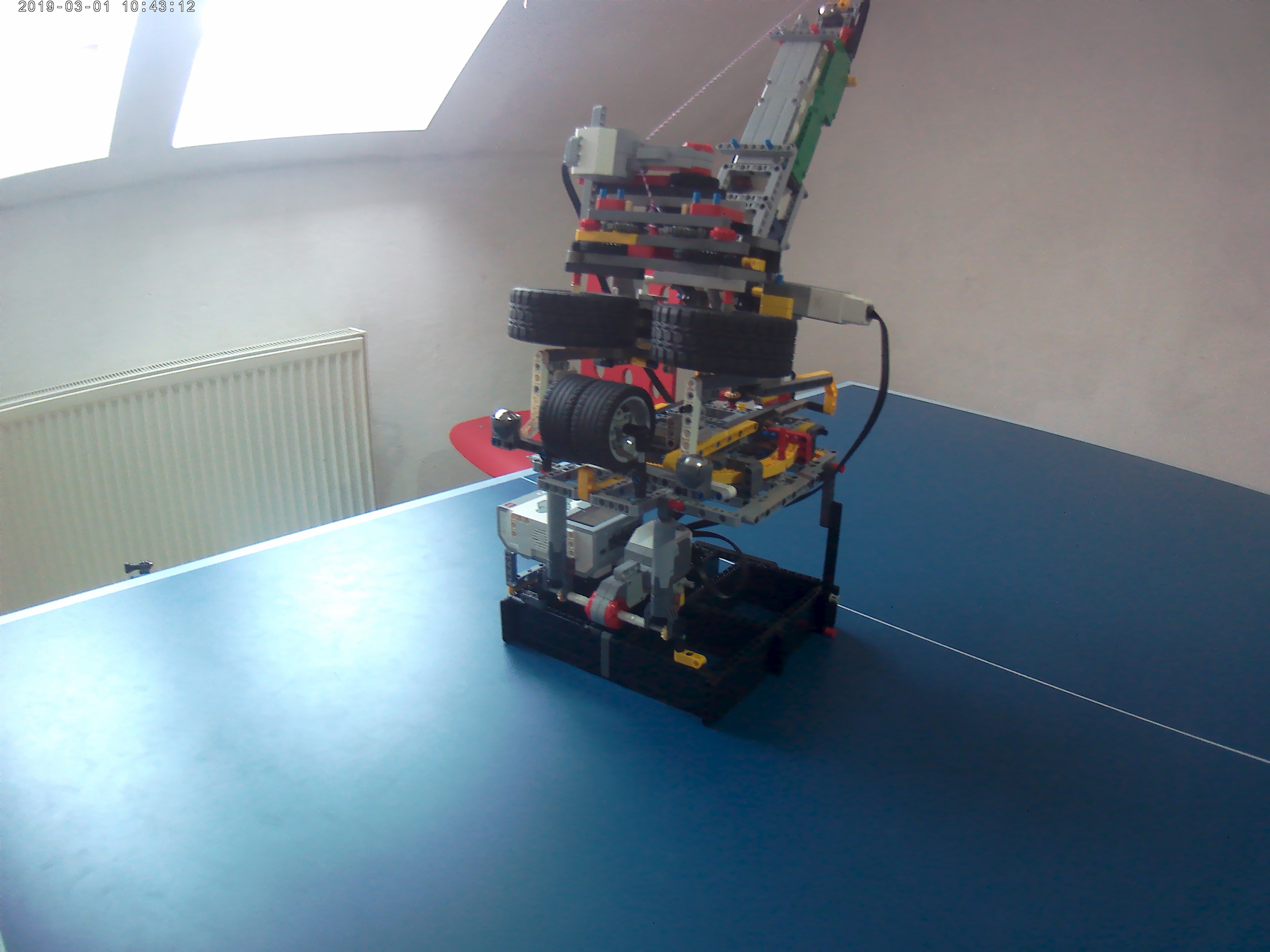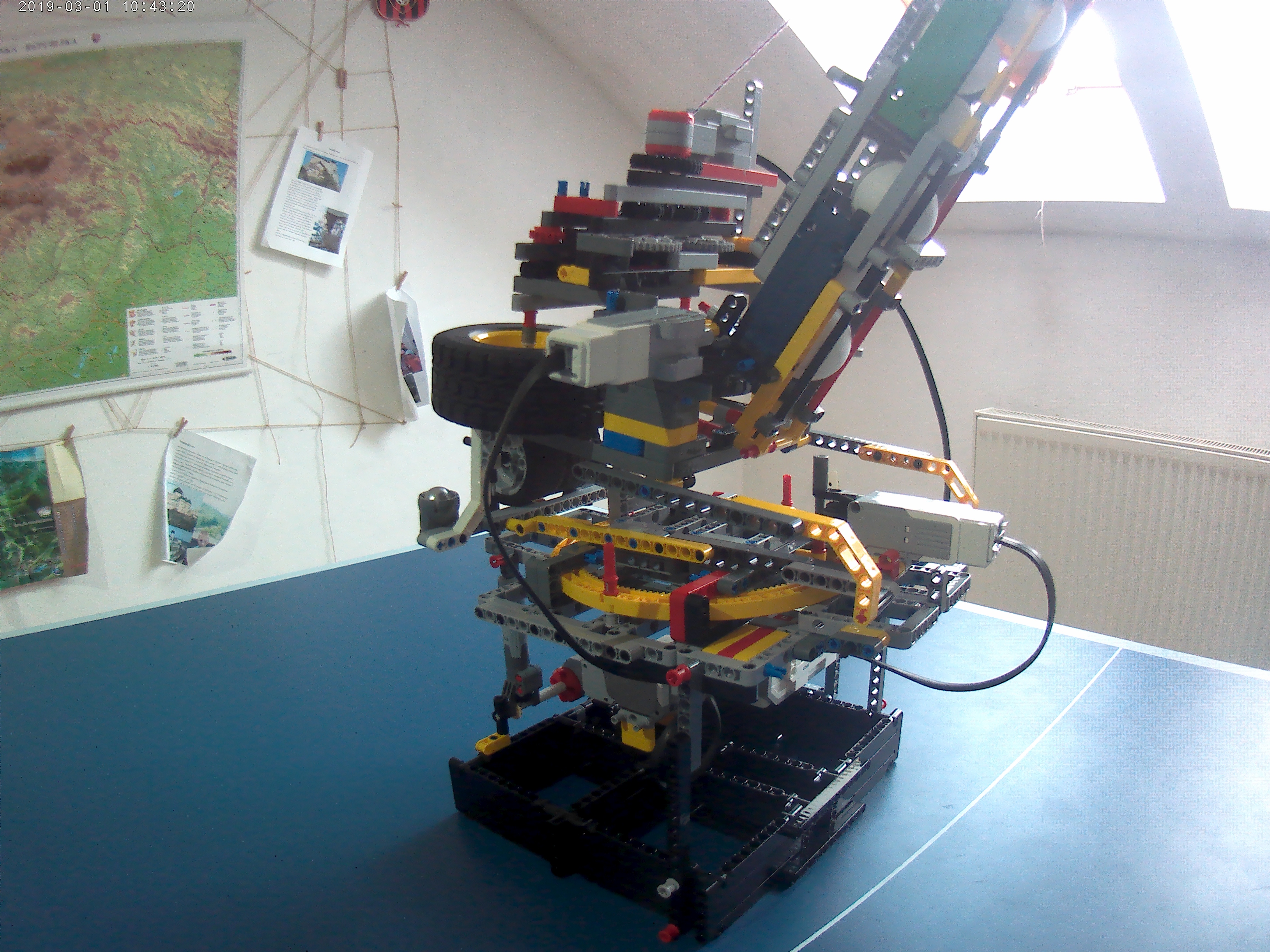 Krásny stroj! Teším sa, že ste zvládli aj generovanie náhodných čísel! Odkazy rozhodcov: 1. Za úlohu stolný tenis získavate 3b. Zostrojený robot vystreluje loptičky do rôznych strán a aj za sieť stola. 2. Robot vystreľoval loptičky ponad sieť v rôznych smeroch. Avšak časove rozostupy medzi jednotlivými strelami boli dost dlhé. 3. Prečo robot tak dlho čaká, nedalo by sa to trocha urýchliť? Inak je to ale dobre vymyslené a robot robí to čo má. 4. Pekná práca. Zišlo by sa ešte popracovať na spôsobe pohybu trenažéra a frekvencie vystreľovania loptičiek. Trenažér sa Vám hýbe do rôznych smerov, čo niekedy spôsobí, že loptička narazí do sieťky a neprejde na druhú stranu. Chcelo by to eliminovať uhly otočenia, o ktorých viete, že nepovedú k prejdeniu loptičky na druhú stranu, prípadne, vyriešiť pohyb (otáčanie) trenažéra inak. Súčasný mechanizmus otáčania, tým, že je prácny, je aj pomalý, čo vedie k dlhým časovým úsekom medzi vystreľovanými loptičkami, čo je problém, ak by mal robot naozaj slúžiť ako trenažér pre hráčov ping-pongu. Prajem Vám veľa šťastia do ďalších kôl!
