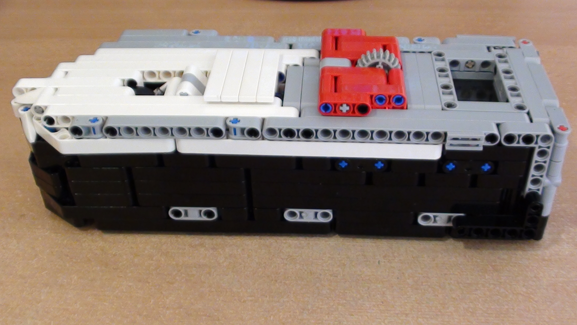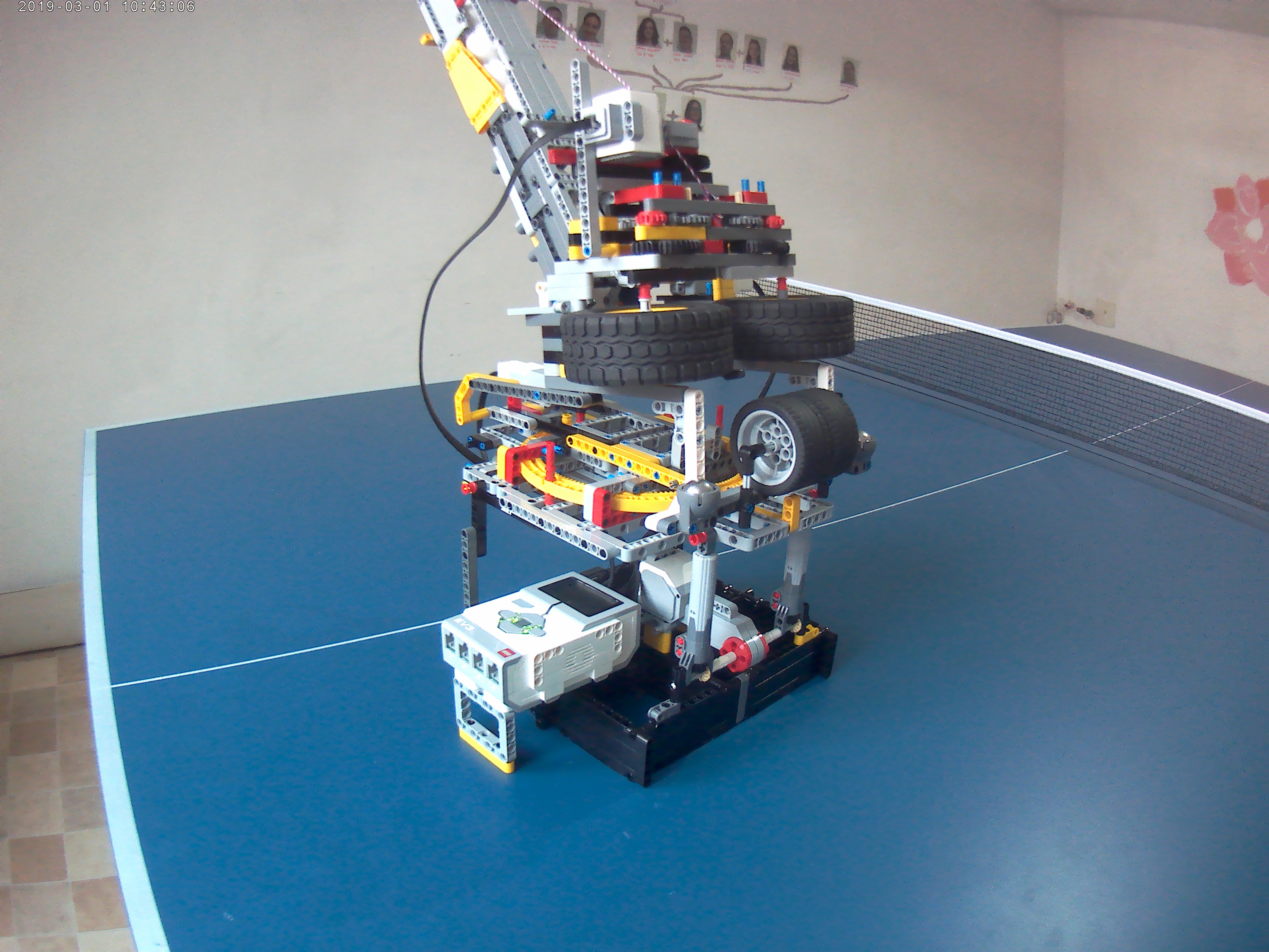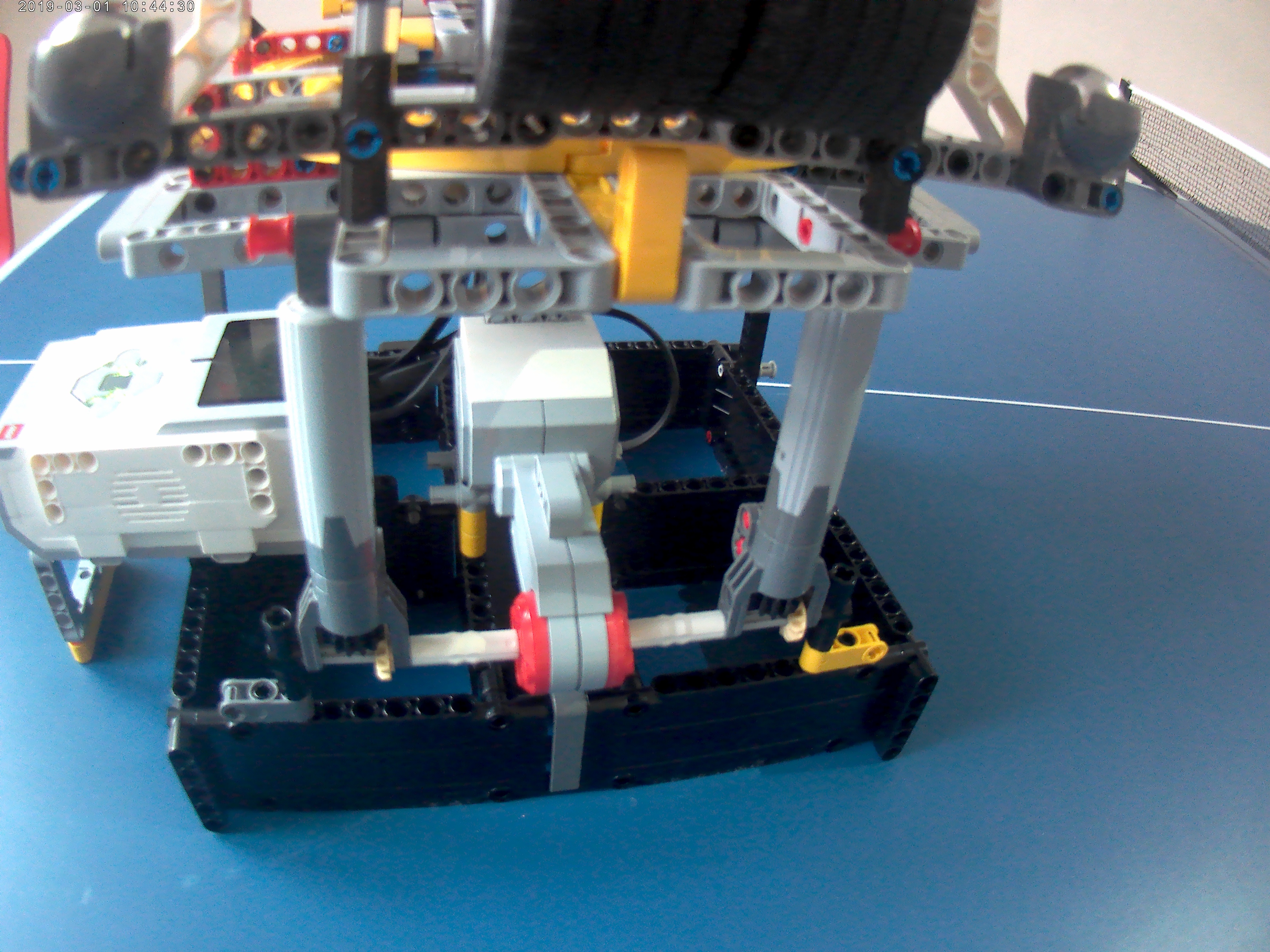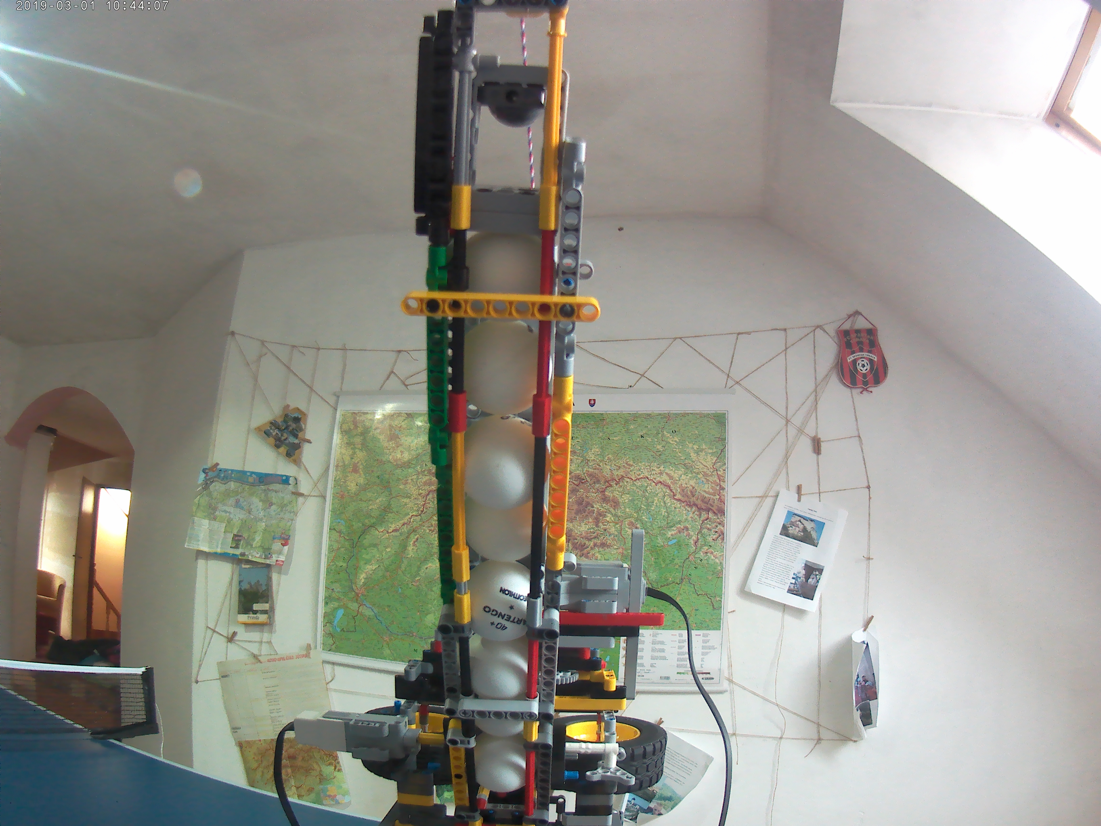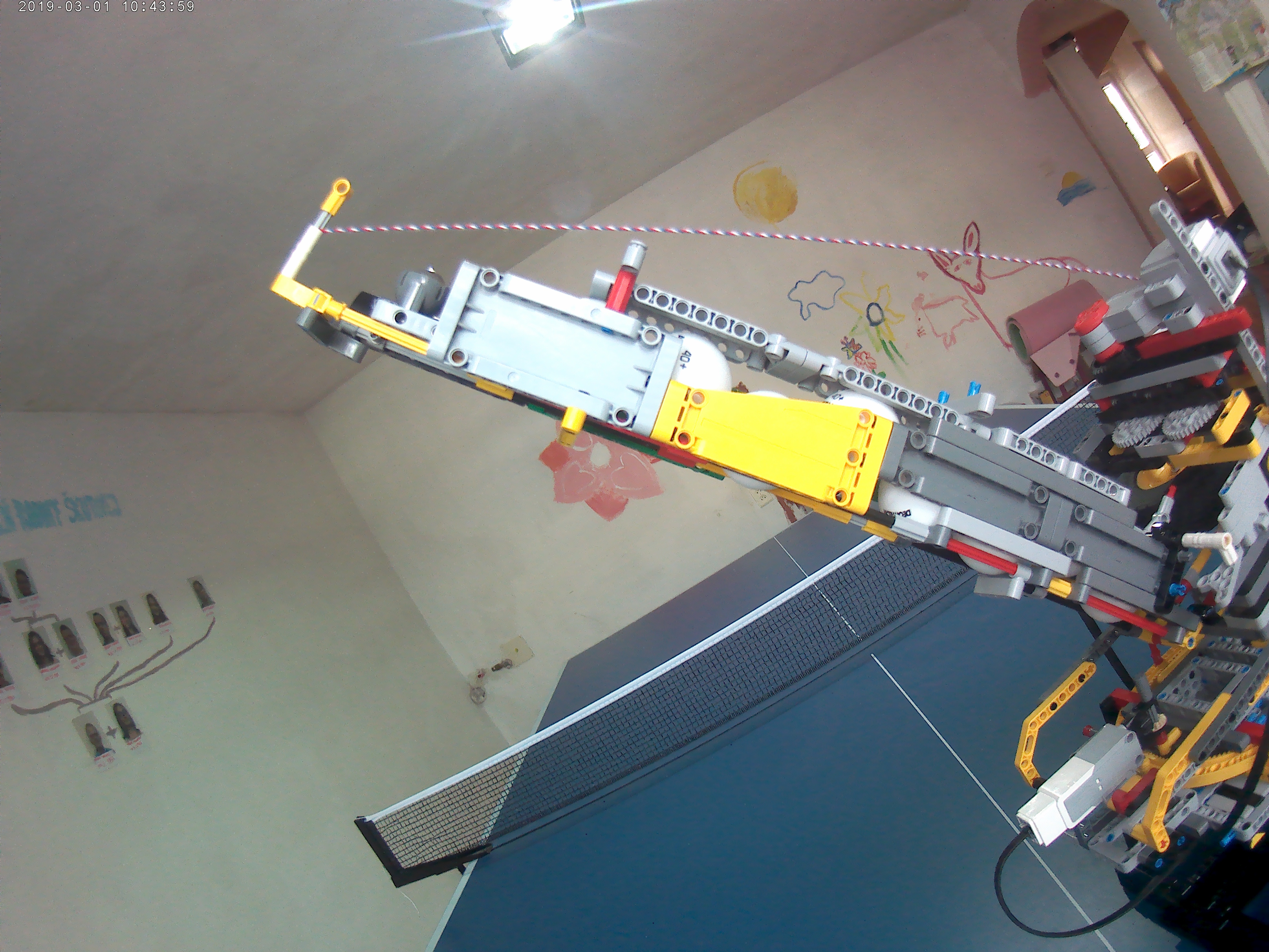 Krásny stroj! Teším sa, že ste zvládli aj generovanie náhodných čísel! Odkazy rozhodcov: 1. Za úlohu stolný tenis získavate 3b. Zostrojený robot vystreluje loptičky do rôznych strán a aj za sieť stola. 2. Robot vystreľoval loptičky ponad sieť v rôznych smeroch. Avšak časove rozostupy medzi jednotlivými strelami boli dost dlhé. 3. Prečo robot tak dlho čaká, nedalo by sa to trocha urýchliť? Inak je to ale dobre vymyslené a robot robí to čo má. 4. Pekná práca. Zišlo by sa ešte popracovať na spôsobe pohybu trenažéra a frekvencie vystreľovania loptičiek. Trenažér sa Vám hýbe do rôznych smerov, čo niekedy spôsobí, že loptička narazí do sieťky a neprejde na druhú stranu. Chcelo by to eliminovať uhly otočenia, o ktorých viete, že nepovedú k prejdeniu loptičky na druhú stranu, prípadne, vyriešiť pohyb (otáčanie) trenažéra inak. Súčasný mechanizmus otáčania, tým, že je prácny, je aj pomalý, čo vedie k dlhým časovým úsekom medzi vystreľovanými loptičkami, čo je problém, ak by mal robot naozaj slúžiť ako trenažér pre hráčov ping-pongu. Prajem Vám veľa šťastia do ďalších kôl!