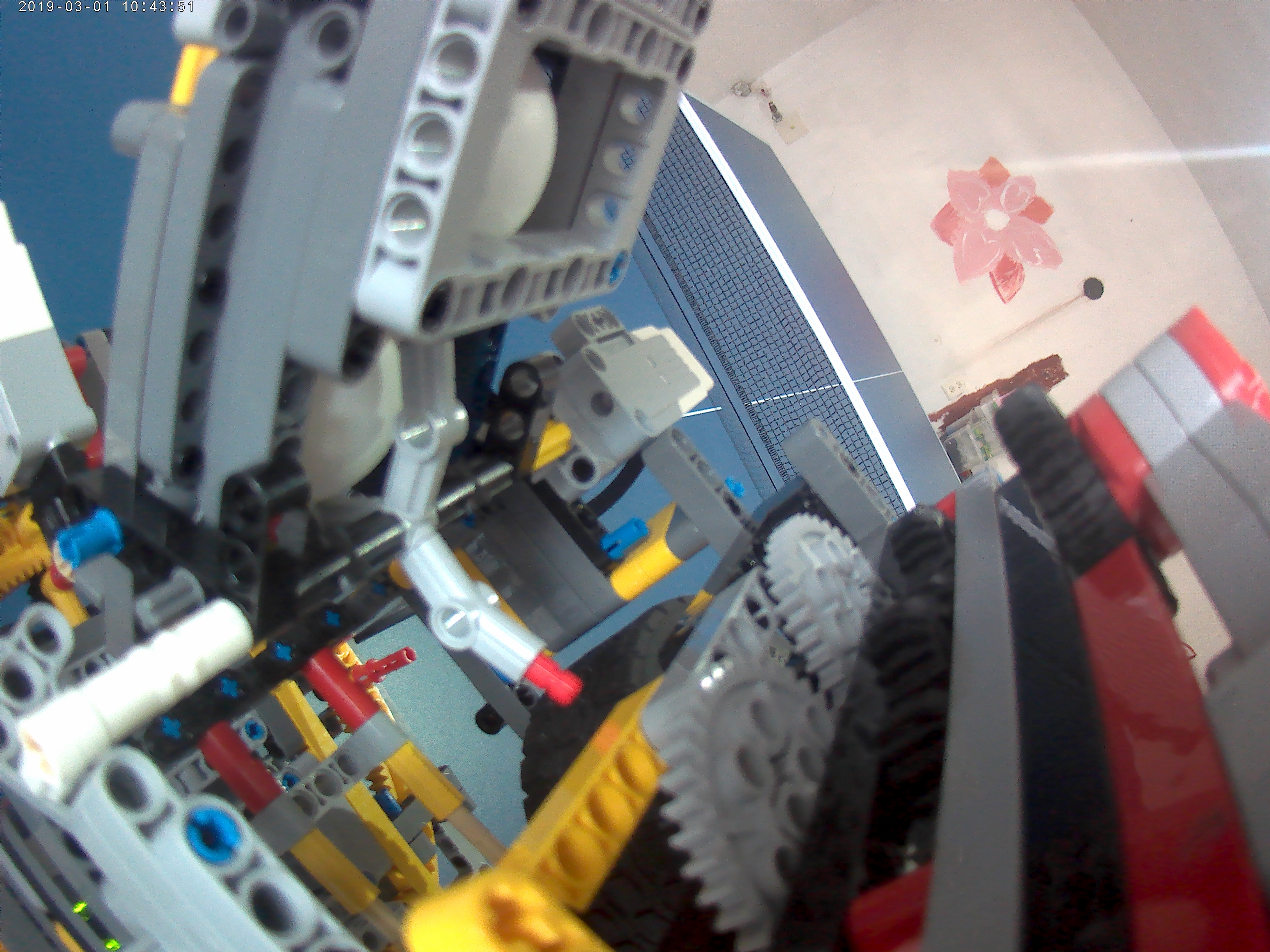 Potom pootočí motorom ktorý je napojený na trojcípe kolečko a tým šľúgne loptičku