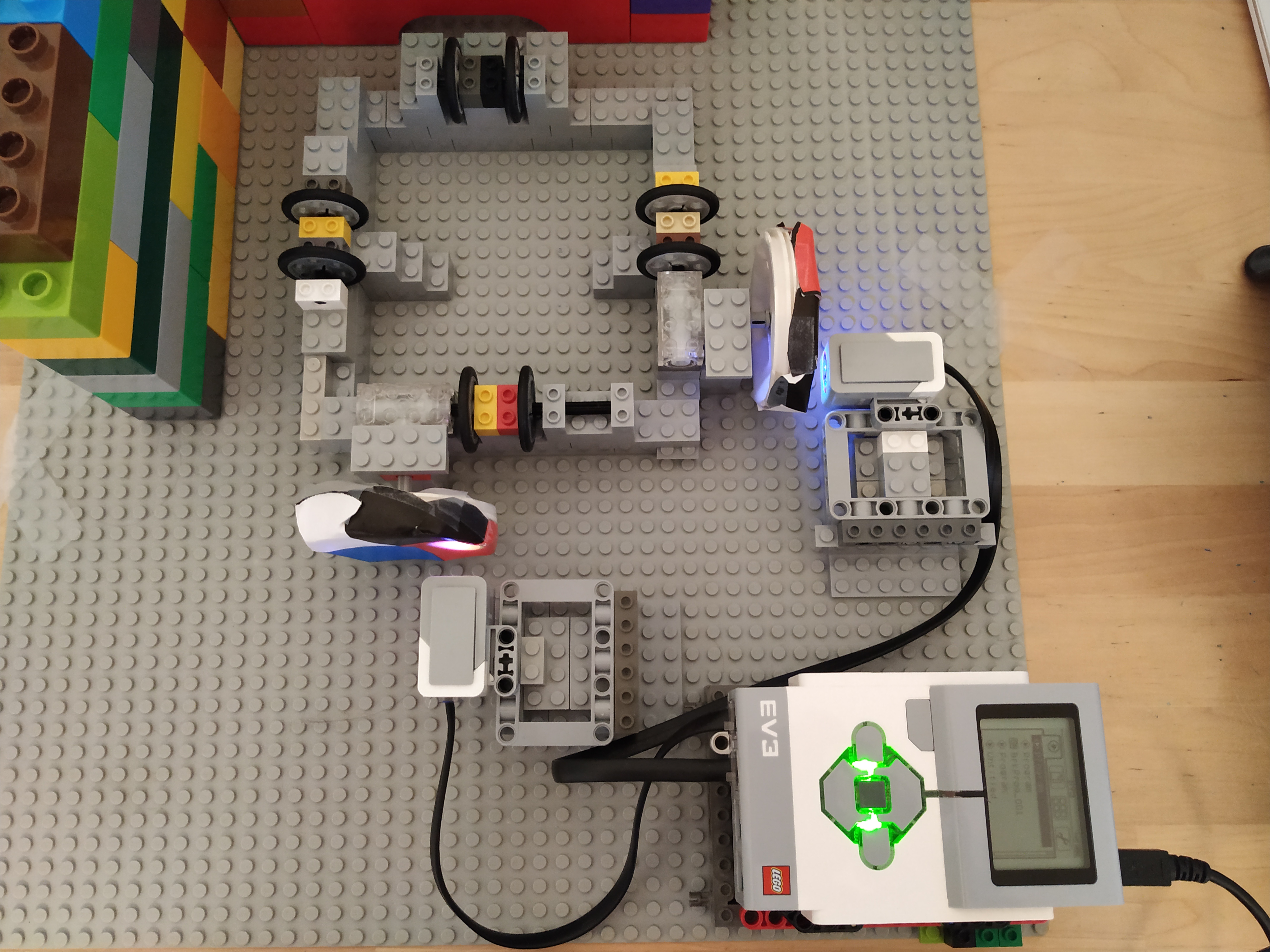 Veľmi pekná práca, kvalitné fotky aj video. Tento trackball by určite ocenil Obelix! Rozhodcovia Vám posielajú tieto pozdravy: 1. Za úlohu polohovacie zariadenie získavate 3b. Zostrojený robot využíva x-ovú a y-ovú os, na zákade ktorej sa zobrazuje hviezdička na displeji. Páči sa mi, že ste kreatívne a vytvorili ste hru :) 2. Na videu je trochu ťažšie vidieť, ako sa bodka pohybuje na obrazovke Ev3 kocky. Ale ok. 3. Úlohu ste splnili, aj ste ju pekne demonštrovali. Konštrukciu by som možno trocha spevnil, a koliesko mohlo mať jemnejšie delenie na viac krokov, ale inak je všetko ako má byť. 4. Pekná práca. Popracovala by som na zlepšení popisu riešenia. Text popisu riešenia by mal obsahovať nevyhnutné detaily, no zároveň by mal byť jasný a logicky členený. Teším sa na Vás v ďalšom kole!