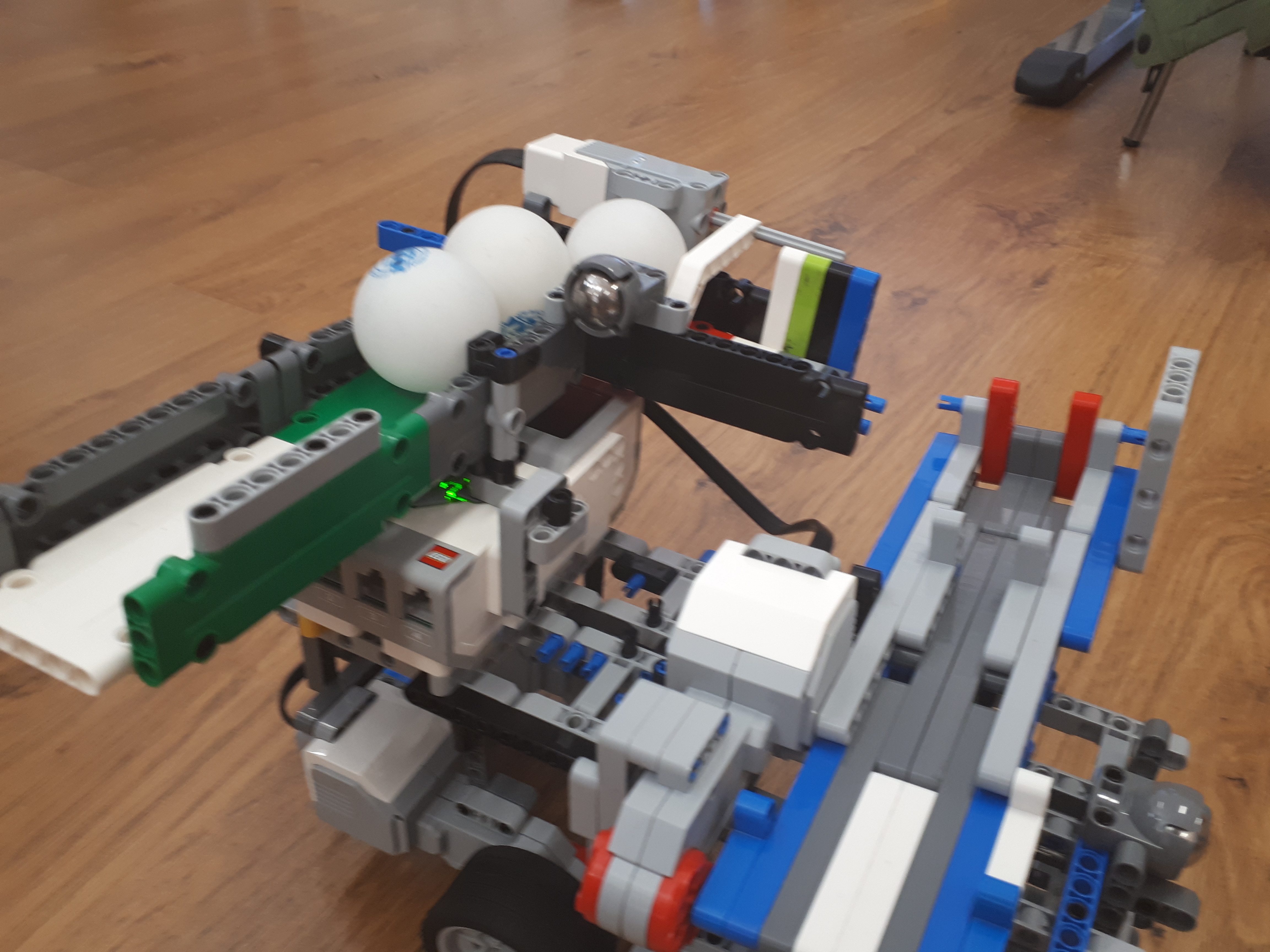 Ďakujeme! Je veľmi dobre, že ste sa s témou pohrali a skúsili ste rôzne princípy a dokonca to aj zdokumentovali! Paráda! Tu sú odkazy od rozhodcov: 1. Za úlohu stolný tenis získavate 2.8b. Zostrojený robot vystreluje loptičky do rôznych strán, ale za sieť stola by neprešli. Páči sa mi, že ste sa nevzdali a skúsili vytvoriť viac viariantov. 2. Páči sa mi, že na videu je zobrazených viacero pokusov. Robot vystreľoval loptičky v rôznych smeroch, avšak trochu pomaly a tiež blízko od robota. 3. Pekne ste to vymysleli, ale namiesto pohybu na kolieskach by bolo lepšie, keby sa robot len otáčal na mieste, aby nedával protihráčovi informáciu, kam bude mieriť. Škoda, že ste ten vystrelovací mechanizmus nedotiahli až úplne do konca. 4. Loptičky vystrelia, no - ako ste sami zistili - robot by nebol použiteľný ako trenažér pre hráčov ping-pongu, keďže to by si žiadalo väčší a silnejší dostrel, zásobník väčšej kapacity a aj schopnosť vystreľovať loptičku do viacerých (náhodných) smerov. Vystreľovanie do viacerých smerov ste síce zabezpečili pohybom celého trenažéra, no efektívne riešenie to asi nie je. Máte však veľký potenciál, želám v ďalších kolách veľa zdaru!