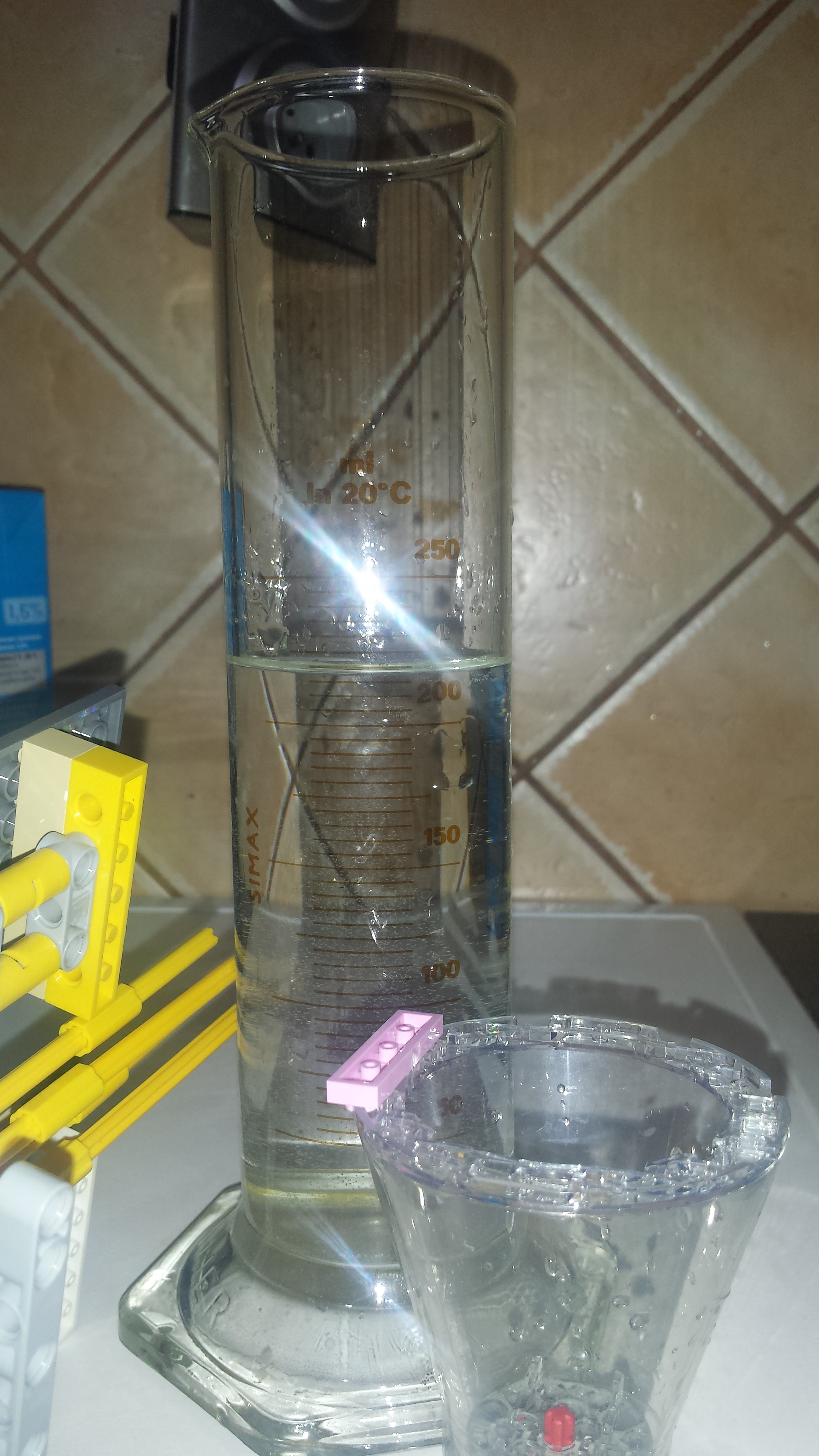 Odstrediť sme skúšali všelijako. Pri meraní odmerným valcom to nebolo dosť presné, lebo mal stupnicu po 5ml a my by sme potrebovali jemnejšie. Tri vreckovky vypili 35ml vody. Suché vážili asi 5g mokré asi 42g. takže váženie bolo asi presnejšie. Potom sme odstredili a podarilo sa nám zozbierať asi tak 2ml, ale hmotnosť klesla na 36g, takže sme odstredili asi 6ml. ostatné asi povytekalo.