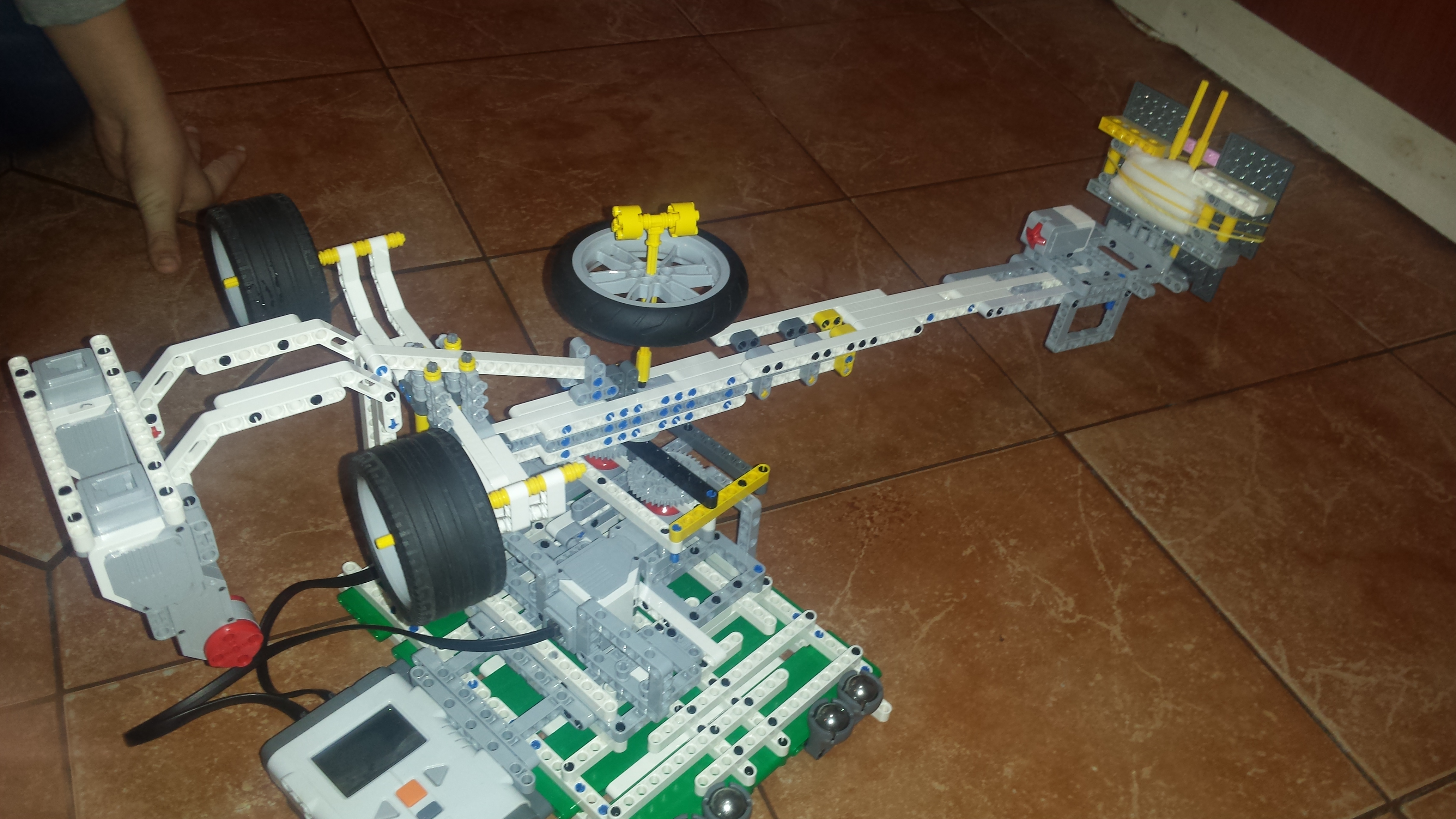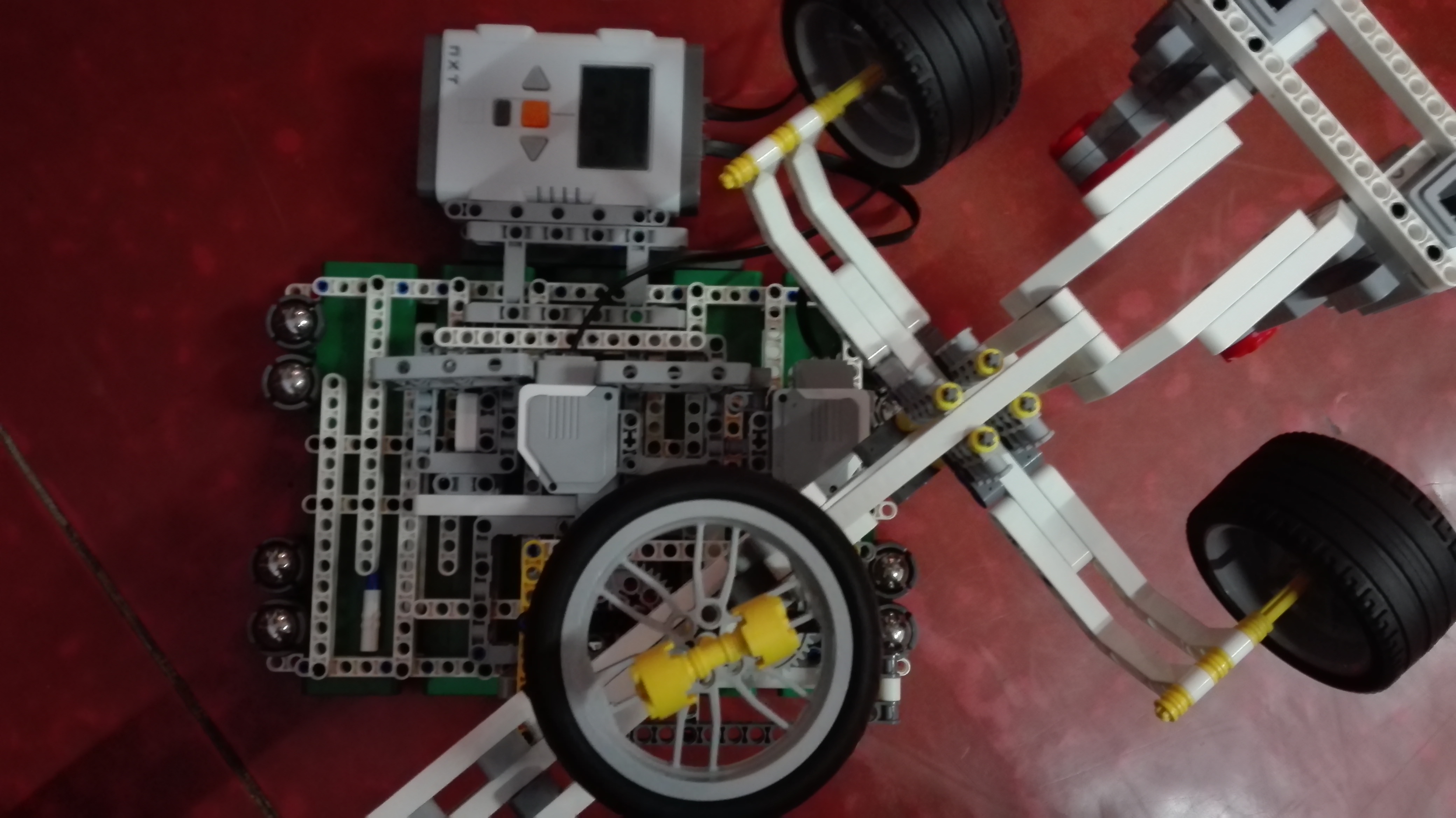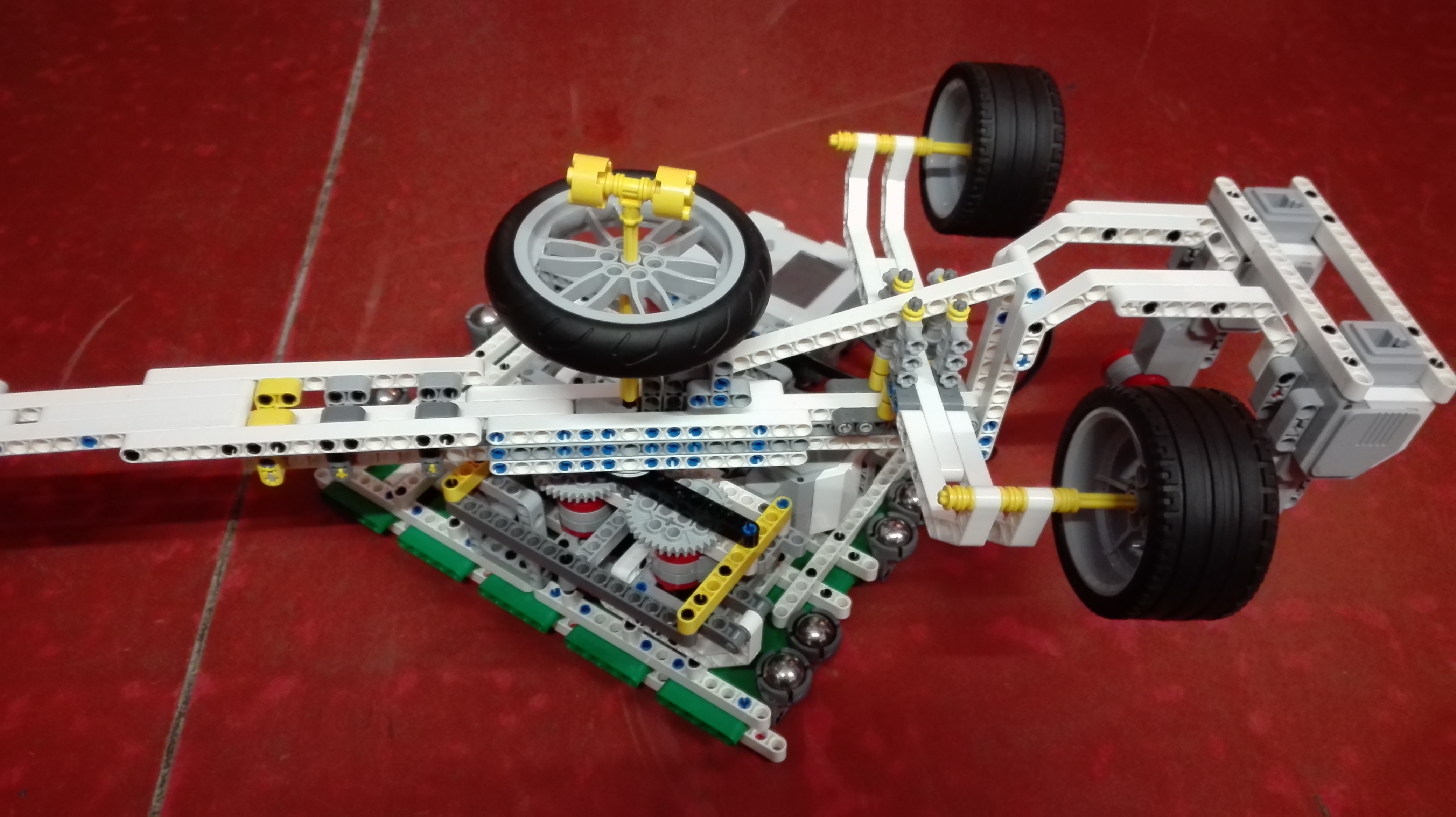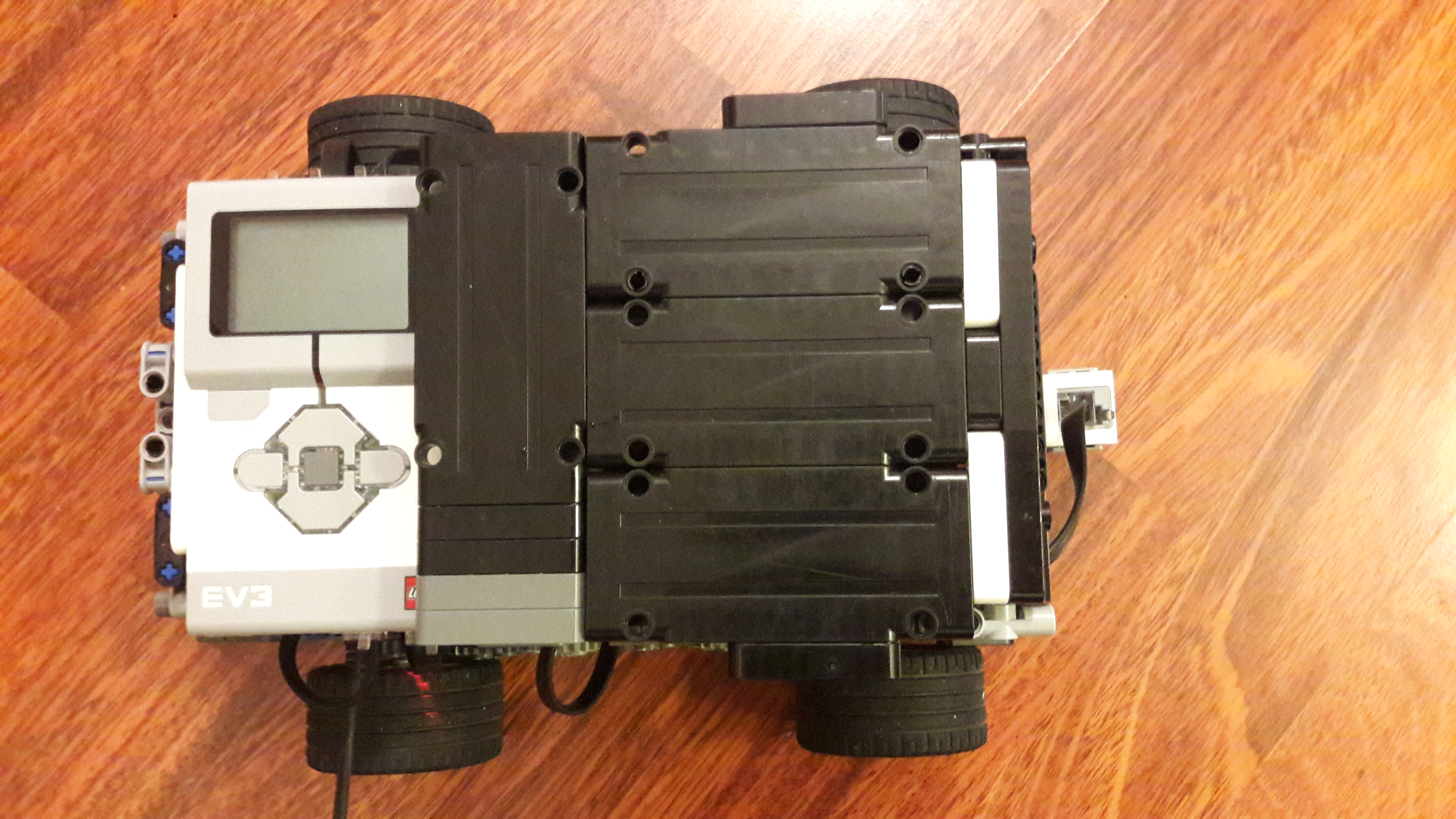 Náš robot má pohon 4x4 ale ako tank. má dva veľké motory na pohon a jeden malý na otváranie a zamykanie jedla.