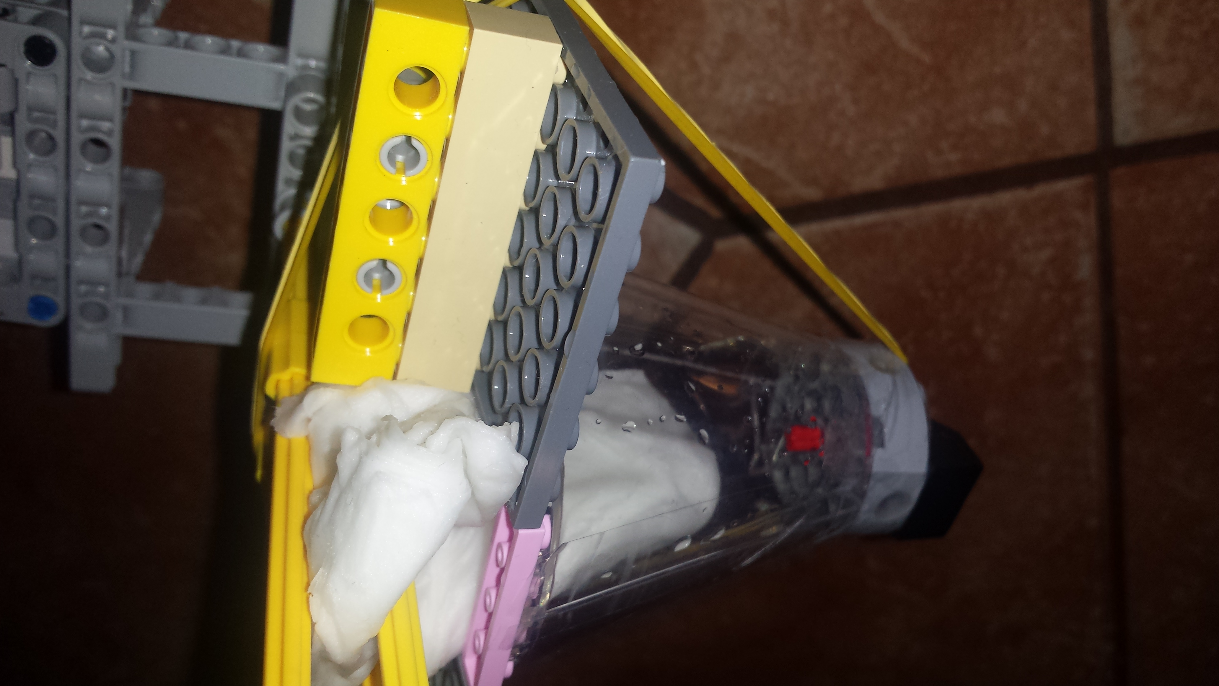 Pekné, táto mašinka by sa dala využiť aj na tréning LEGO-panáčikových kozmonautov. :) Veru veru, predtým ako by som si takúto odstredivku na prádlo namontoval do domácnosti by som poprosil vývojové oddelenie o modifkáciu, ktorá by zabránila vytekaniu vody počas odstreďovania do priestoru. 1. Za odstredivku získavate 2.8b. Veľmi podrobne ste popísali riešenie úlohy, ale výsledok nebol najuspojivejší. Skúste porozmýšlať ako by sa táto úloha mohla riešiť efektívnejšie :) 2. Ahojte! Zaujímavé riešenie, no asi to bol nie práve úplne šťastne zvolený mód konštrukcie. Nízka rýchlosť otáčok spolu s formou polohovania vreckovky spôsobili pozorovanú nízku mieru odstredenia. Množstvo odstredenej vody, ktoré sa podarilo získať u iných tímov, bolo +/- 50%. 3. Chalani, veľmi sa mi páči, ako ste opísali rôzne výsledky pri rôznych postupoch odstreďovania. Oceňujem, že ste nad tým rozmýšlali. Mohli ste ešte skúsiť sprevodovaním dosiahnúť väčšiu rýchlosť pri točení, možno by ste odstredili viac ;) 4. Nie je to síce najúčinnejšia odstredivka v tomto kole, ale konštrukčne sa mi veľmi páči. Riešenie je aj podrobne a zrozumiteľne zdokumentované.