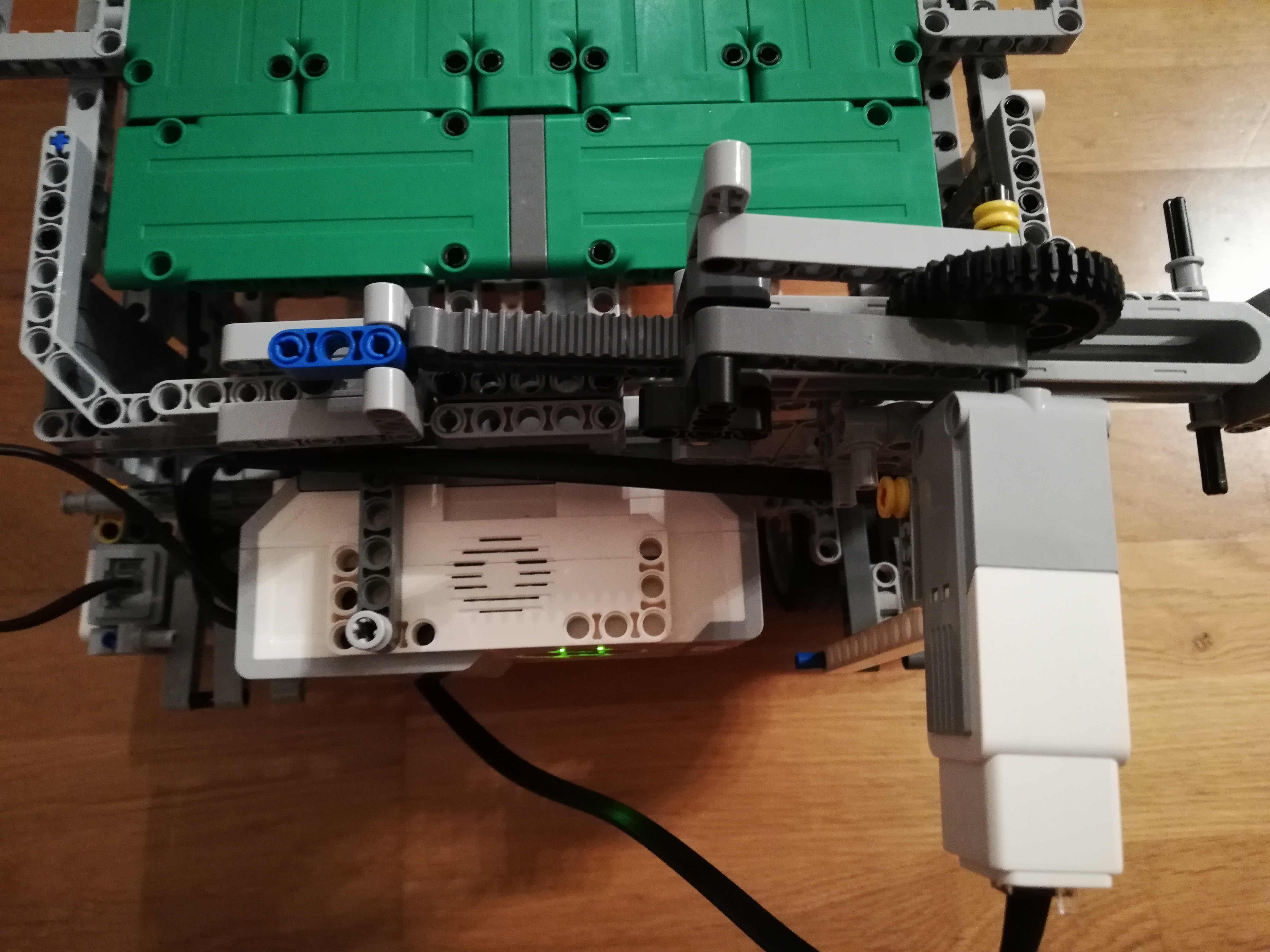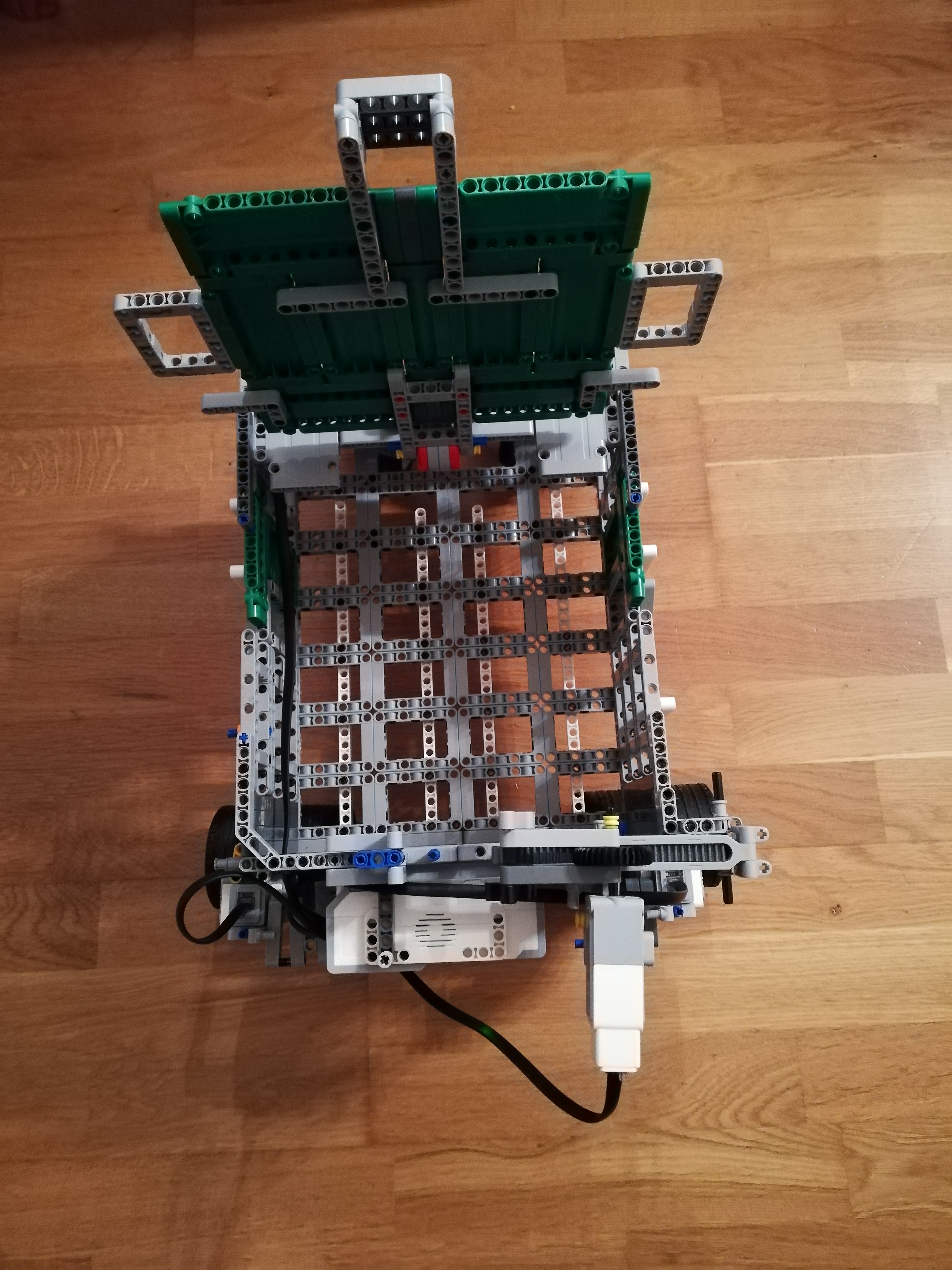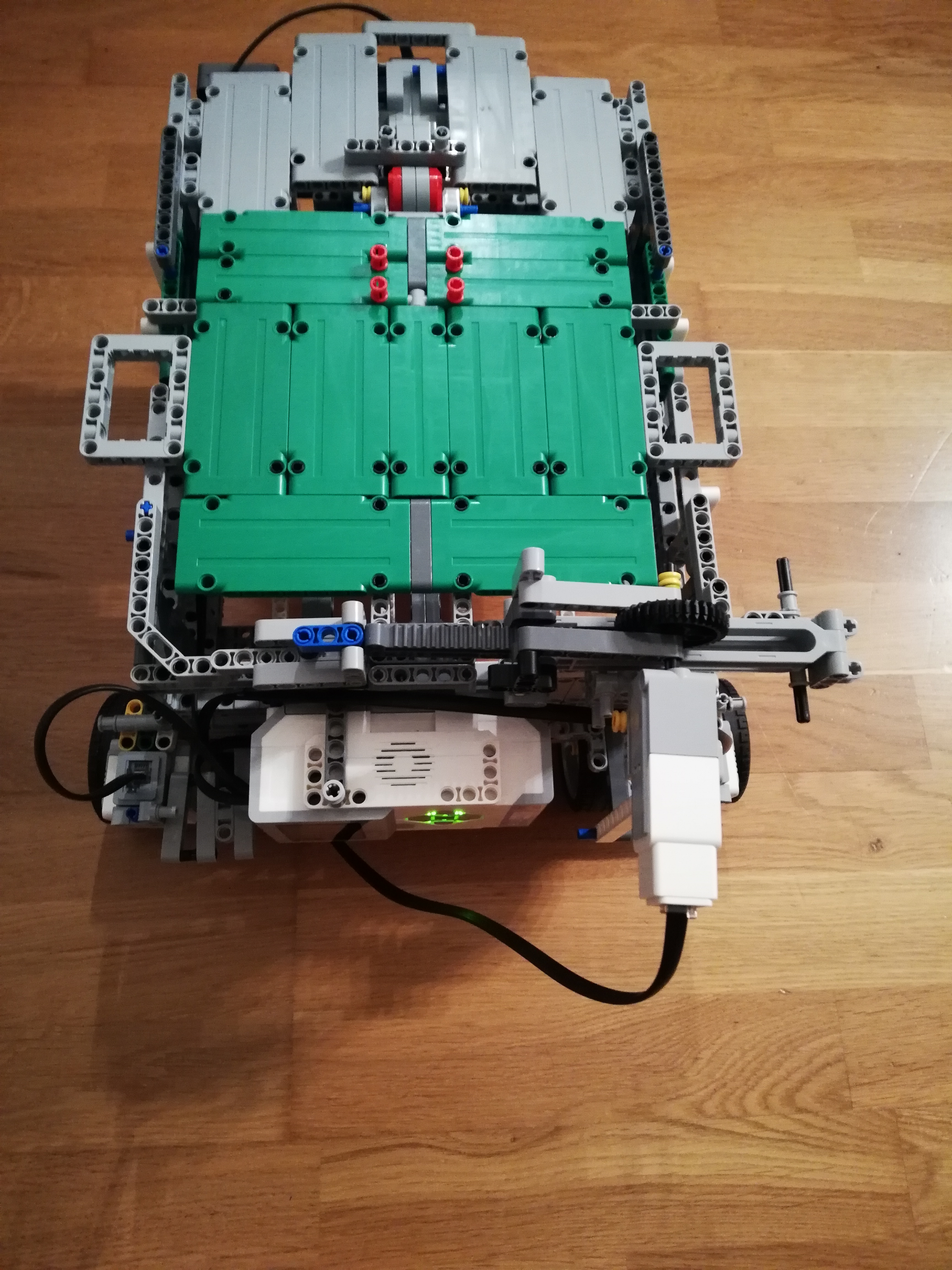 Rozvoz jedla je zabezpečený vozidlom s veľkým úložným priestorom na uloženie jedla. Vozidlo obsahuje riadiacu jednotku EV3 a sú k nej pripojené 4 motory – dva veľké a dva stredné. Veľké motory pohybujú vozidlom, jeden stredný ovláda zámku a jedným sa otvára úložný priestor.