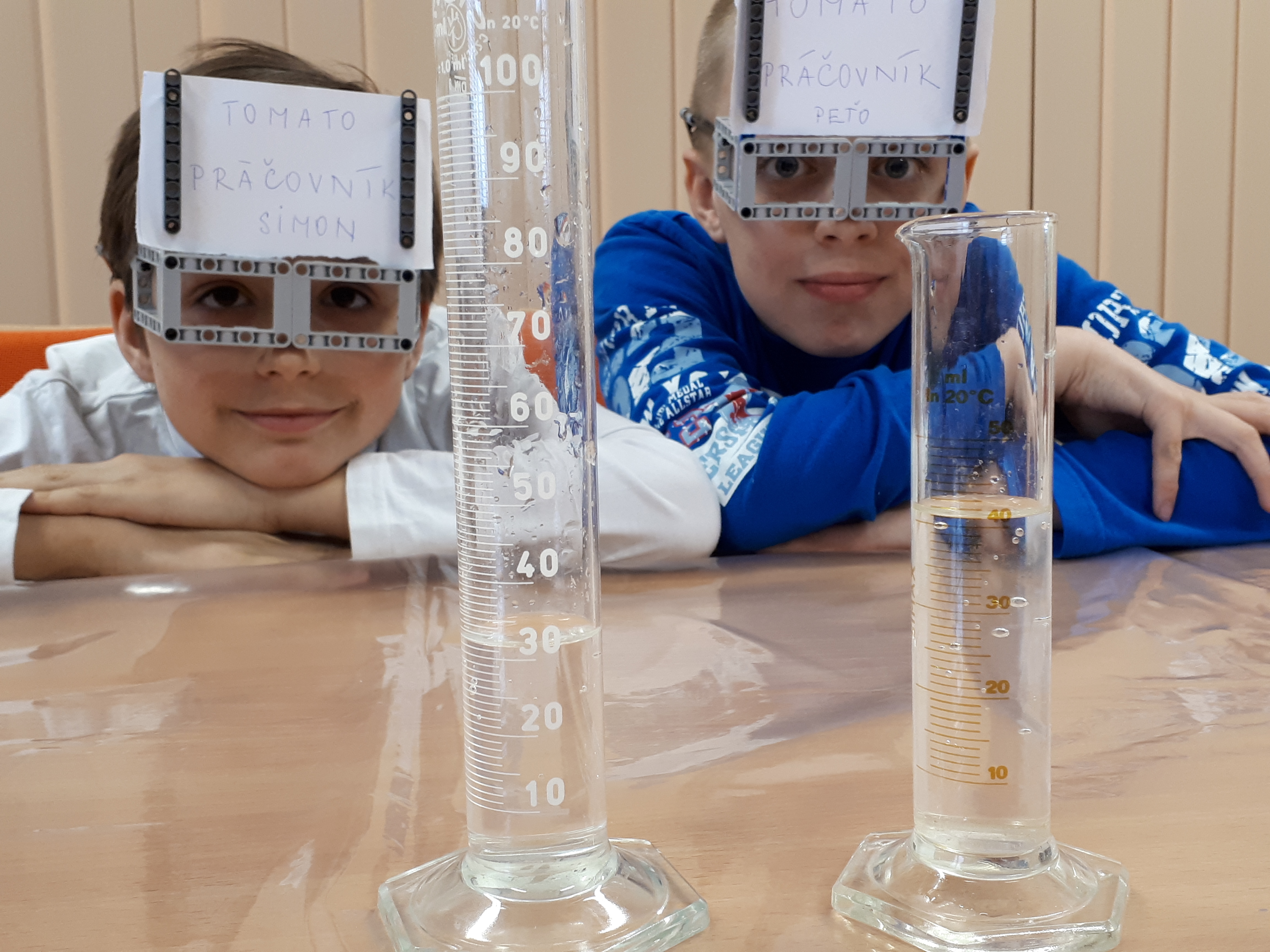 Meracie pomôcky: na meranie objemu sme si zapožičali kabinetu fyziky odmerné valce.