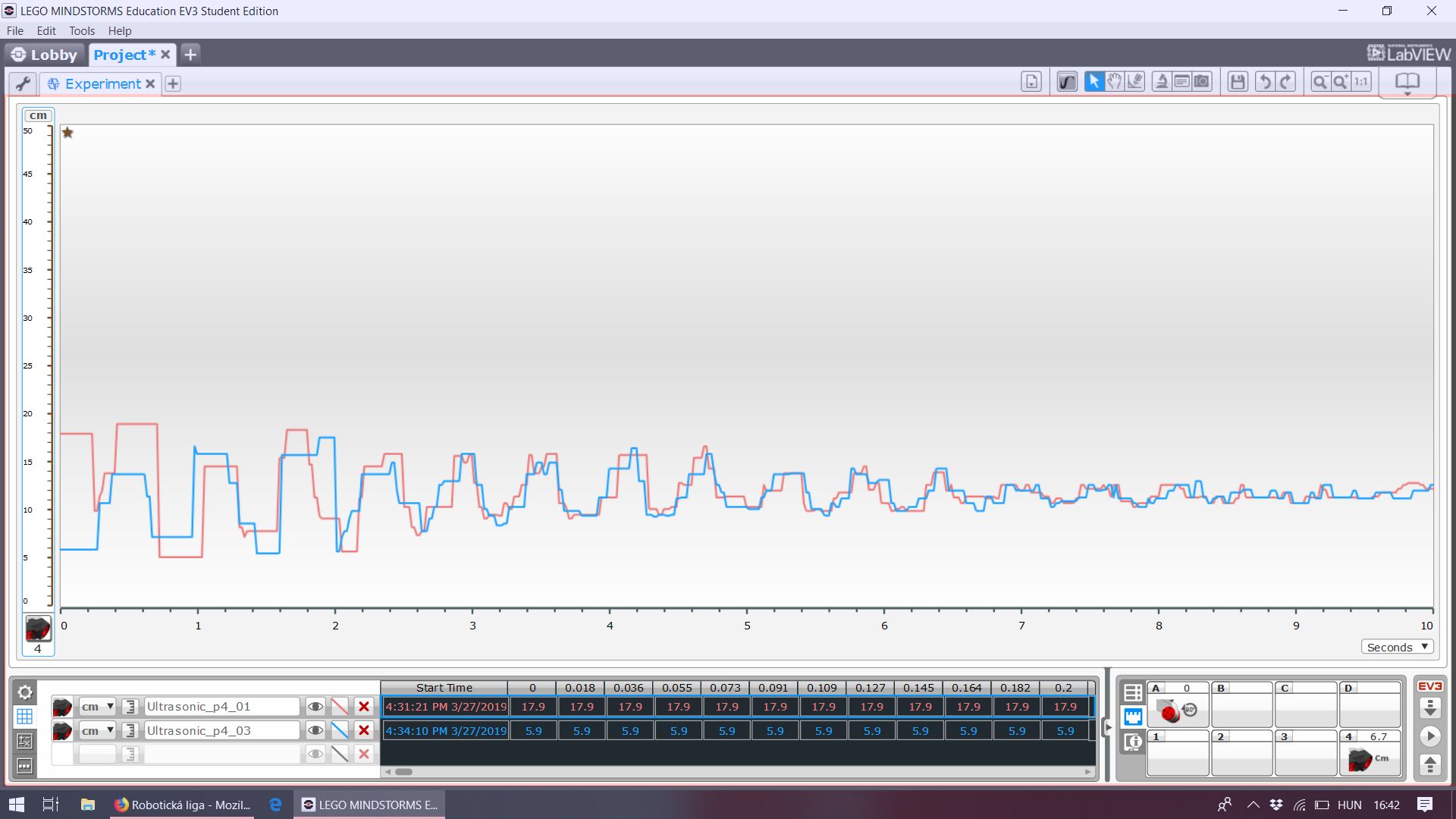 Úlohu sme riešili pomocou voľby Experimentu v Lego Mindstroms Education.