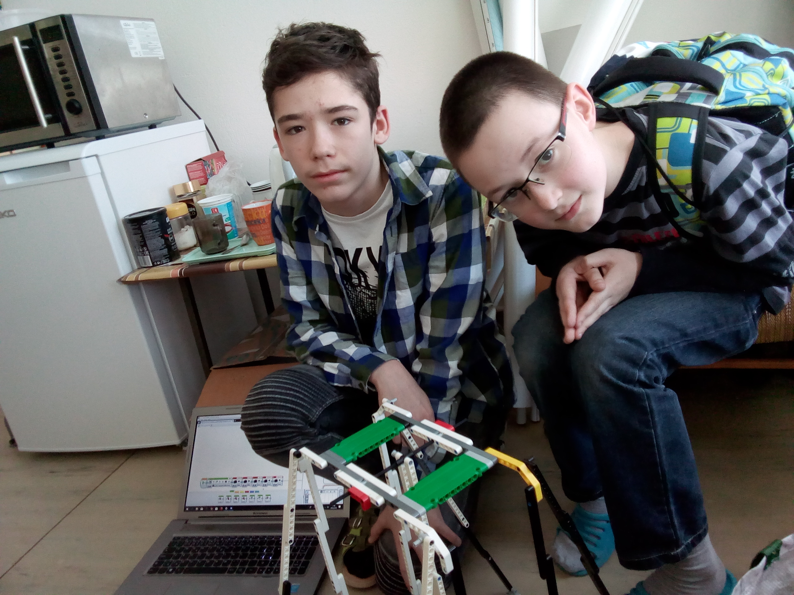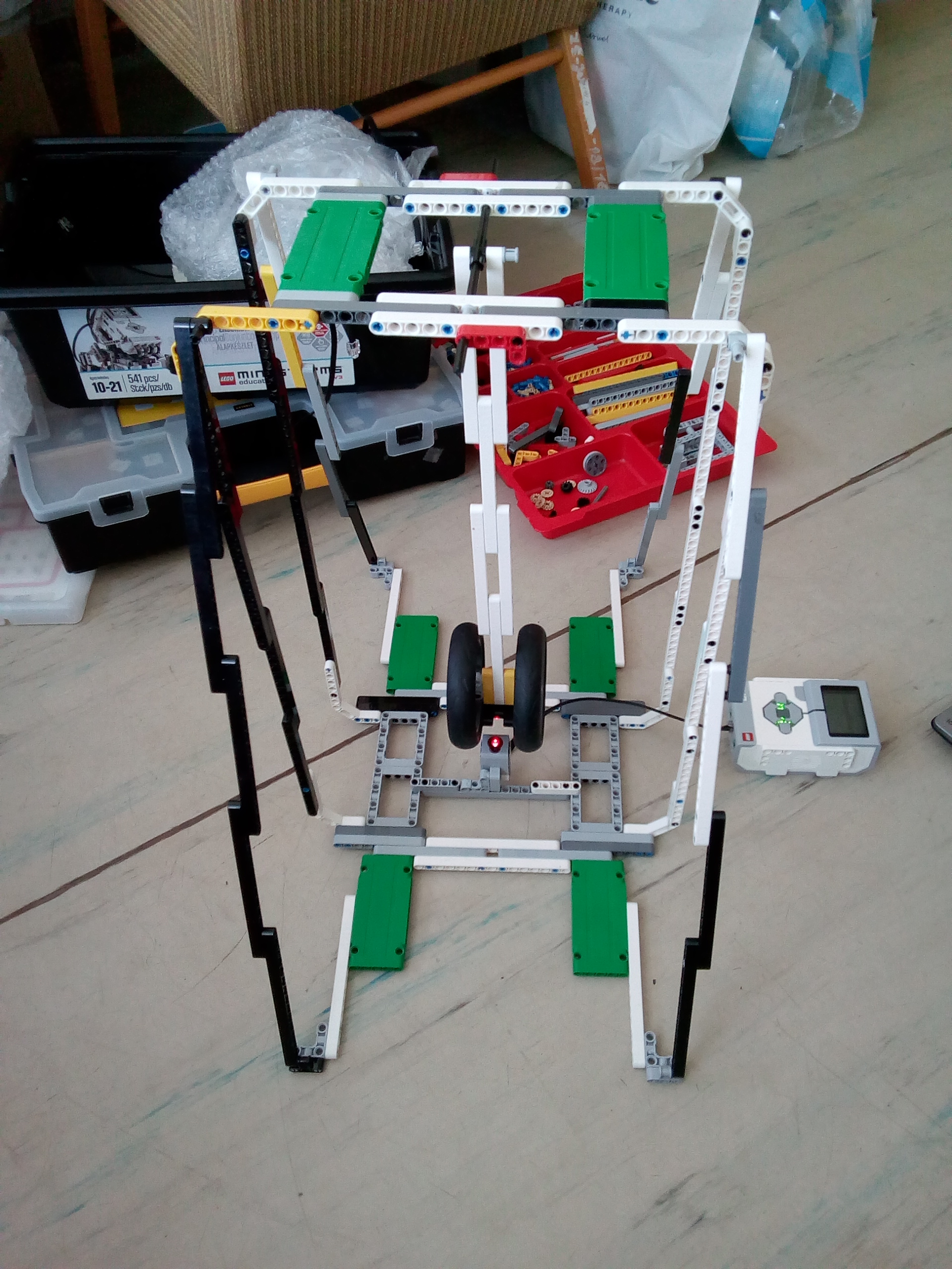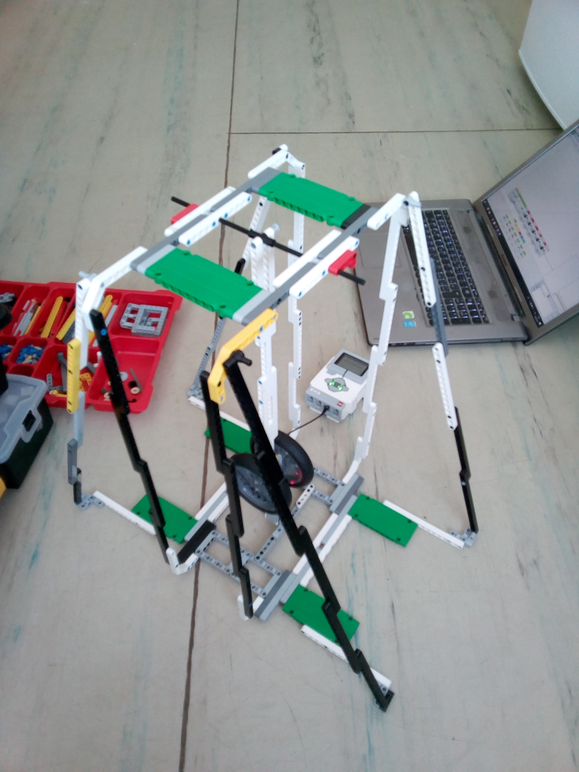 Dobrý deň,náš robot pozostáva z konštrukcie, na ktorej je zavesené kyvadlo a zo senzorapod kyvadlom.Dĺžka kyvadla je nastaviteľná a takisto sa dá obmieňať aj záťaž na ramene.Senzor zaznamenáva čiernu farbu.Program si zapamätáva čas od prechodu kyvadla (zaznamenanie čiernej) doďalšieho prechodu kyvadla.Tieto jednotlivé časy zapisuje na displej.Zaznamenané časy sme prepísali do tabuľky a vytvorili k nej graf.S pozdravomLazy Robots