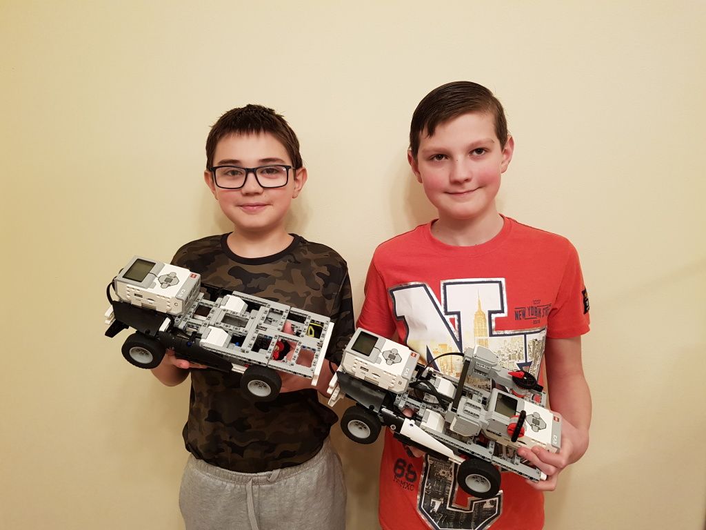 To sú skvelé nákladiaky. Máte veľmi silný tím. Ešte raz pre istotu napíšem - uistite sa, že na úlohe robíte vy a nie váš vedúci. :-) A tu sú pozdravy od rozhodcov: 1. Spravili ste nielen pekné autíčka, ktoré robia všetko, čo treba, ale máte k nim aj super ovládač. Výborne. Na druhej strane, tým, že ovládate obe autíčka súčasne, ste si úlohu trocha zjednodušili. 2. Za úlohu Moderná doprava získavate 3b. Veľmi sa mi páči vás podrobný popis riešenia úlohy, podrobne zdokumentované fotky vozidiel ako aj dokonalý program :) 3. Chválim podrobný popis riešenia úlohy a tiež zobrazenie riešenia na videu. 4. Gratulujem! Pekné riešenie aj spracovanie!