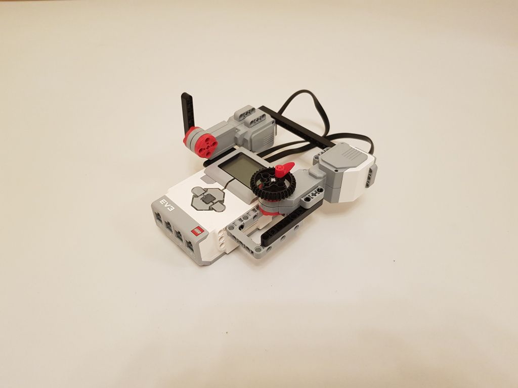 Diaľkové ovládanie tvorí riadiaca jednotka EV3 a dva EV3 veľké motory pre snímanie polohy páčky pre ovládanie rýchlosti a kolieska pre ovládanie smeru.
