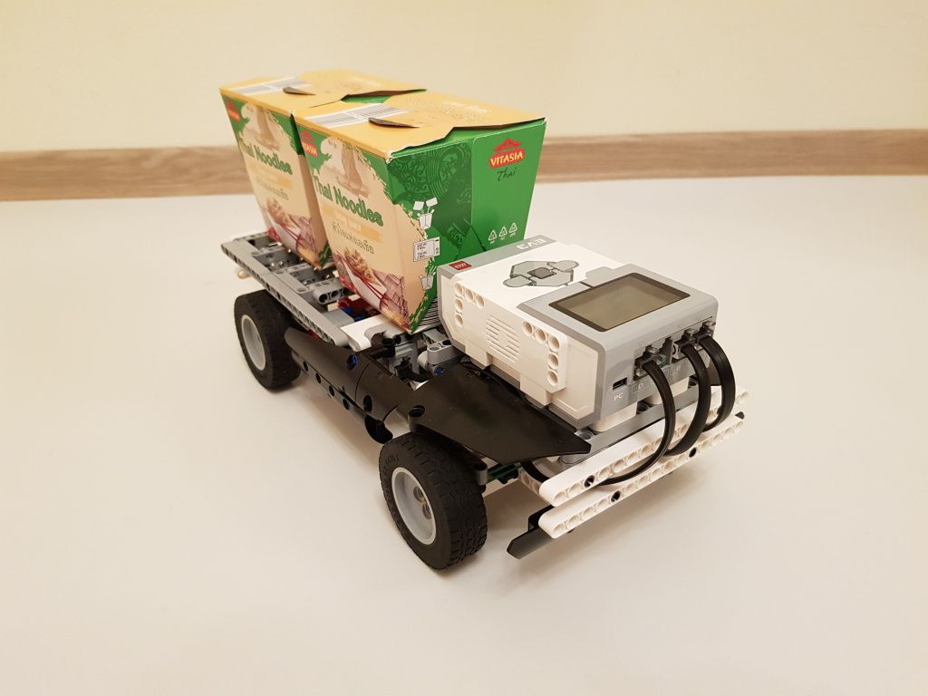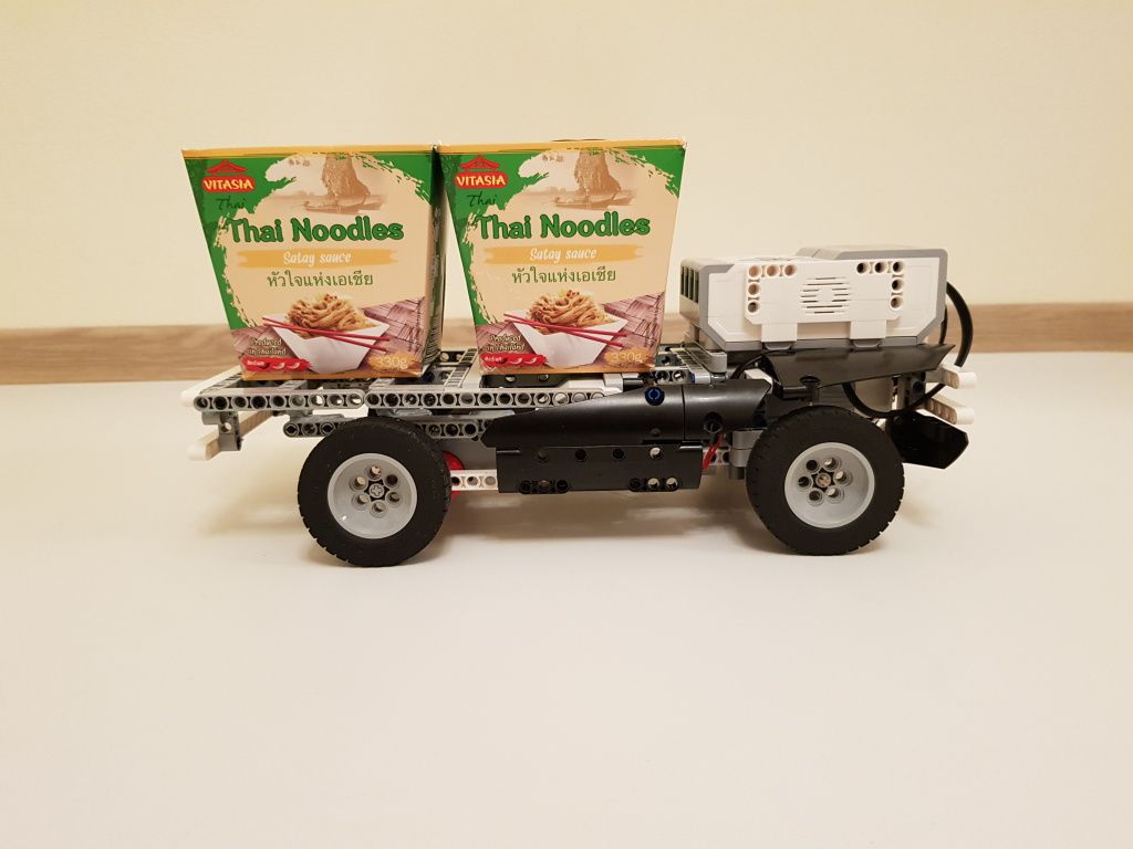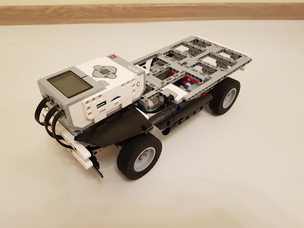 Vozidlo tvorí riadiaca jednotka EV3, dva EV3 veľké motory pre pohon a jeden EV3 stredný motor pre ovládanie smeru. Vozidlo má za riadiacou jednotkou vytvorenú plochu na prevoz nákladu.