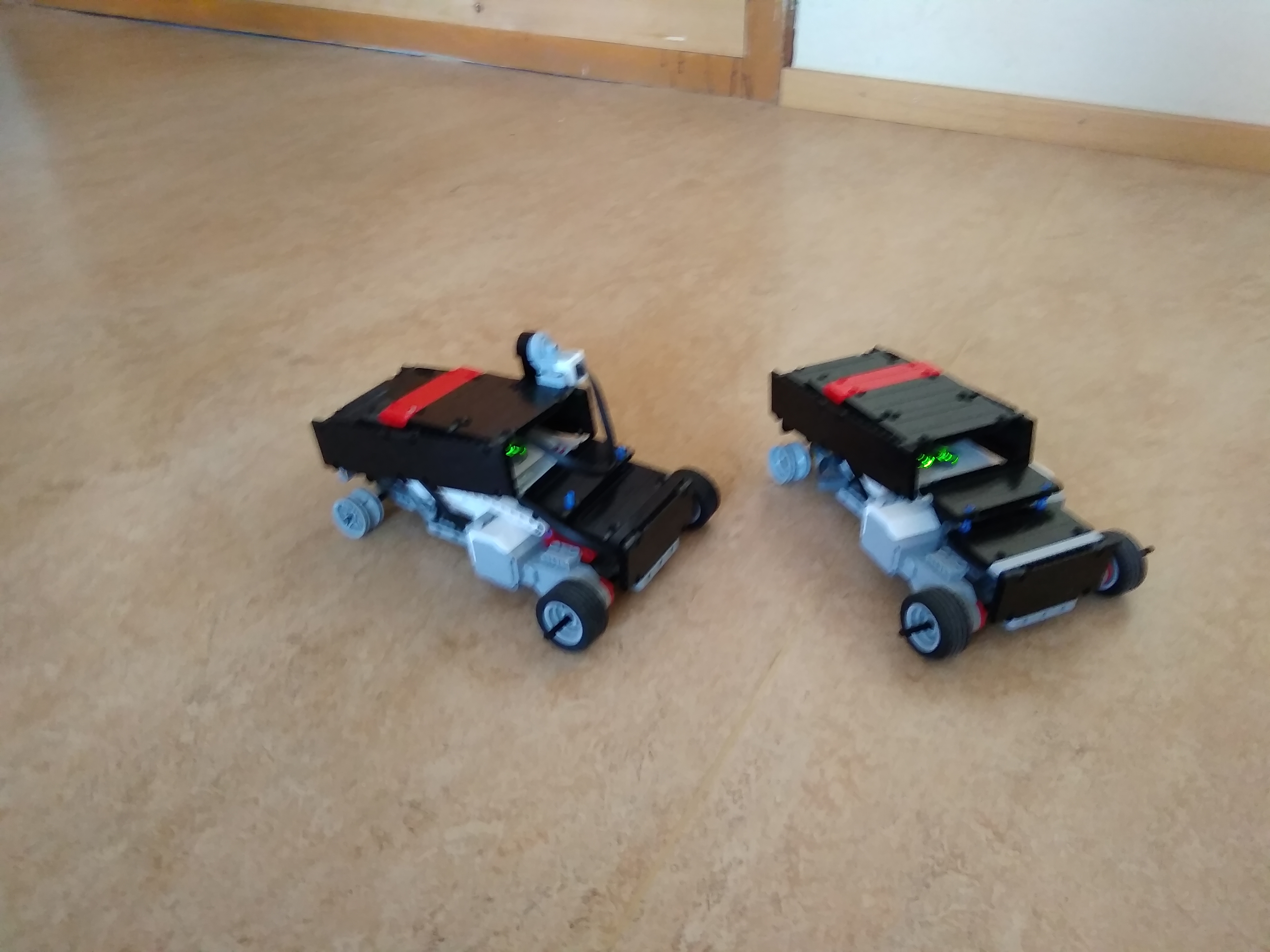 Ďakujeme aj za toto riešenie. Nerobí to síce veľa, ale jazdí to a to sa počíta :-). Opäť prosím, prosím, popozerajte si riešenia ostatných tímov. Pozdravy od rozhodcov: 1. Toto zadanie ste nezdokumentovali velmi dobre. Chýba popis konštrukcie, popis vášho riešenia a fotka tímu. To ze je tam dialkove ovladanie si musime domysliet. 2. Za úlohu Moderná doprava získavate 2,4b. Chýba vám spoločná fotka tímu, ktorý pracoval na tejto úlohe. Popis riešenia je veľmi stručný. Vo videu nie je vidieť ako sa správajú vozidlá v prípade zákruty, resp. sú vozisla zachytené zo zvláštneho uhla. 3. Hodil by sa podrobnejší popis riešenia úlohy. Na videu je vidieť iba pohyb dopredu a vzad. Chýbajú reakcie na ďalšie akcie. 4. Popis princípu fungovania Vášho riešenia chýba; nie je zjavné, či je druhé auto schopné nasledovať a meniť smer/rýchlosť podľa prvého auta. Máte 2 body za čiastočné riešenie.