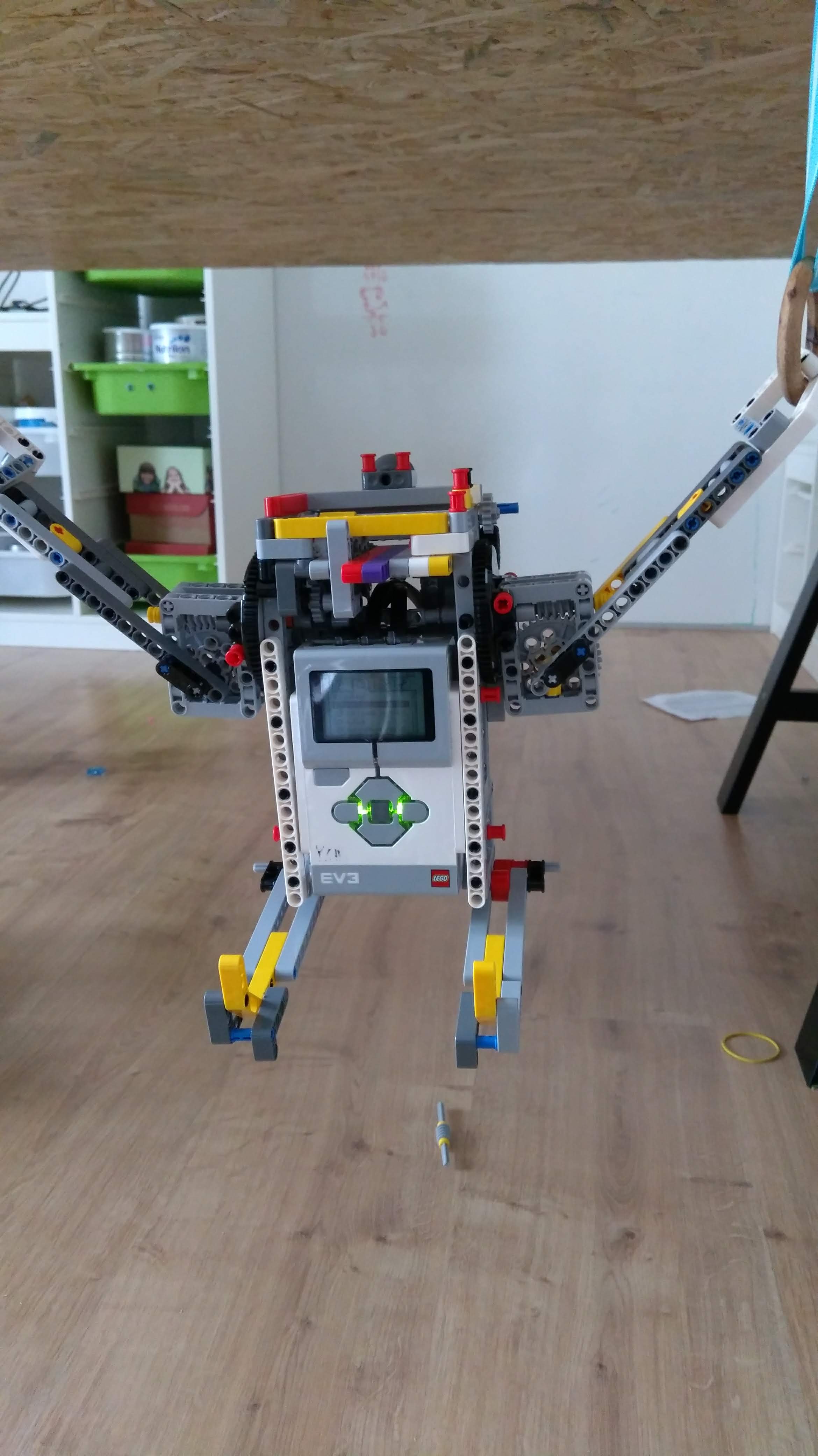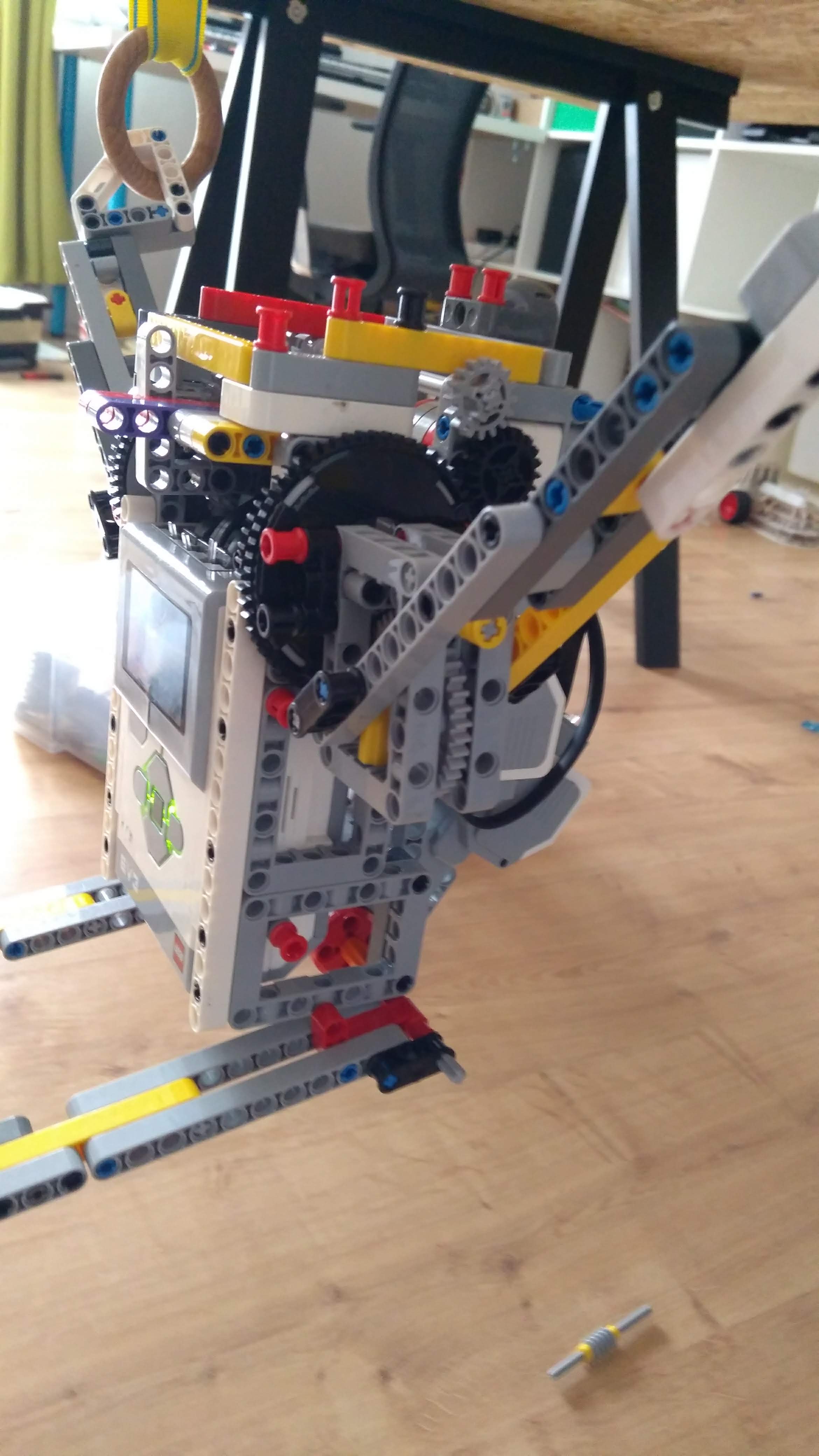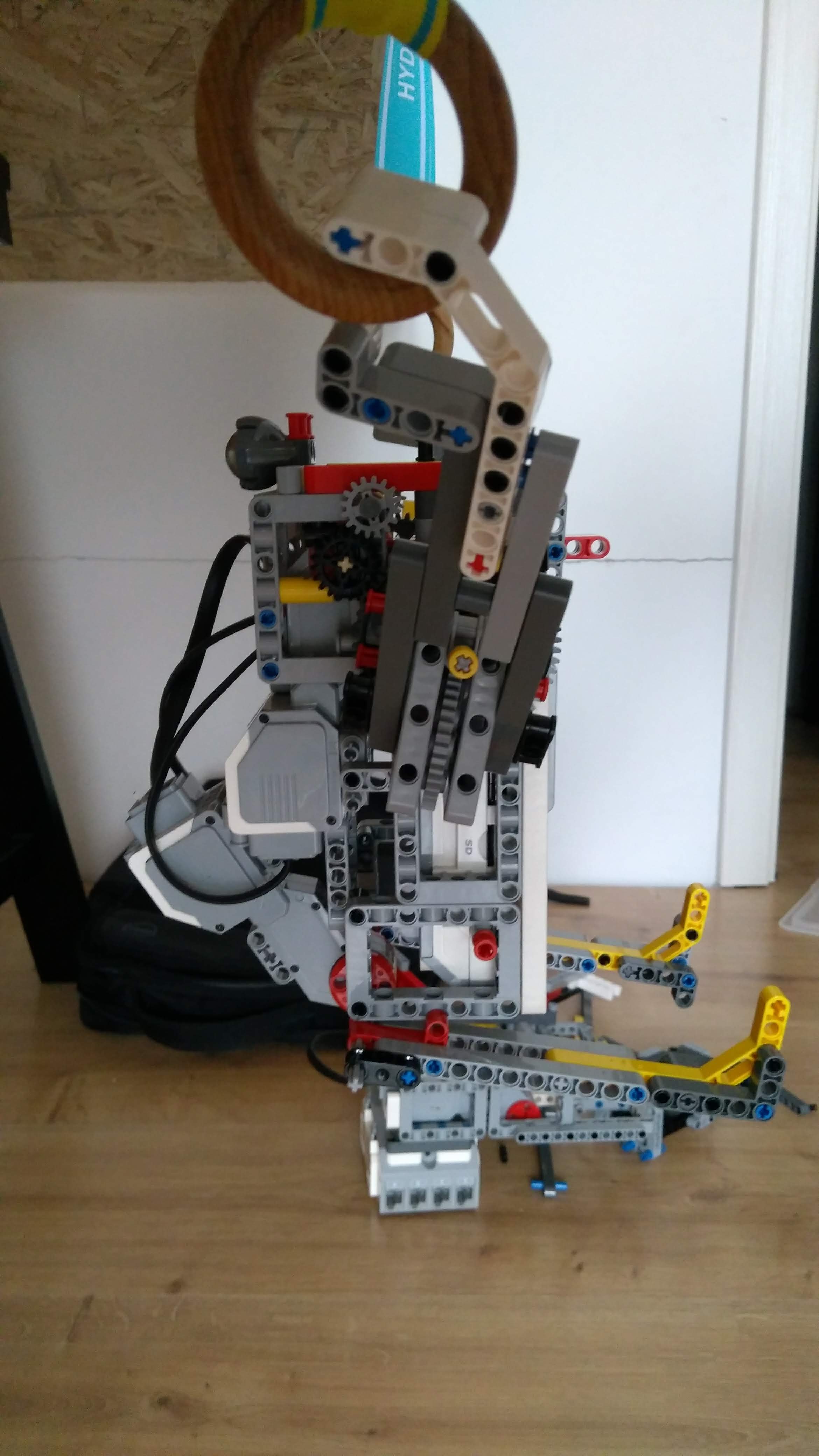 Mechanicky sme spojili nohy keďže na cviky na kruhoch to malo stačiť,