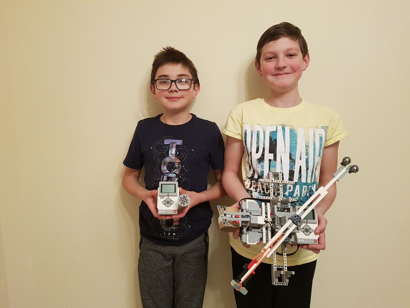 Aj bez odmerania vzdialenosti na videu je jasné, že tento hádzač hodil kladivo najďalej. Sľúbili sme 3 body, tu sú! 1. Za úlohu Hod kladivom získavate 3b. Váš robot dokázal odhodiť závažie najďalej. Páči sa mi Váš podrobný popis, detailné fotky robota a aj ukážka na videu. 2. Veľmi dômyselná konštrukcia. Škoda, že ste sa trocha viac nezaoberali videom, nie je na ňom veľmi vidno ako pokus prebiehal. Ale inak všetko OK. 3. Pekné riešenie. Z Vášho záznamu však nie je zrejmé, ktorú dĺžku ste zobrali ako miesto dopadu - merali ste dĺžku hodu ako miesto prvého dopadu závažia po odhodení robotom (čo je správne) alebo ste ako dĺžku zobrali posledné miesto, kde sa závažie dokotúľalo (čo je nesprávne)? 4. Chalani, vzdialenosť ozaj obdivuhodná! Fotodokumntácia naozaj kvalitná! Trochu som neporozumela spôsobu uvoľnenia závažia. A chýbalo mi na videu odmeranie vzdialenosti. Ináč veľmi slušná vzdialenosť!
