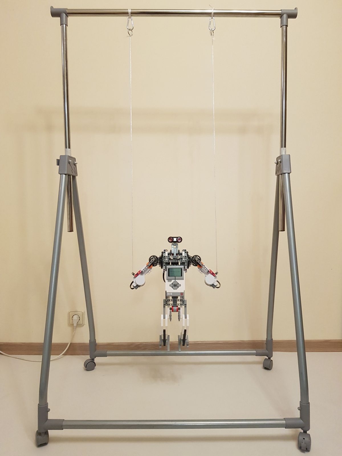Robot s podobou atléta je zavesený za ruky na dvoch šnúrkach upevnených o rám vešiaka. Atlét dokáže predviesť deväť rôznych cvikov v navolenom poradí. Pred začiatkom pripravenej zostavy cvikov atlét vykoná pozdrav, pričom ho ešte musíme držať v ruke. Potom už samostatne vykoná navolenú zostavu.