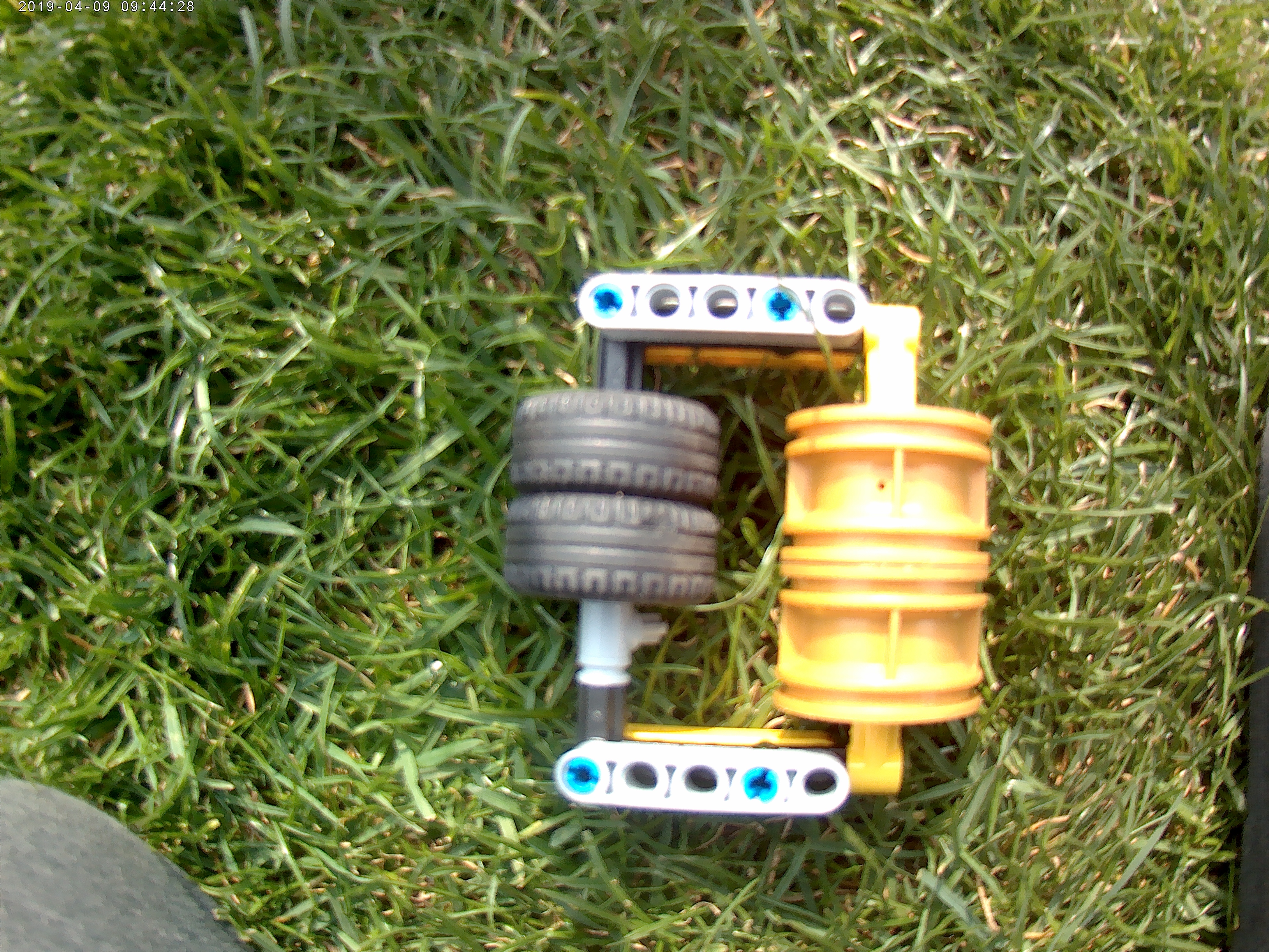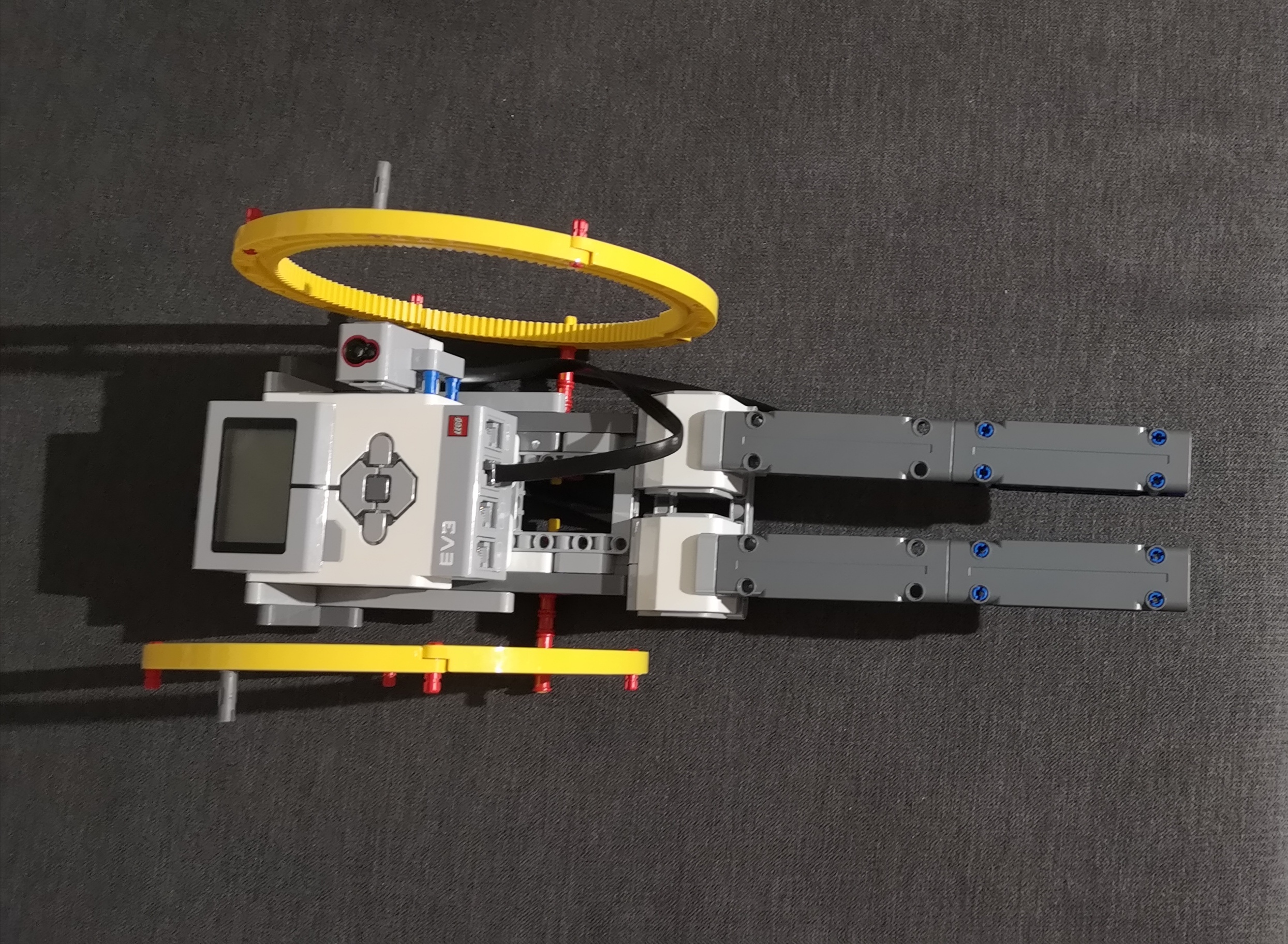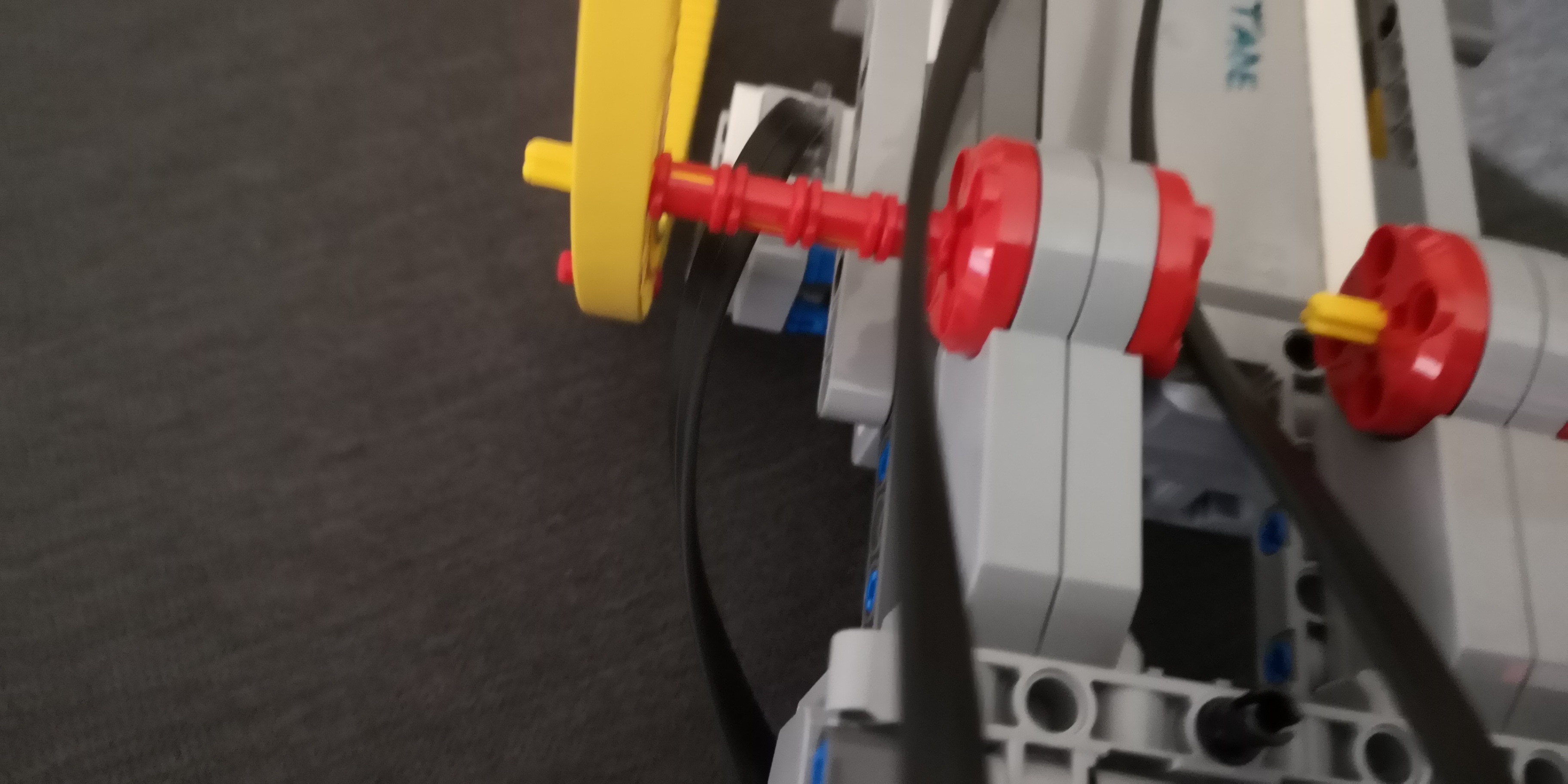 2x veľký motor, 1x colour senzor - aby mohol robot rozlišovať farby a podľa toho robiť rôzne počty otáčok, 1x ev3 kocka