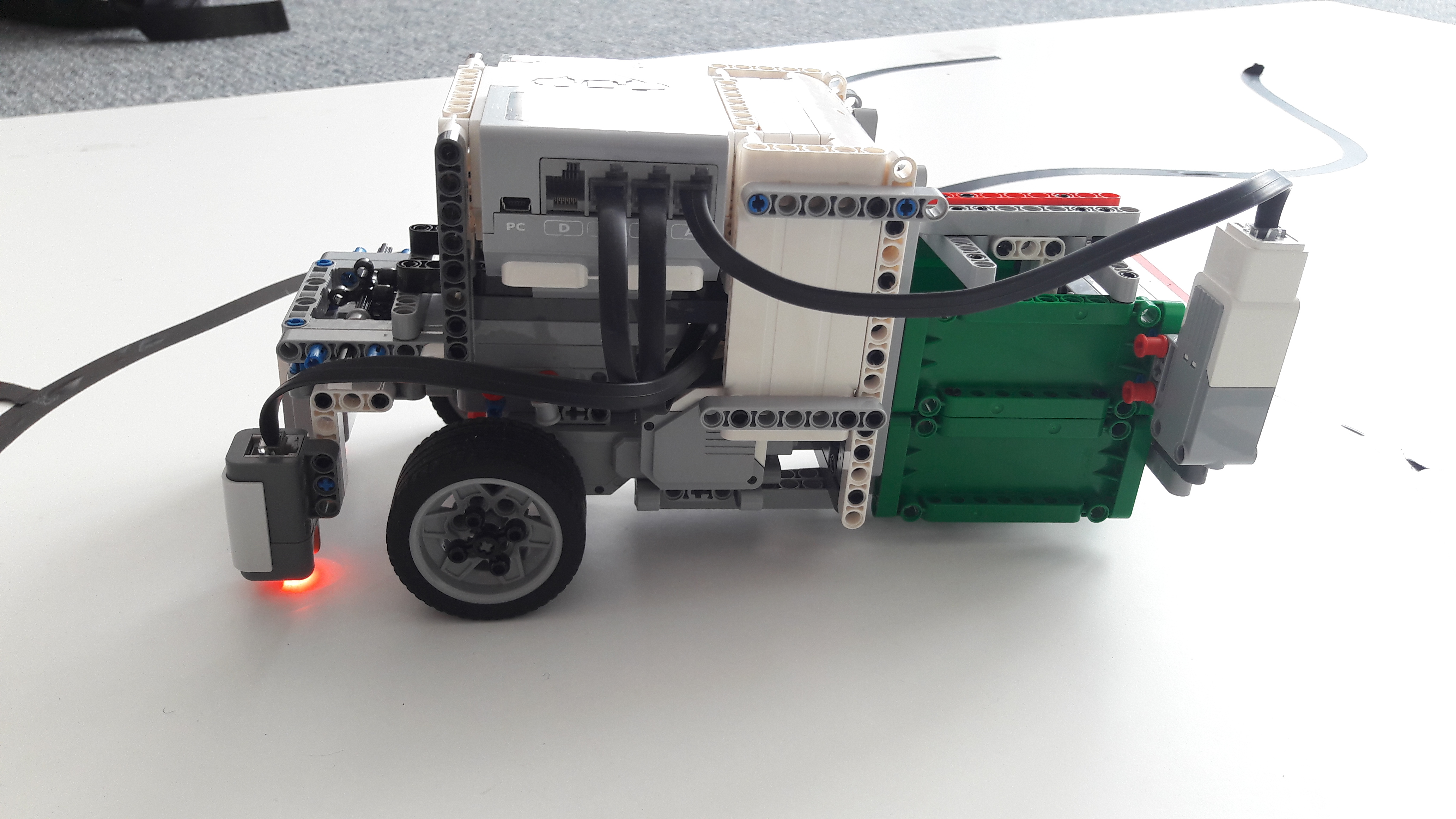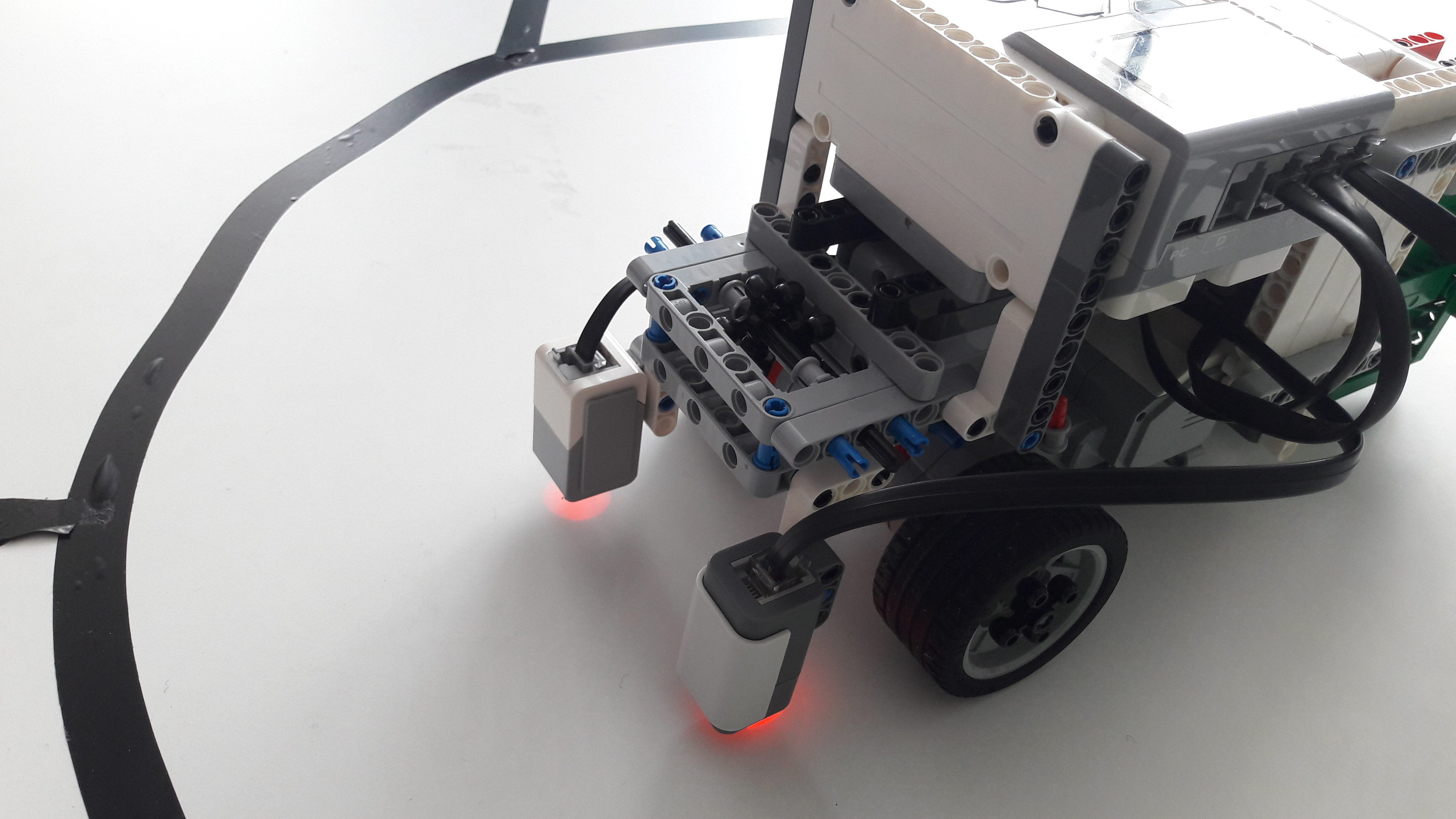 Robot prenasleduje čiaru sôsobom, že keď senzor nasníma čiernu farbu, robot pôjde smerom na bielu farbu. Teda, ak senzor zaznamená bielu farbu, robot smeruje k čiernej farbe. Toto využívame, teda keď robot príde na koniec čiary, začne sa otáčať, lebo senzor sníma bielu farbu a už tam nemá čiernu farbu o ktorú by sa zachytil a senzor bude snímať bielu farbu dlhšie ako normálne. Preto meriame, ako dlho senzor síma bielu farbu a pokiaľ je to dlhšie ako 2 sekundy vieme, že sa už otáča na konci čiary, čiže meranie dĺžky čiary sa ukončí.