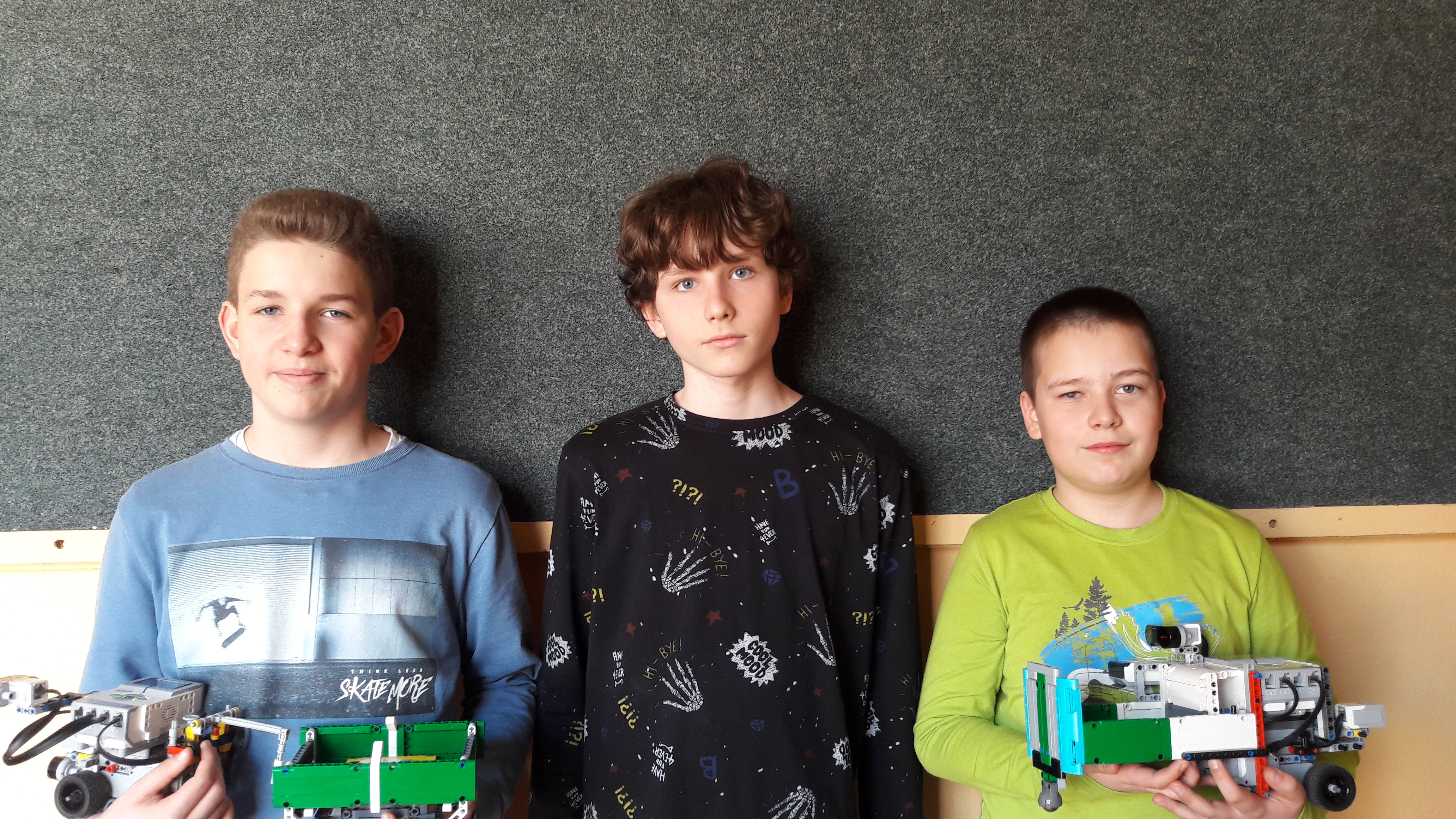 Ďakujeme za poctivé a príkladné riešenie. Áno, áno, na pohyb po čiernych čiarach sa skoro vždy lepšie hodí svetelný senzor, ale aj EV3 farebný senzor vie pracovať v režime odrazeného svetla, dokonca má lepší rozsah. Neviem o tom, že by bol potom od neho farebný senzor z NXT rýchlejší, Vy áno? Dajte vedieť, to je zaujímavé. 1. Veľmi pekné riešenie, ale ak sa lepšie pozrieme na zadanie: "...rozchodník neudáva vzdialenosti, ale časovú náročnosť, ktorá predáka nezaujíma...Úlohou robota je zmerať ich dĺžky..." Mali ste teda merať dĺžku cesty a nie časovú náročnosť prechodu cez cestu. 2. Výborné riešenie, robí všetko čo má. 3. Za úlohu Turistický poukaz získavate 3b. Robot dokáže sám prebehnúť po trase a zmerať ich a nakoniec vyhodnotiť druhú najdlhšiu trasu. Škoda, že ste do videa nezakomponovali namerané hodnoty. 4. Chválim podrobný písomný popis riešenia úlohy. Riešenie je tiež dobre zobrazené na videu.