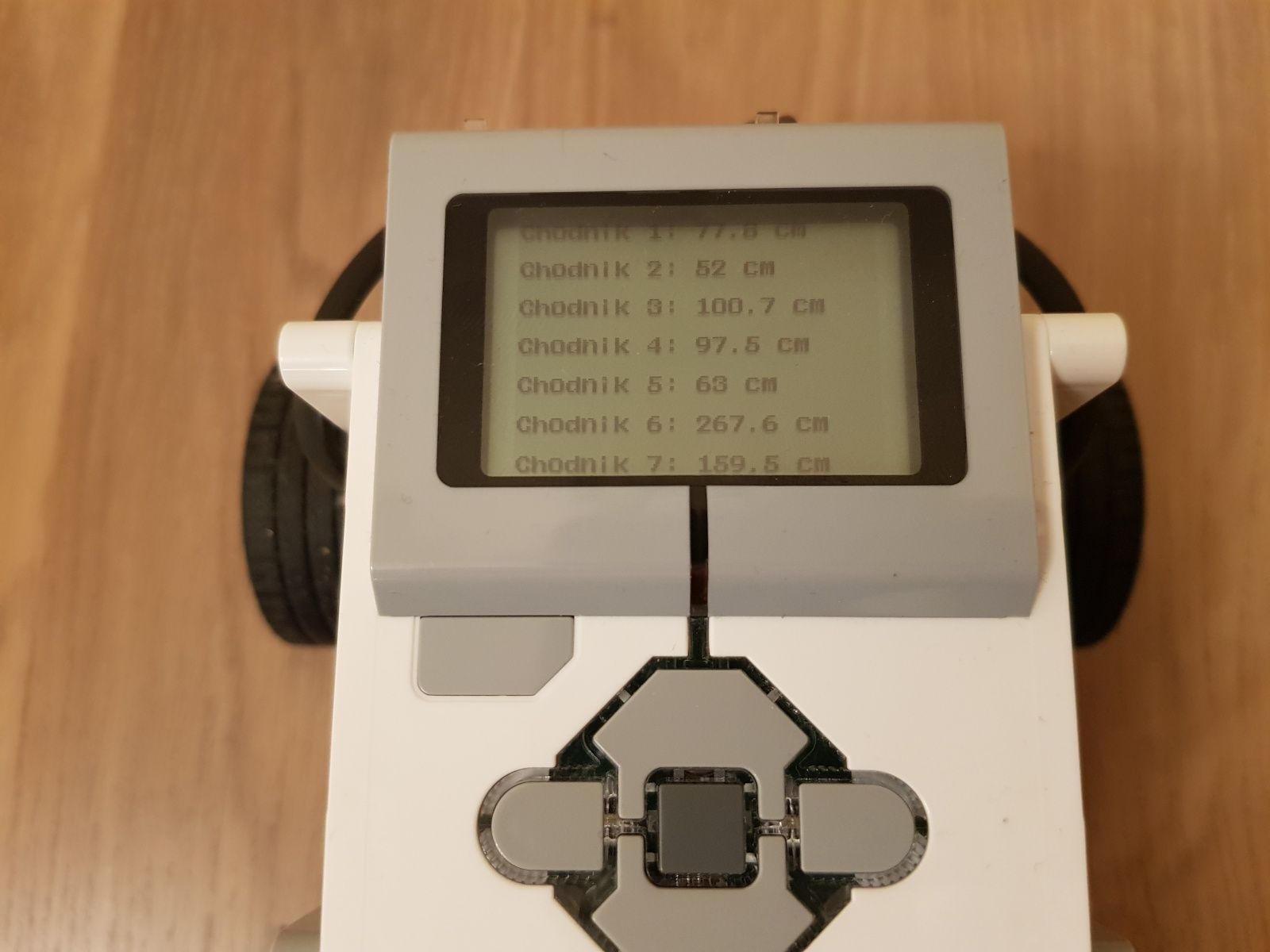 Najskôr robot vyjde z chaty na cestu okolo chaty, príde na druhý najbližší chodník, začne ho merať a na konci chodníka jeho dĺžku zobrazí na obrazovke. Potom odmeria zvyšné chodníky pričom ich dĺžku zobrazí na displeji. Keď sú zmerané všetky chodníky zistí, ktorý bol druhý najdlhší a príde k nemu po ceste okolo chaty. Následne príde na jeho koniec, položí tam poklad a vráti sa späť na chatu.