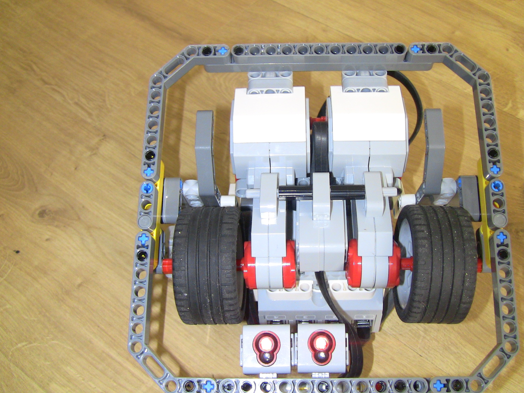 2 Large motoey na ktorých je upevnená kocka,
