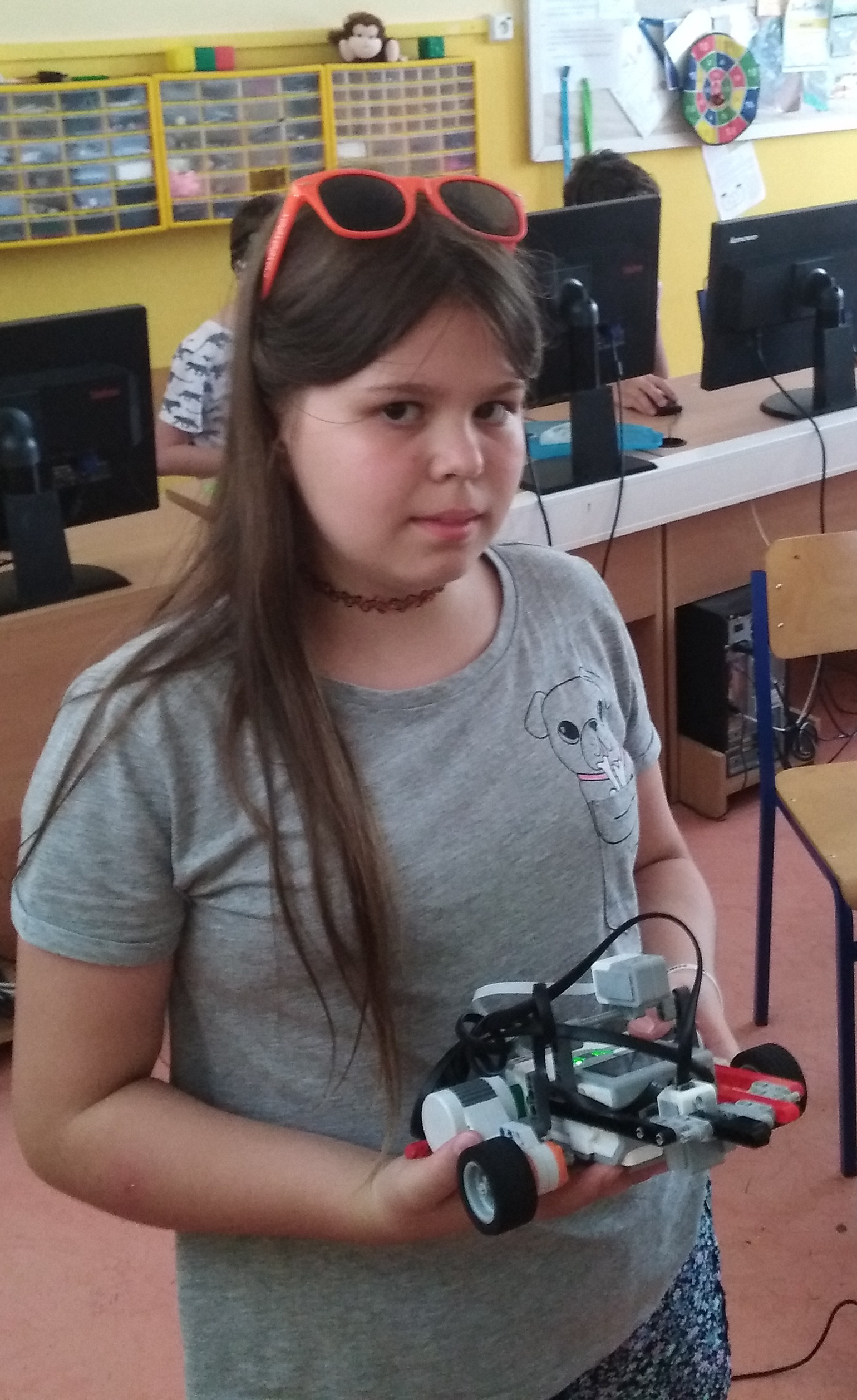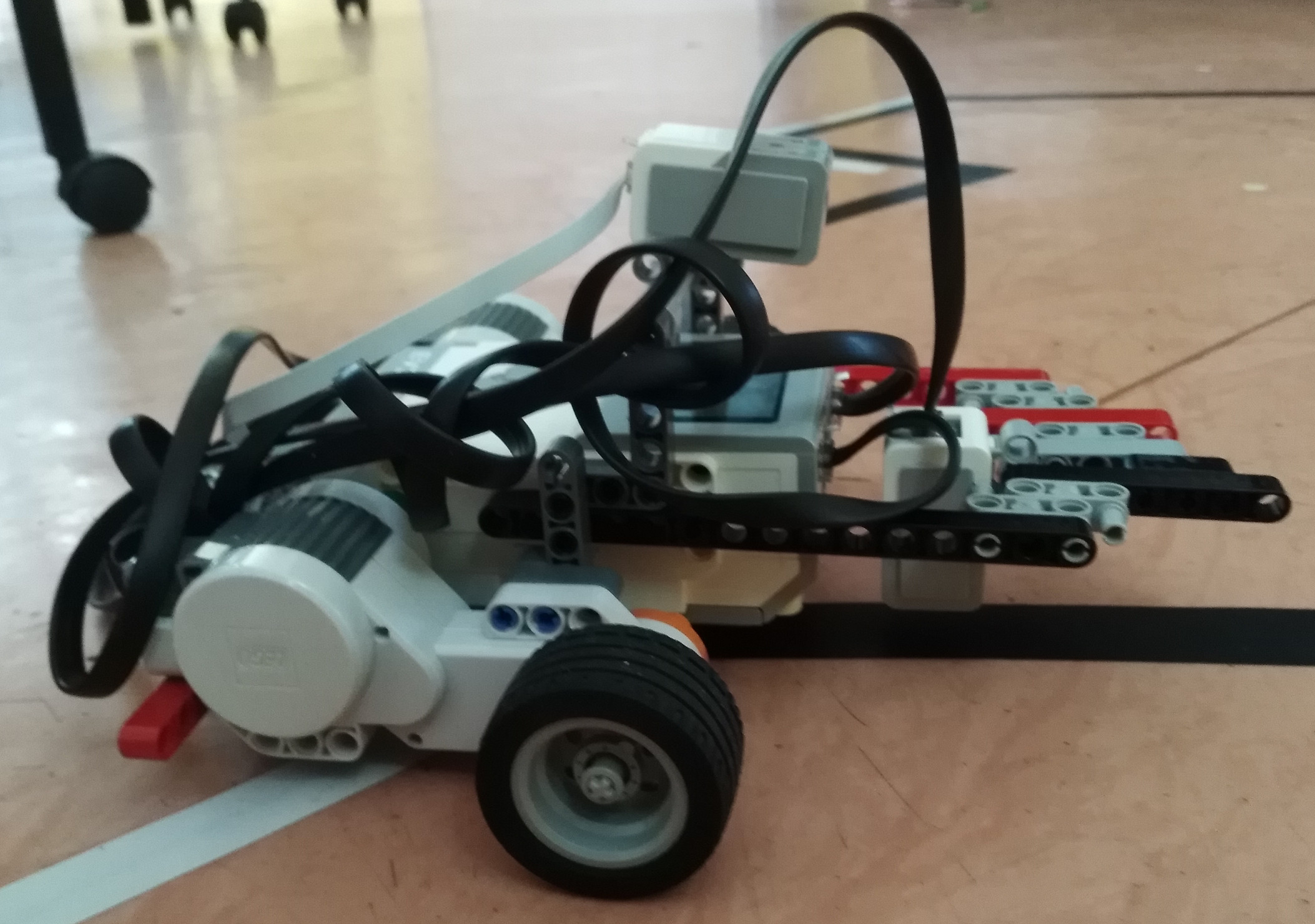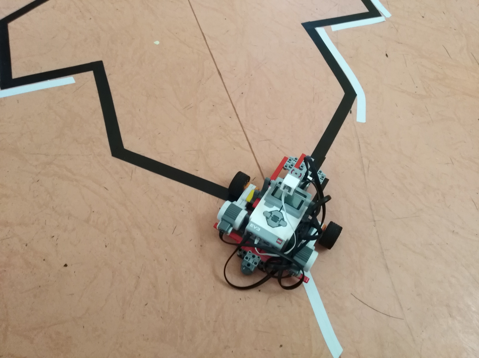 Na jazdu po čiare používa jeden svetelný senzor a jazdí plynule vďaka počítaniu vzorca.