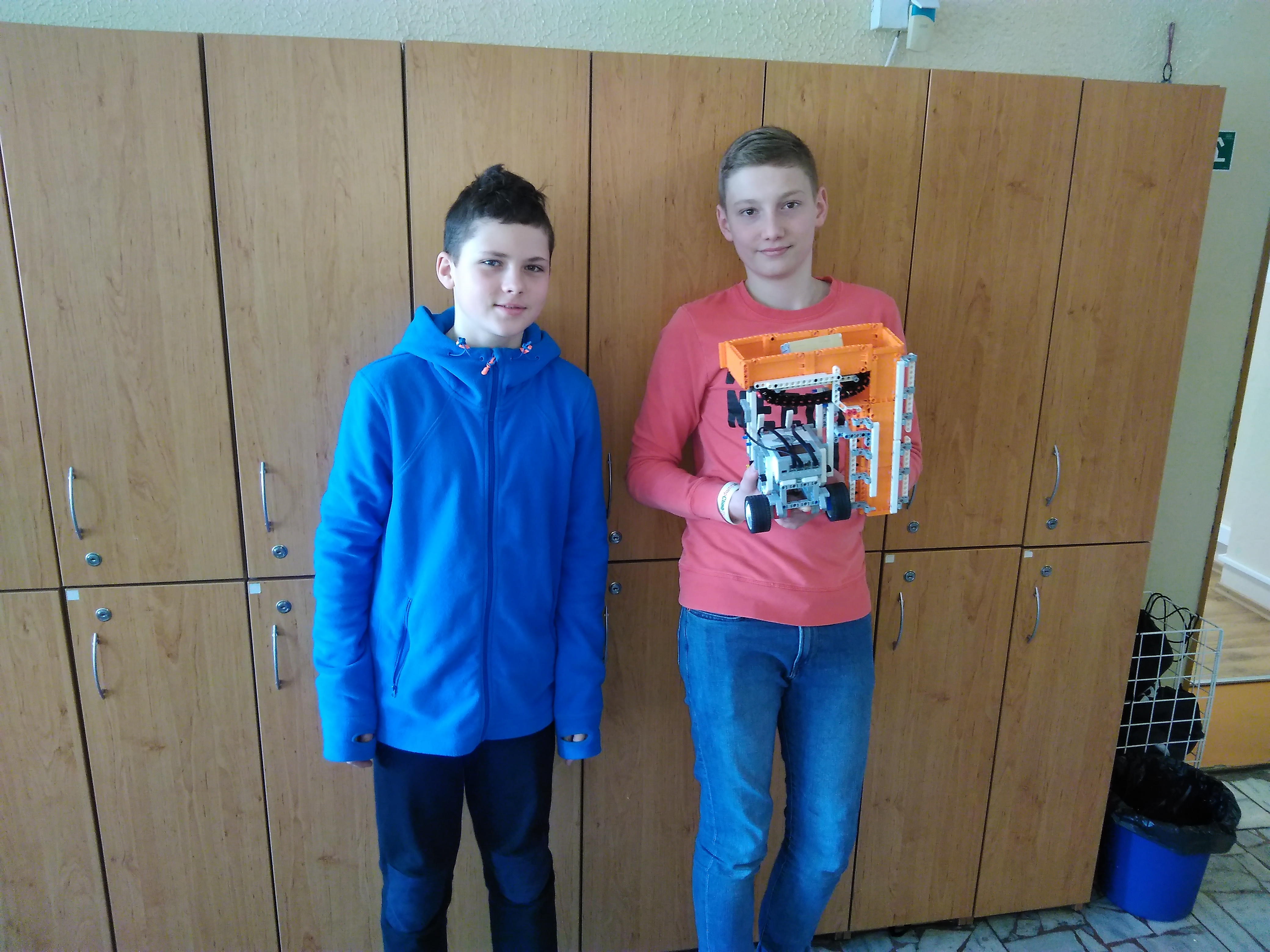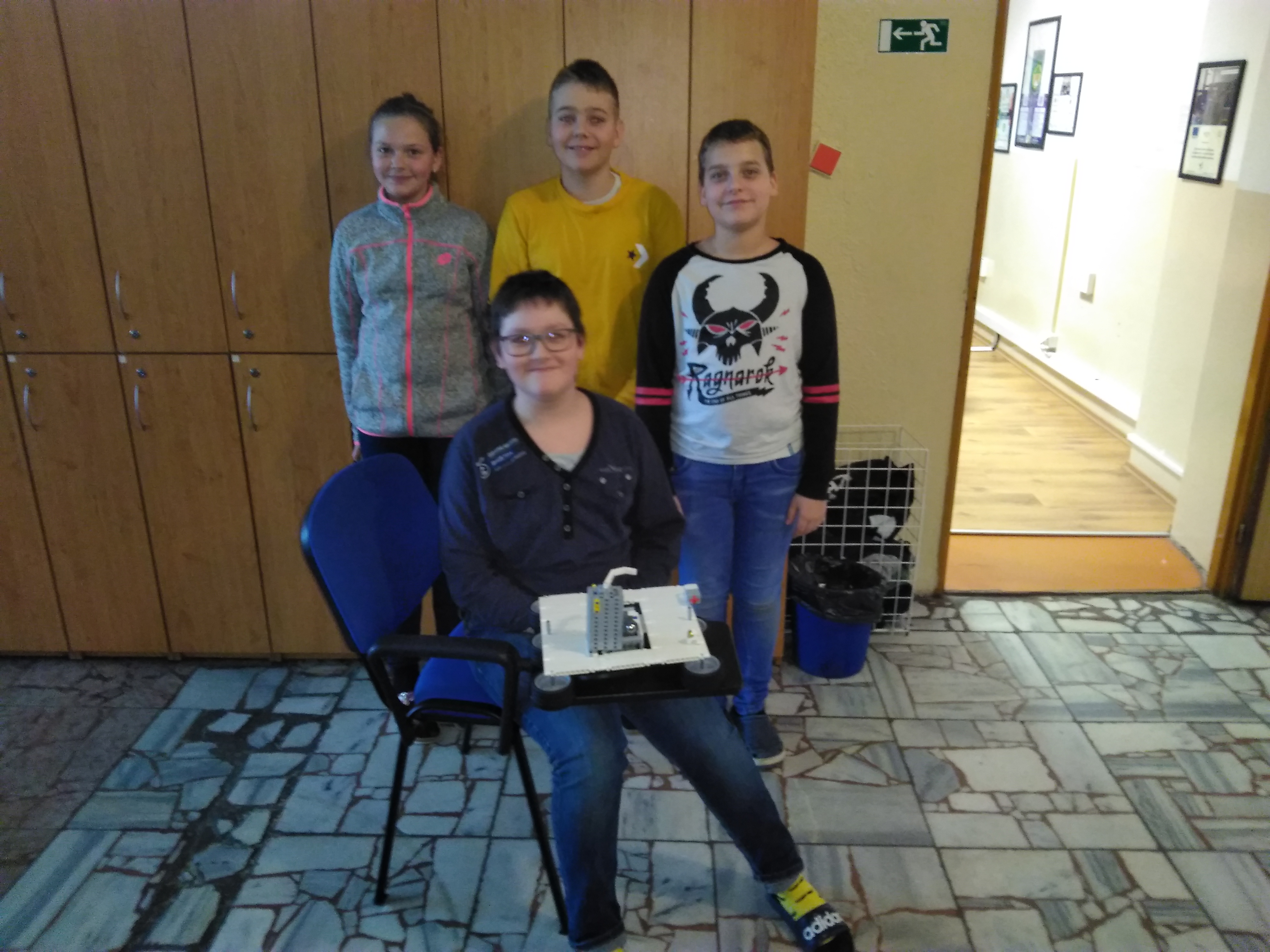 1. Škoda, že vám chýba program, opis programu a fotky konštrukcie. Robot vyzerá výborne, len stromy nie sú 2x vyššie ako podstava. A nesadí ich ani dosť pravidelne. 2. Za úlohu zasaď strom získavate 2,1b. Chýba Vám popis riešenia. Vo veľmi krátkom videu nebolo poriadne vidieť sadenie stromov, ale Vaše stromy nemali požadované rozmery. 3. Pekný pomocník pri vysádzaní stromčekov :). Chýba mi popis riešenia a aj fotka stromčekov s nejakým pravítkom aby sme si mohli overiť, či stromčeky spĺňajú kritéria :). Možno by ste mohli vylepšiť vysádzača robota tak aby mal viacej stromčekov, aby sme sa mohli pozrieť či ich vysádza rovnomerne :) Držím palce pri riešení ďalších úloh ;). 4. Riešenie spĺňa základné formality, ale chýba popis riešenia. Vykladač stromov je vcelku podarený, ale ak by stromčeky boli aké majú byť a nie kockaté, asi by im pri páde z výšky hrozilo prekopŕcnutie.