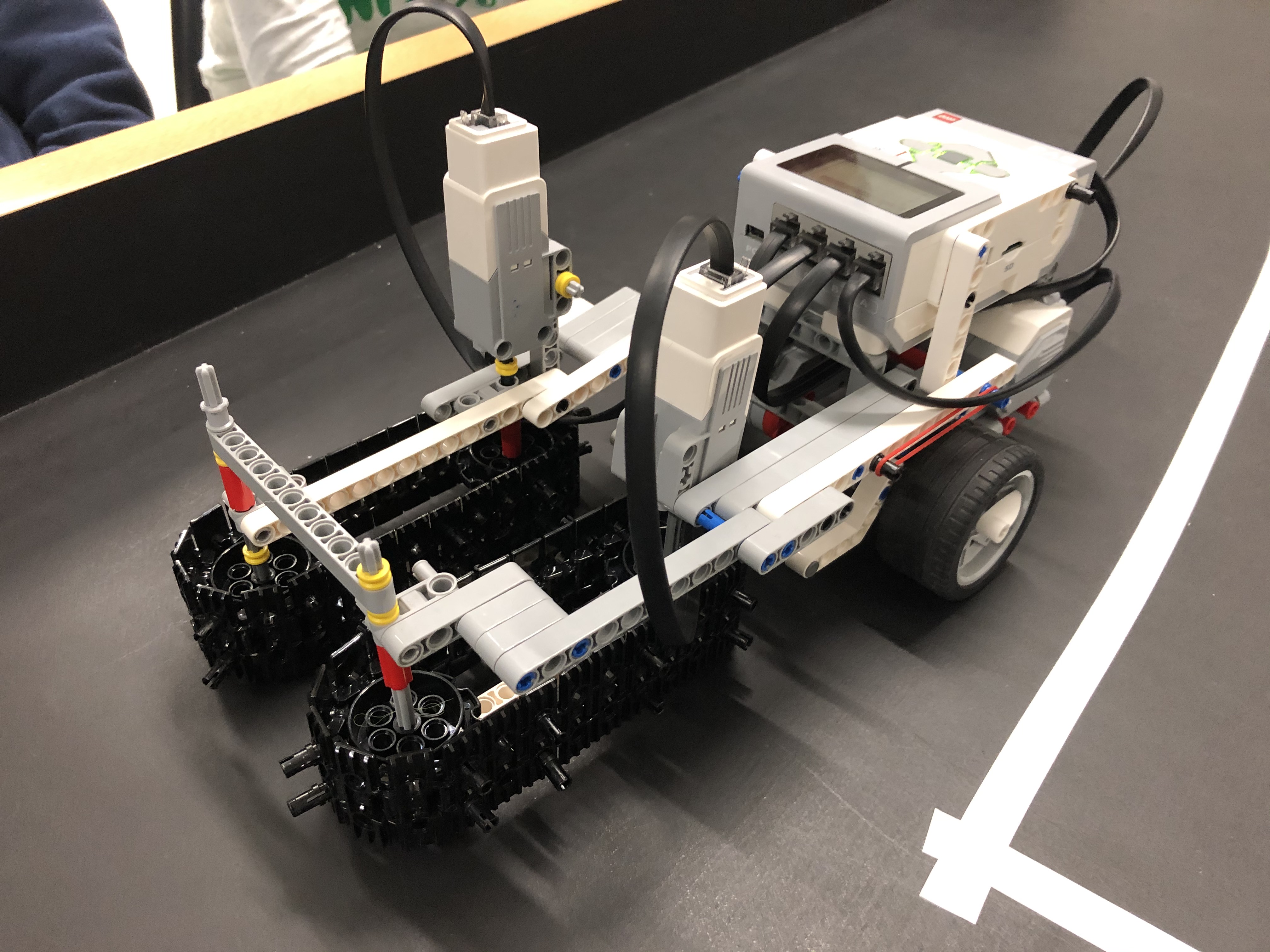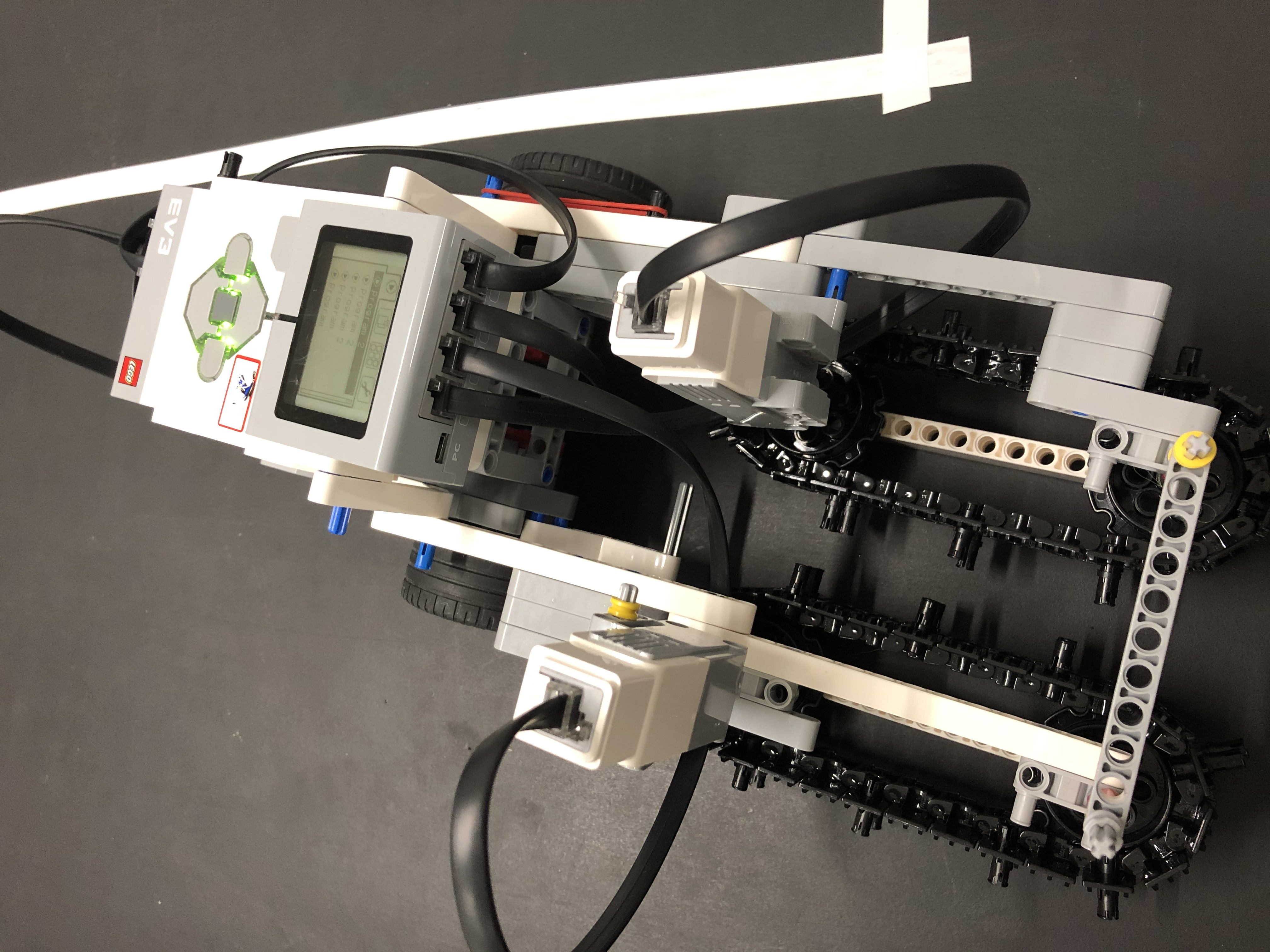 Robot sa skladá z dvoch veľkých motorov na pohyb celého robota, a z dvoch stredných motorov, ktoré zabezpečia posunutie reťazov.