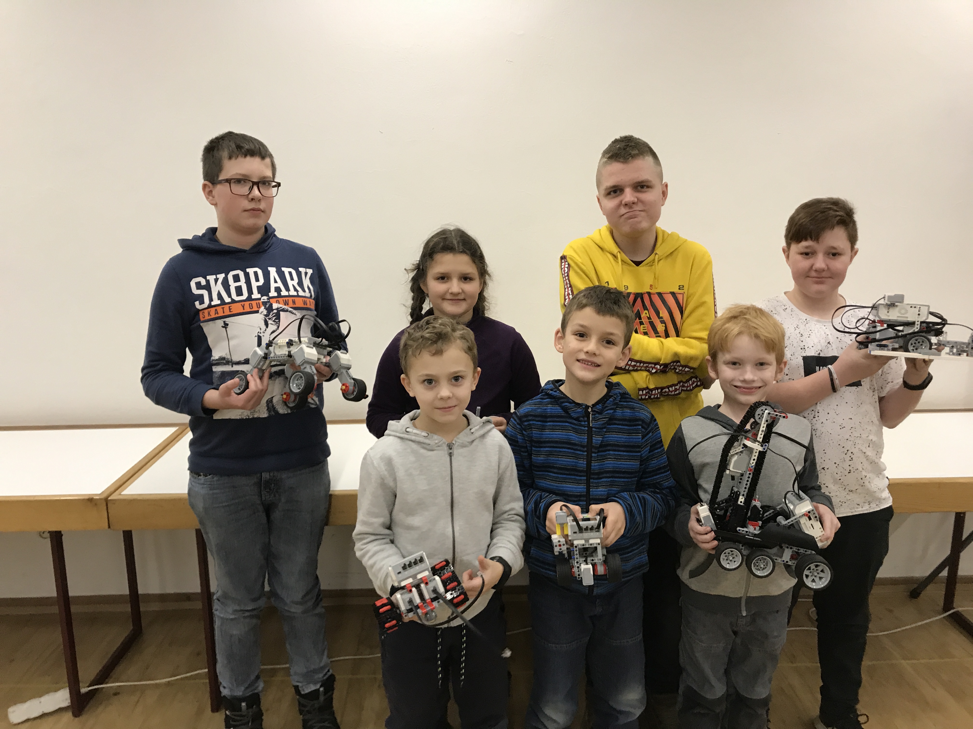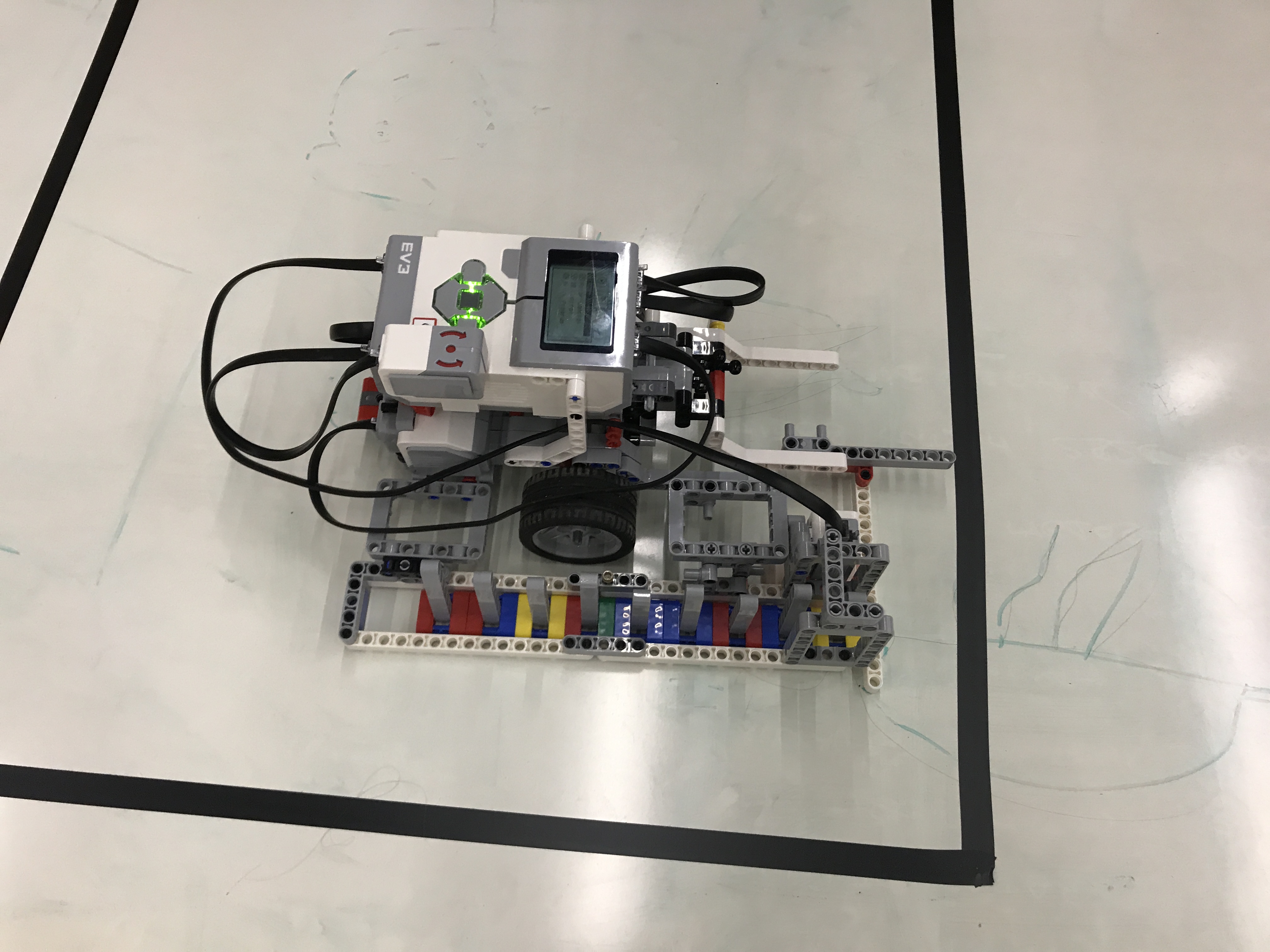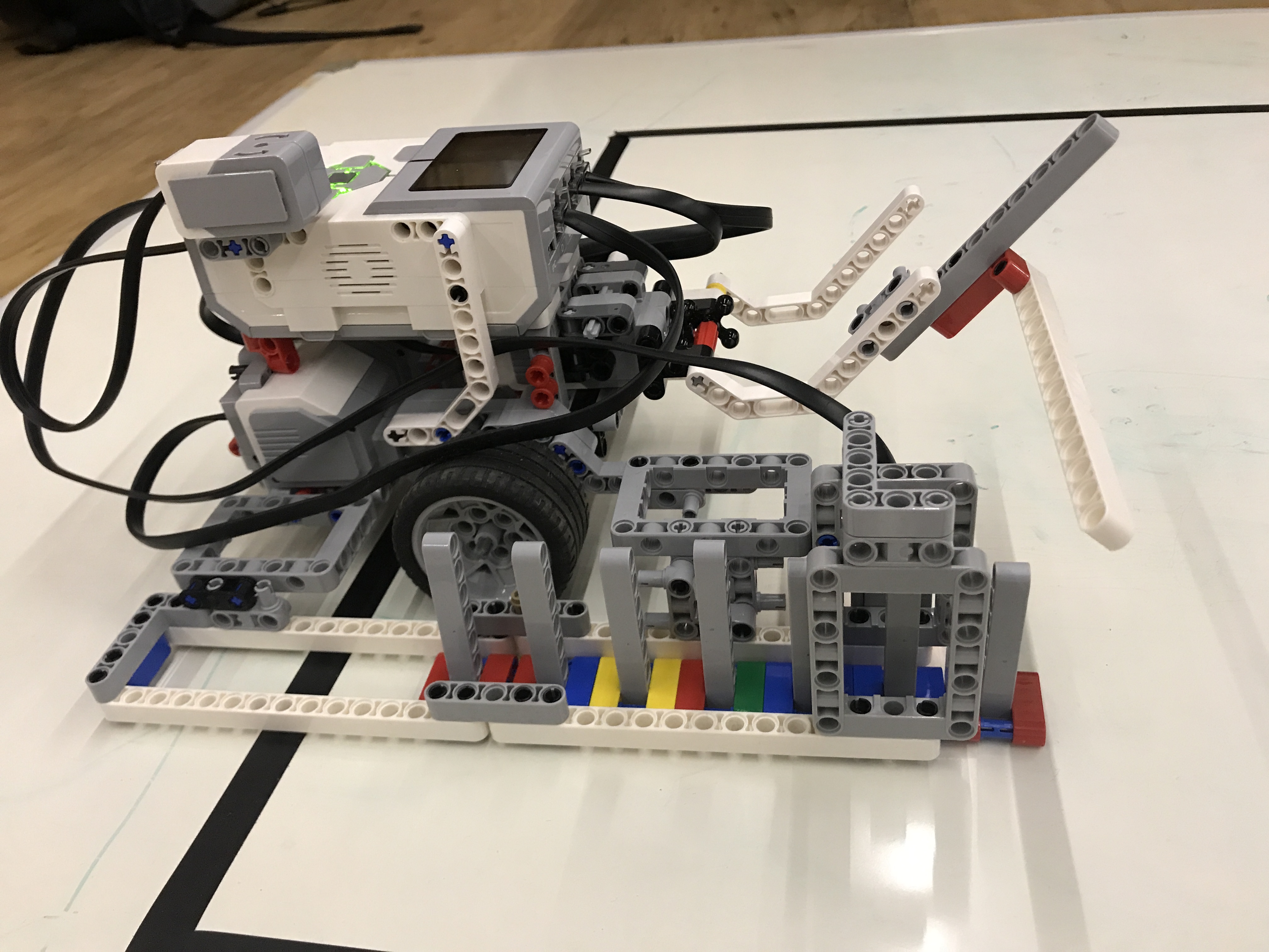 Náš robot je zložený zo základného autíčka, ku ktorému je pridaný zásobník na stromy. Dvíhaním ramena, ktoré poháňa stredný motor, vypúšťa stromčeky zo zásobníka. Na otáčanie používame gyroskop a na detekciu konca plochy, na ktorej vysádzame používame svetelný senzor.