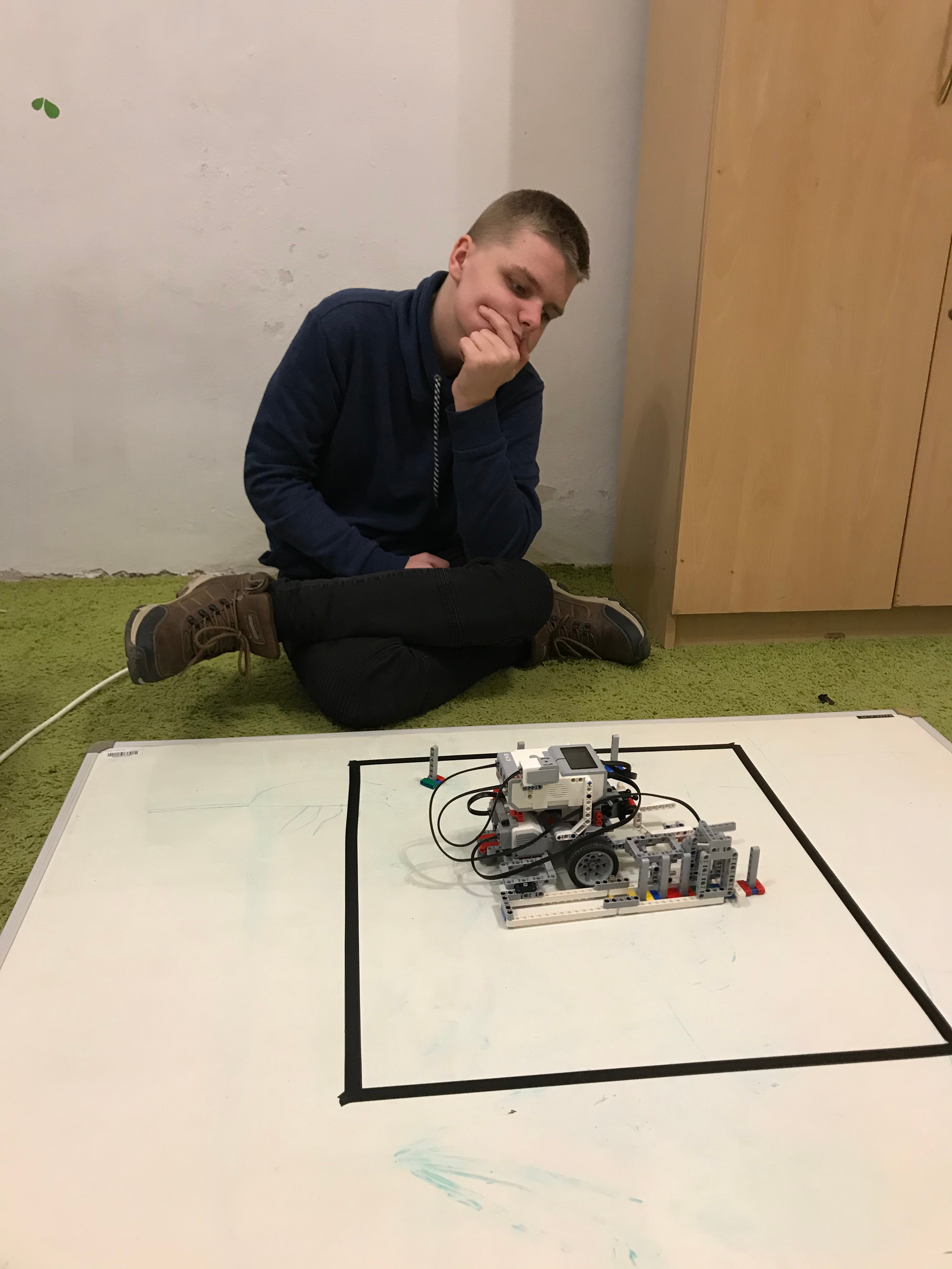 1. Výborný nápad s tým uvoľňovacím mechanizmom, páči sa mi aj to, že sadí pekne rovnomerne a do viacerých radov. 2. Za úlohu zasaď strom získavate 3b. Vytvorili ste veľmi pekné riešenie úlohy. Stromy su rovnomerne od seba vzdialené a jasne ste ohraničili územie sadu. 3. Pekné riešenie! Na videu bolo krásne vidieť ako robot vysadil rovnomerne všetky stromčeky :). Drobná rada, v úlohe bolo napísané, aby rozmery stromčeka spĺňali určité kritéria. Bolo by dobré keby na tej fotke stromčeka bolo aj pravítko, aby sme si mohli byť na 100% istý, že je stromček vhodnej veľkosti :) 4. Riešenie spĺňa všetky základné formality. Toto je elegantné, jednoduché, ale kompletné riešenie. Samozrejme, v praxi by sa stromčeky nemohli takto kĺzať po zemi, to by nerobilo dobrotu, takže ste využili zjednodušenie vášho modelu povrchu zeme a stromčekov. V realite by však vykladač musel mať ešte nejaký posuvný mechanizmus, lebo trenie s povrchom zeme by asi nebolo možné takto využiť. Páči sa mi ale, že ste sa vynašli.