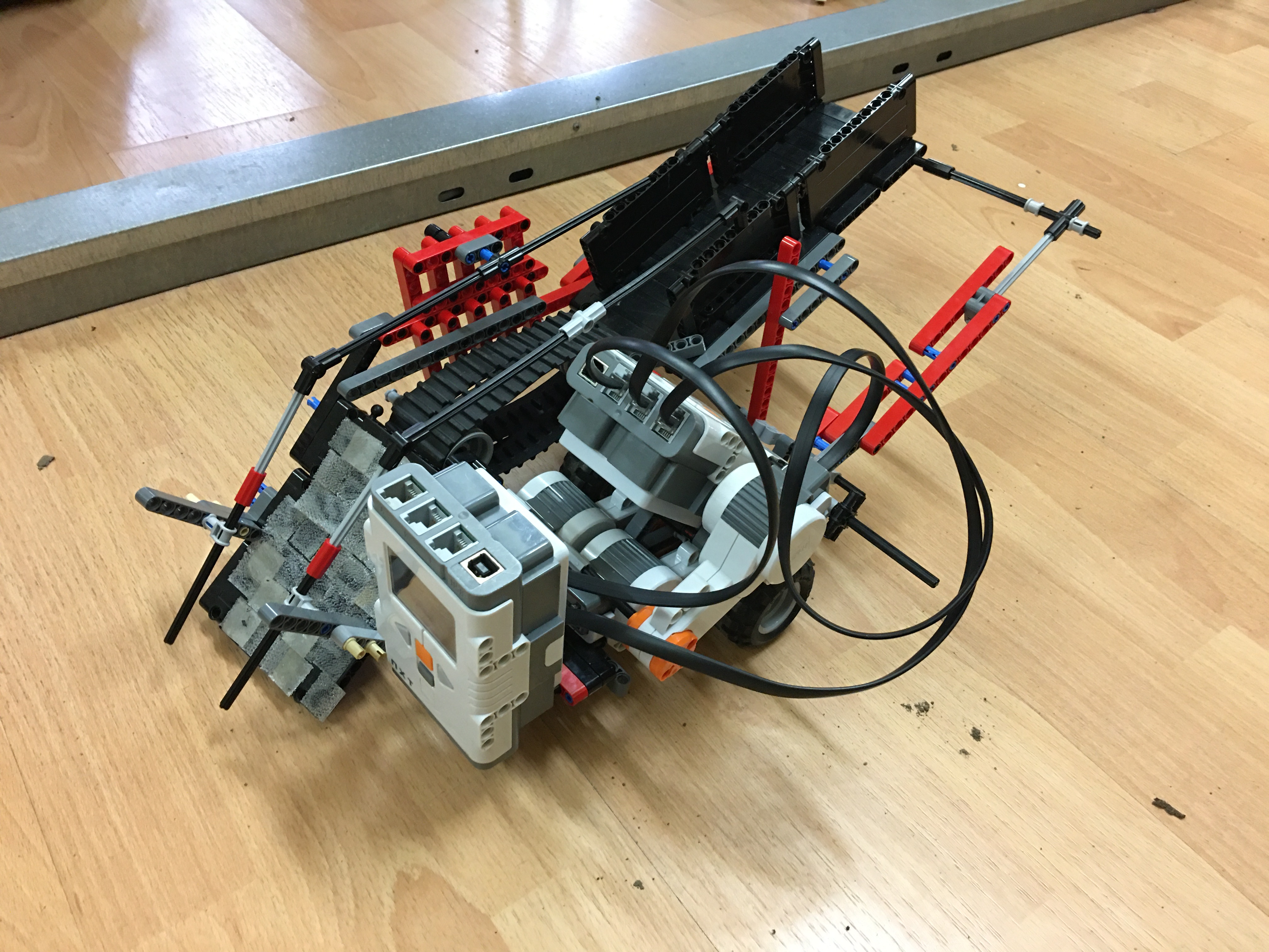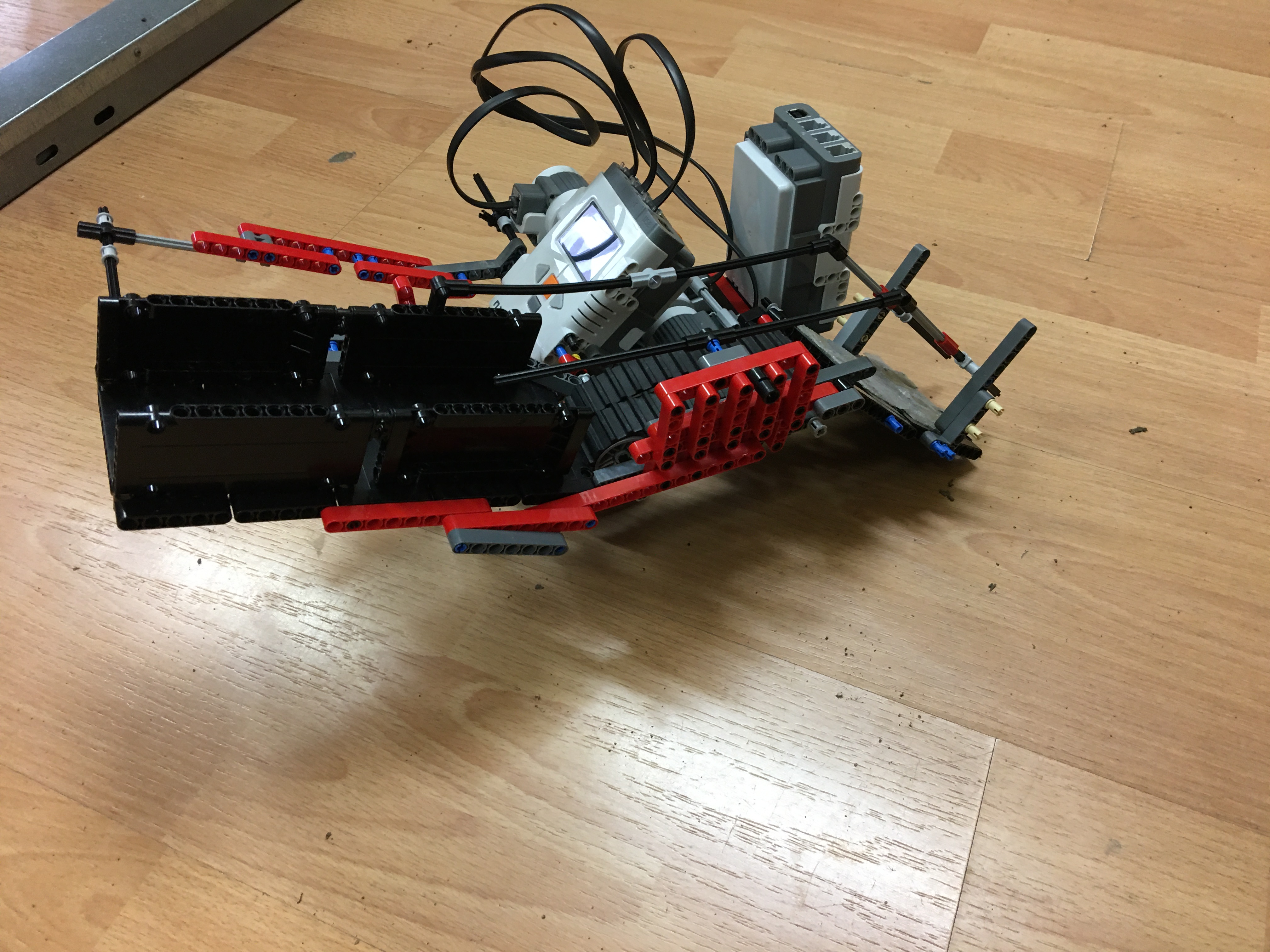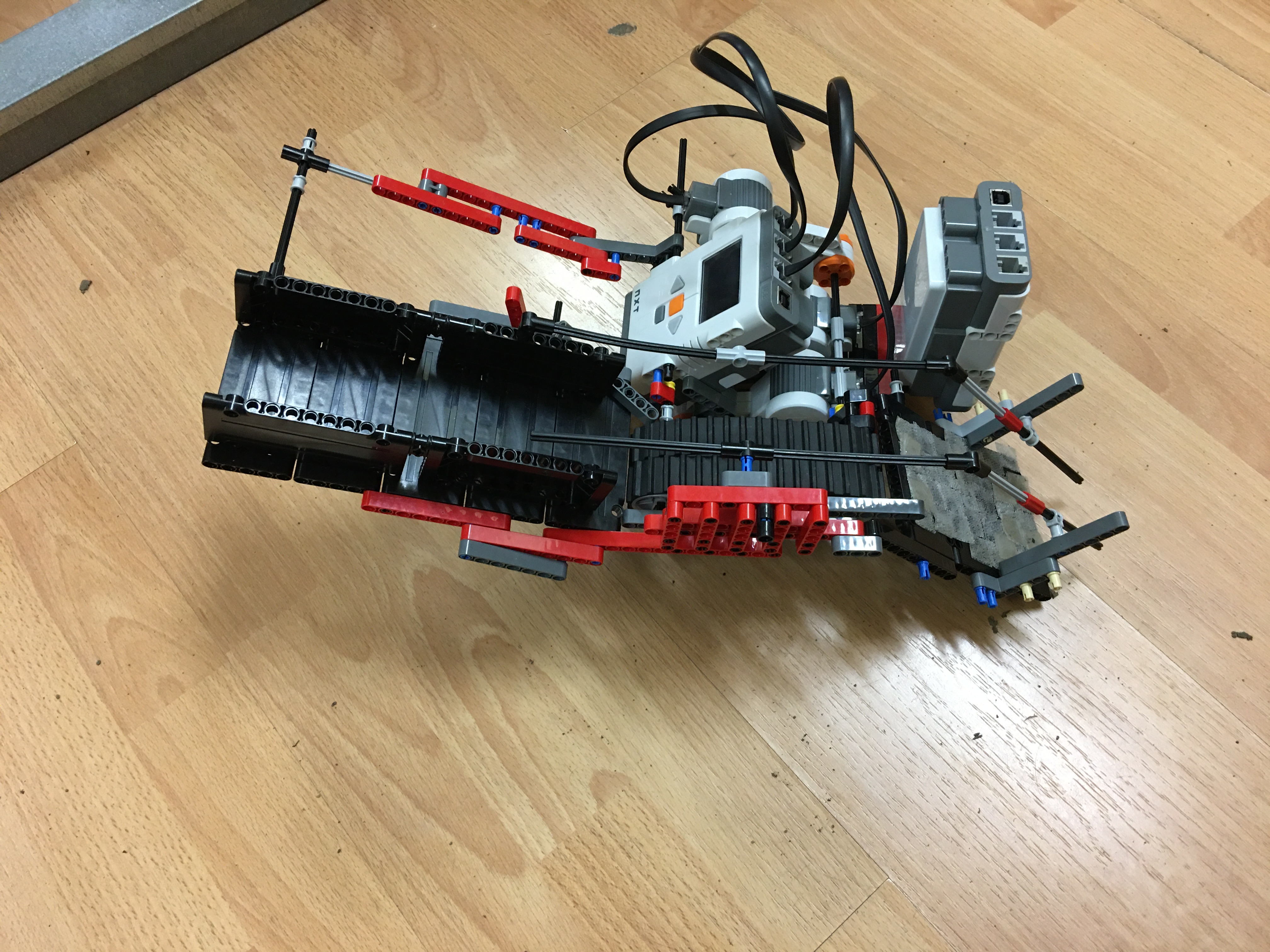Nášho robota sme stavali tak, že sme tam dali pás ktorý poháňa naše stromčeky ktoré sú uskladnené na plošine. Táto plošina je postavená z doštičiek ktoré sú pripevnené o motor a pásy. Náš robot má 3 motory, dva motory slúžia na poháňanie kolies, a jeden na poháňanie pásu. Aby sa stromčeky dostali na zem museli sme tam pripevniť mostík, na ktorom sú pripevnené suché zipsy, ktoré zabraňujú tomu aby sa stromčeky rýchlo zošmykli dole. Na mostík sme ešte pripevnili zábradlie ktoré zabraňuje tomu, aby sa stromčeky prevrátili. Aby sa robot neprevážil tak sme na druhú stranu pridali ďalšiu kocku NXT. Robot je naprogramovaný tak že, sme použili povel move. Robot vysádza 6 stromčekov po jednom do obdĺžnikového tvaru, stromčeky merajú 6,5 centimetrov.