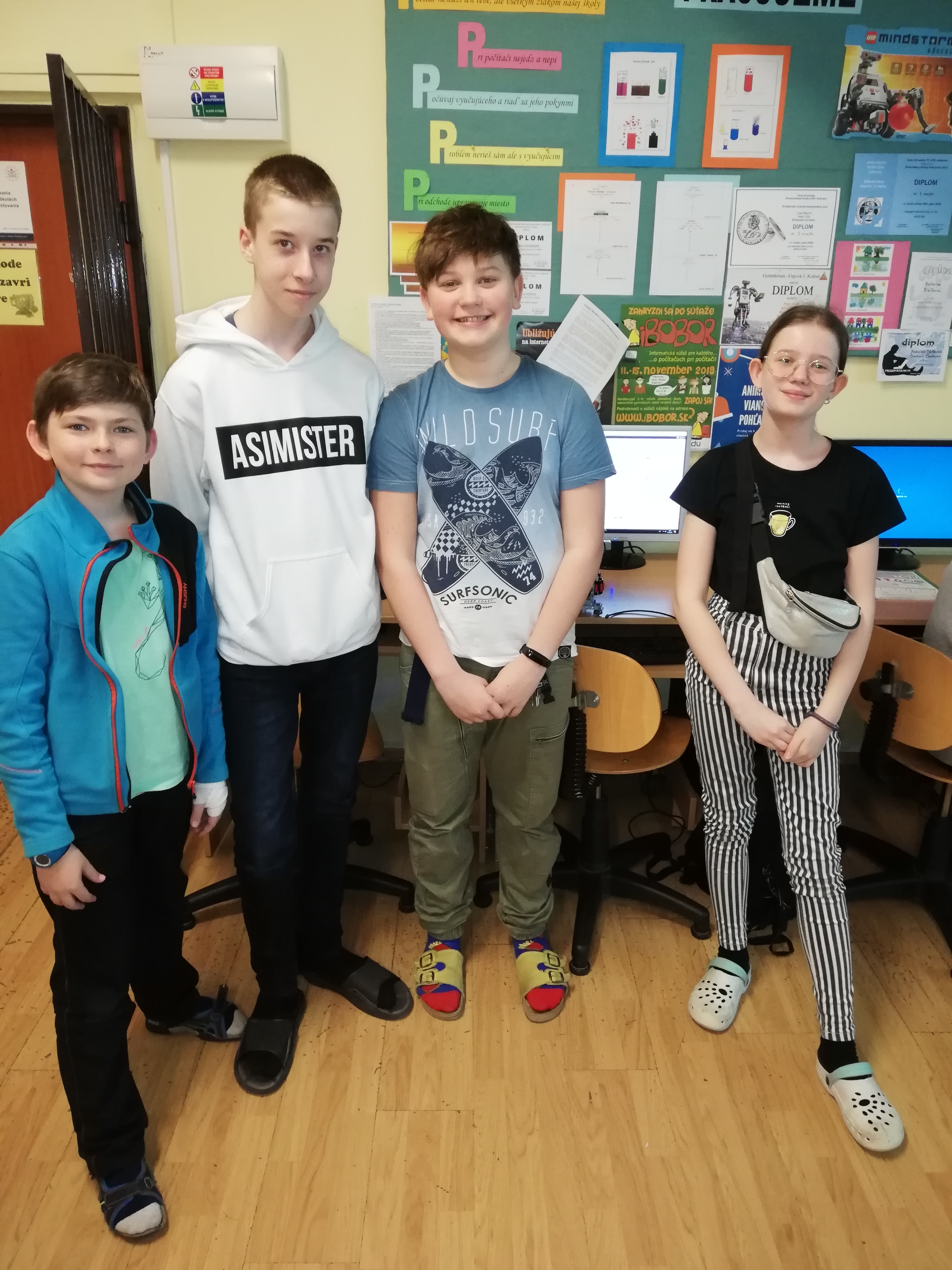 1. Myslím, že ste vymysleli veľmi dobrú konštrukciu a páči sa mi aj to, že ste v opise riešenia spomenuli problémy, ktoré ste mali. Nie vždy všetko funguje tak ako sme si predstavovali a málokedy bez chyby a nikdy nie na prvý raz. Možno ste mohli skúsiť robota spomaliť, aby stromčeky nepadali, alebo im spraviť ťažšiu základňu, tak aby sa neprekotili len tak ľahko. 2. Za úlohu zasaď strom získavate 2,9b. Páči sa mi detailný popis riešenia úlohy. Vo videu bolo vidieť, že stroj na sadenie ste síce vymysleli, ale kebyže nie je pod kontrolou, tak by vysadil stromy asi aj u susedov :) 3. Pekné riešenie! Keby stromčeky až tak nepadali, tak toto by bol robot rýchlovysádzač! :) Pekný popis riešenia, škoda, že tie stromčeky popadali :( (Skúšali ste znížiť rýchlosť vypustenia stromčeka?) V úlohe bolo napísané, že stromček má mať určité rozmery, bolo by dobré, keby na fotke stromčekov bolo aj priložené pravítko, aby sme si mohli byť na 100% istý, že stromček spĺňa kritéria :). Držím palce pri riešení ďalších úloh! ;) 4. Riešenie spĺňa všetky základné formality. To je nádherný mechanizmus. Trochu by som asi znížil rýchlosť pásov, aby stromčeky nevypadli. Aj stromčeky sa mi páčia, sú to také veselé palmy. Držte sa a programovanie nepodceňujte. Tešíme sa na ďalšie riešenia!