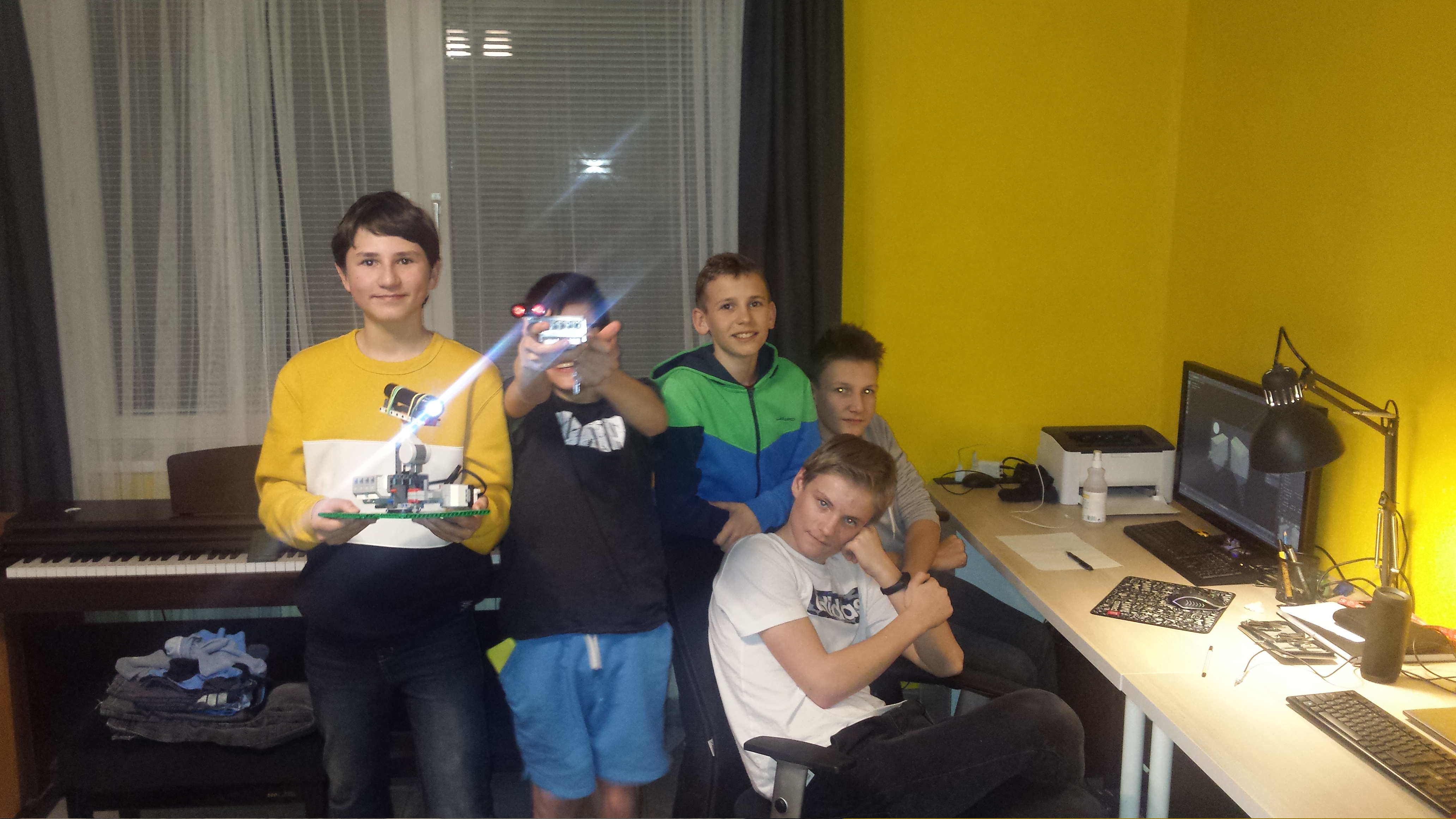 1. Ohooo! Osvetlovač pre živého herca, to je naozaj super. Pekne ste to vymysleli, aj to nastavovanie na začiatku. Mohli ste ukážku natočiť za šera, alebo v tme, vyzeralo by to naozaj skvelo. 2. Vyzerá to fajn. Obzvlášť, že ste použili ako herca reálneho človeka :) Mohli ste natočiť viacej z poslednej časti videa, ako osvetlovala baterka herca, keď bolo zhasnuté. 3. Rýchle reakcie, nasvietenie reálneho modela (herca). Pekné komplexnejšie riešenie, zaujimavé využitie bluetooth. 4. Ďakujeme, je to veľmi podarené, jediný tím, ktorý použil skutočného herca, super! BT spojenie dvoch kociek môžete urobiť aj ručne priamo na kocke, ale samozrejme takto je to profesionálnejšie. :-) Oceňujem kalibráciu na začiatku programu - a potom zohľadnenie nakalibrovaných hodnôt vo výpočte, výborne! Aj využitie minima z oboch senzorov je dobrý nápad, pekné, že aj čakáte na možné dozvuky pulzu po prvom meraní. Mimochodom viacero programov pre rôzne EV3 môžete tiež schovať do jedného projektu, ale to asi viete. Celkovo je to kvalitná práca. Už len nejak popracovať na automatike aj pre druhý rozmer (dať človeku nejaký wearable?)
