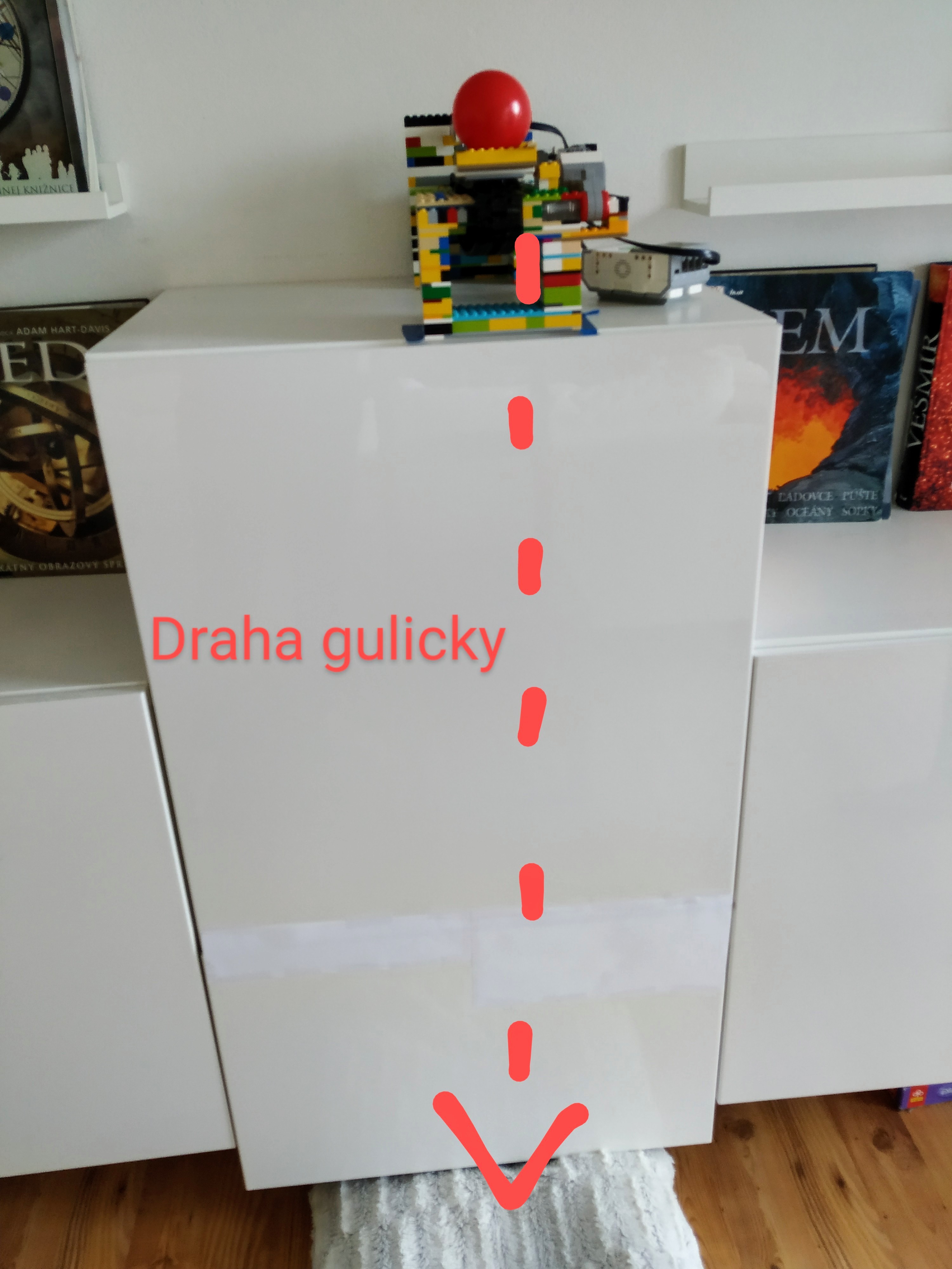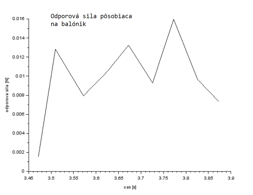 Najprv sme chceli pád guličky snímať ultrazvukovým senzorom druhého robota, merania však boli velmi nepresné a preto sme sa rozhodli použiť kameru laptopu. Po analýze dát nám koeficient odporu vzduchu vyšiel 0.47 a odporová sila nám vyšla 0.006N - 0.016 N.