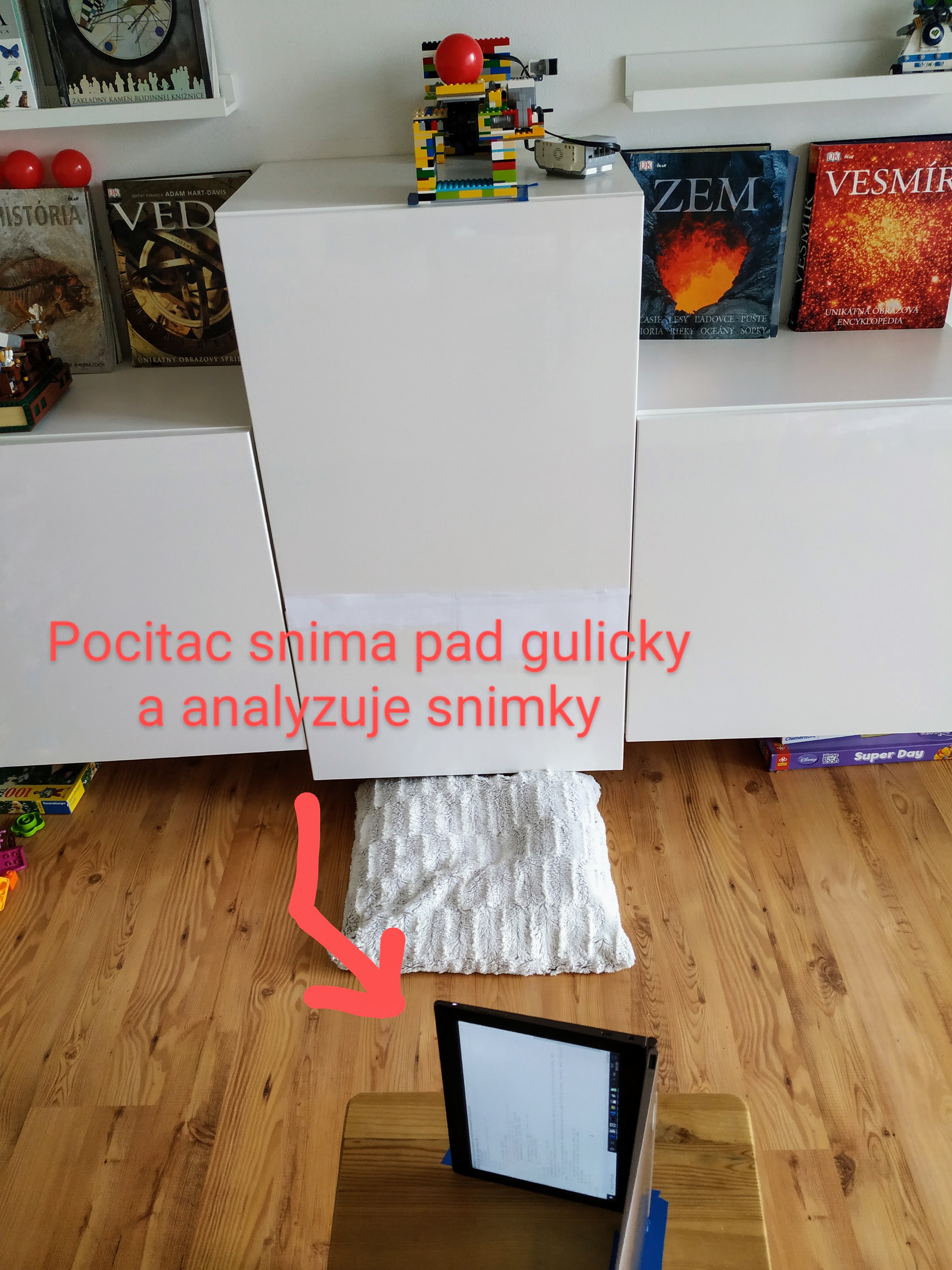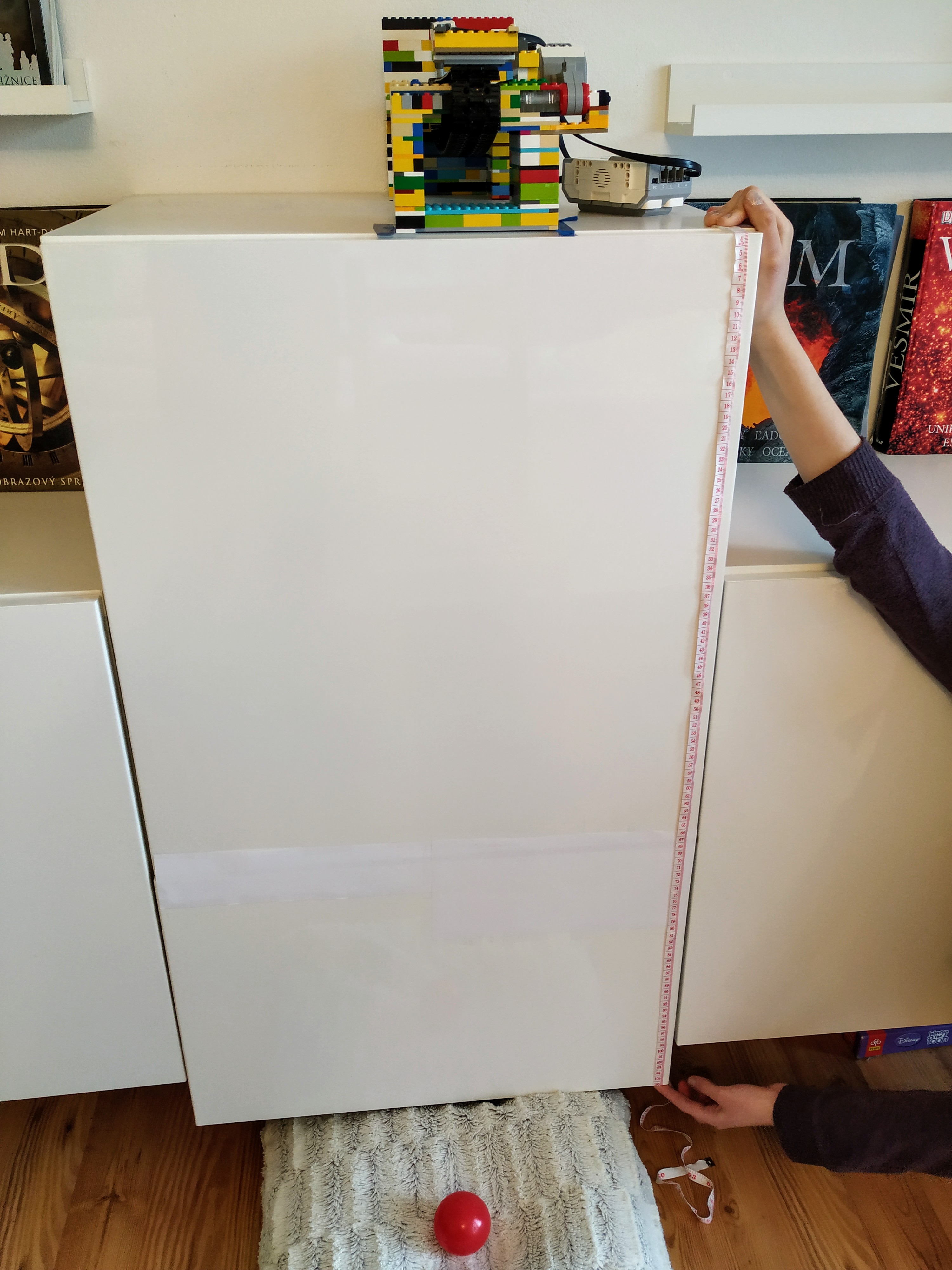 Na meranie odporu vzduchu sme použili volný pád guličky/balónika. Postavili sme robota, ktorý guličky spúšťa, pohyb počas pádu sme snímali kamerou laptopu a následne sme spracovali namerané údaje o polohe guličky v rozličnom čase.