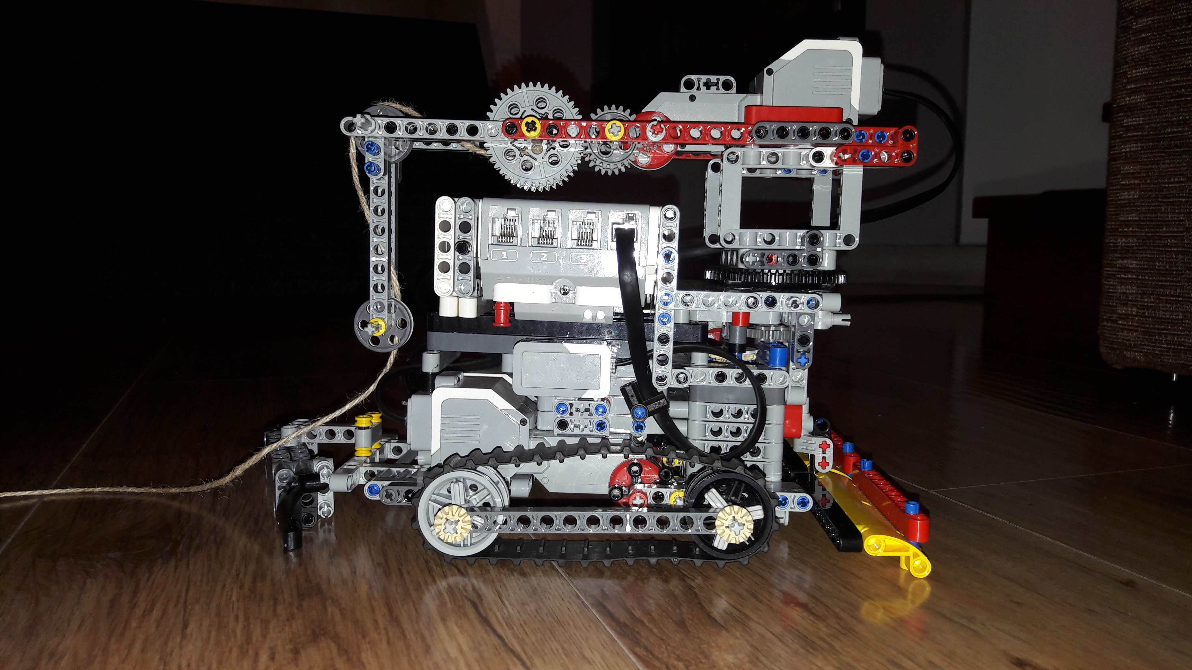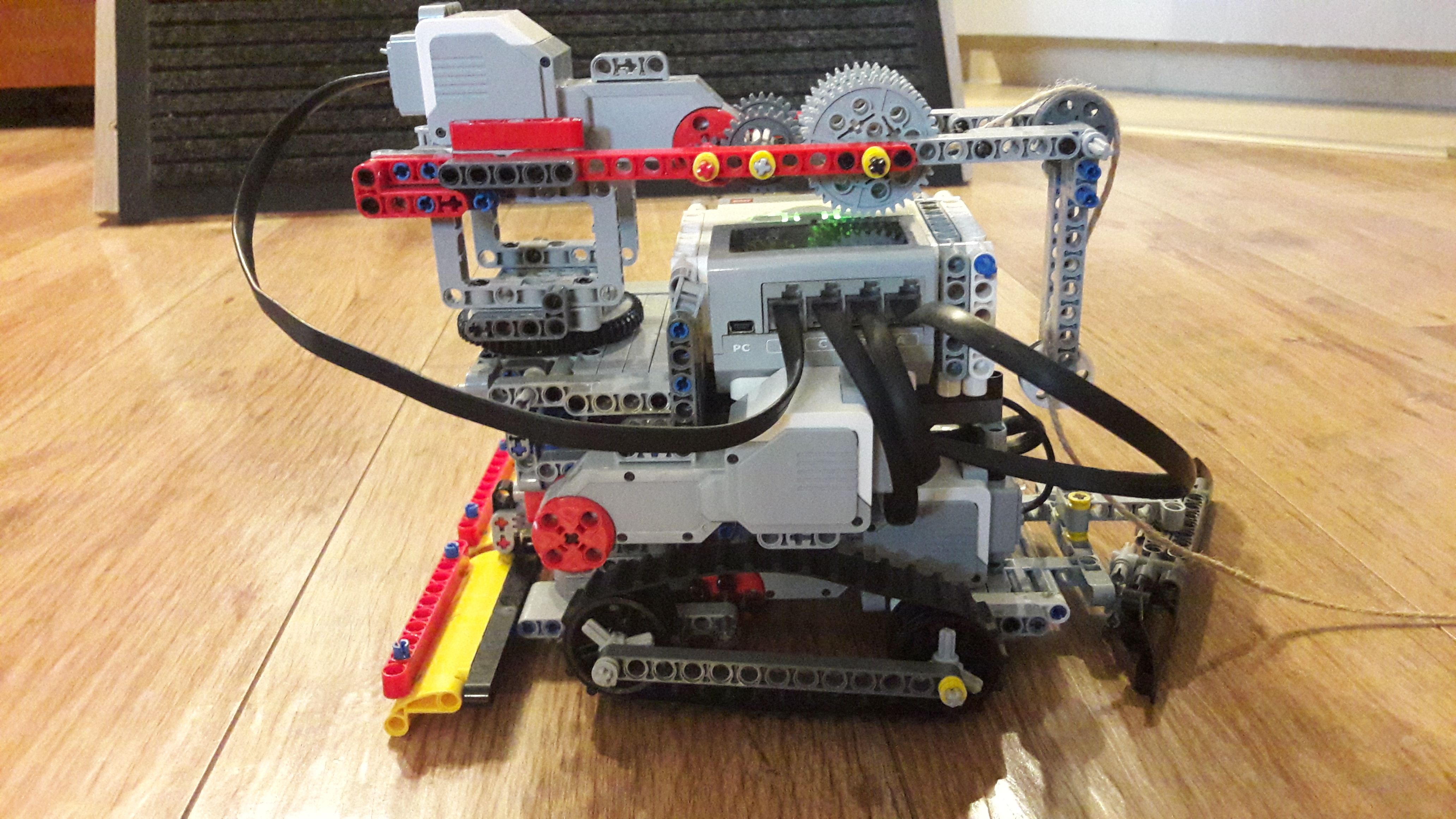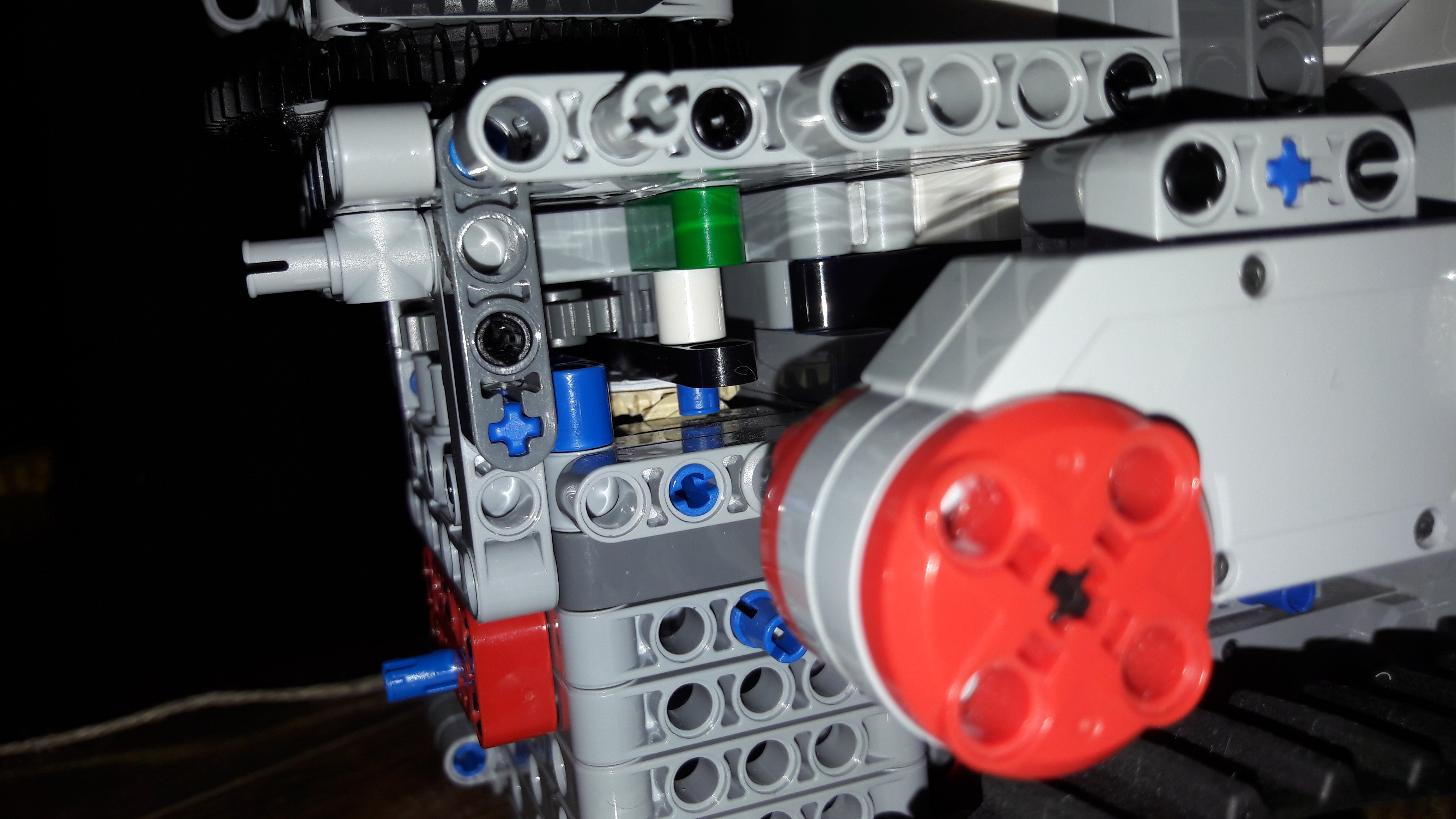 Ťažko sa mu otáčalo smerom hore. Tento problém sme vyriešili urobením silnejšieho prevodu na otáčavom ramene a vymenili sme medium motor za large pre extra silu.