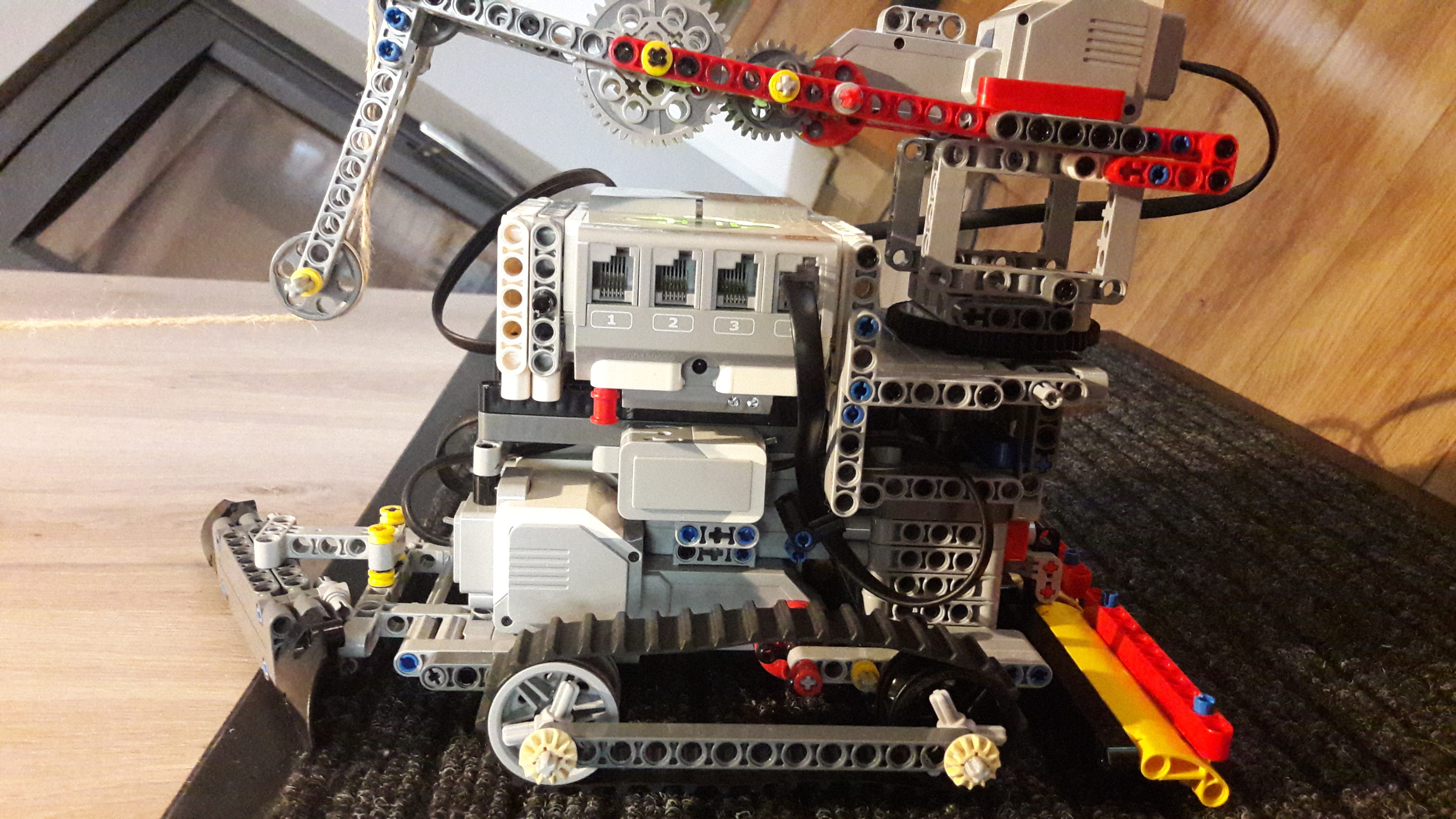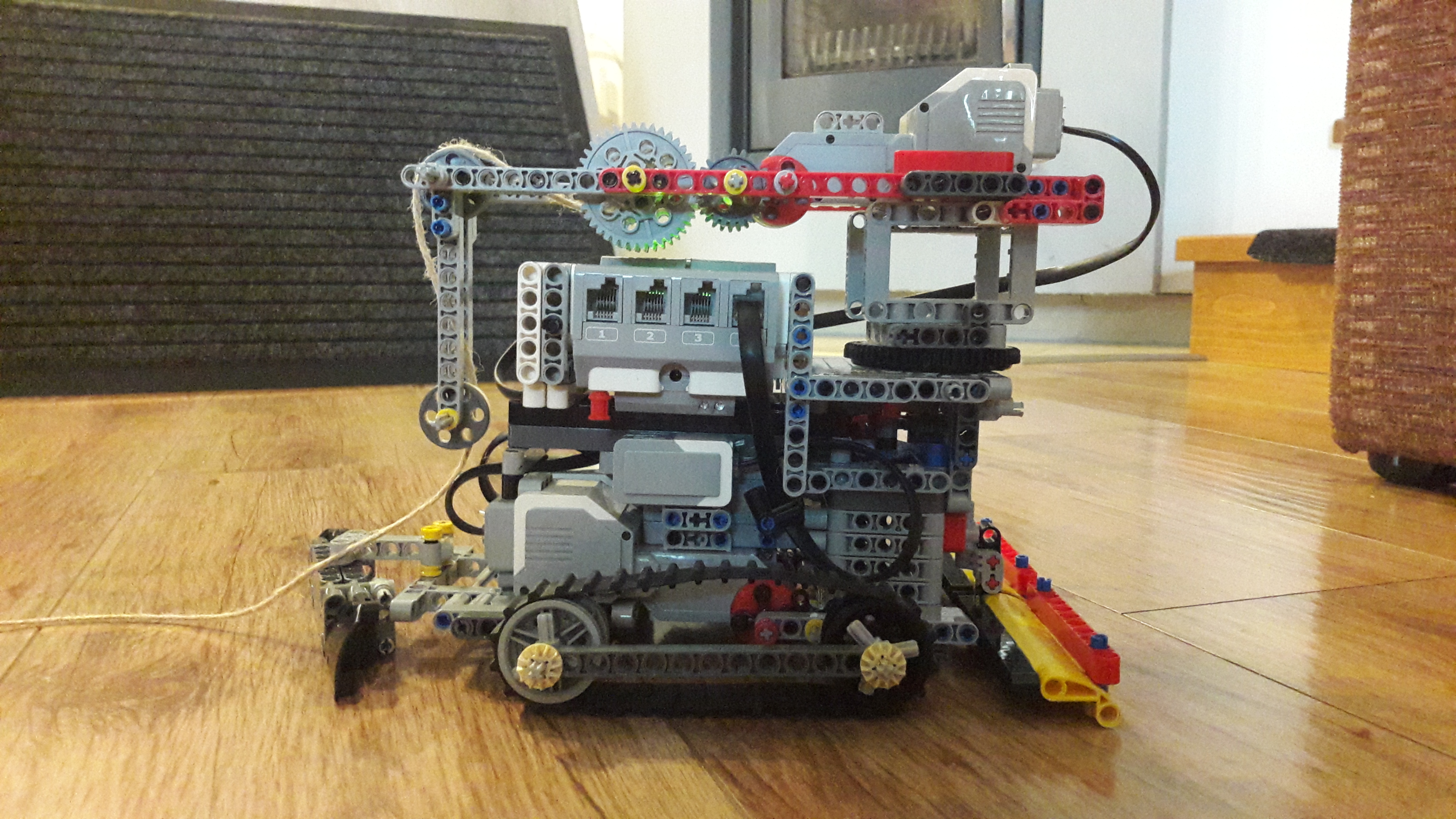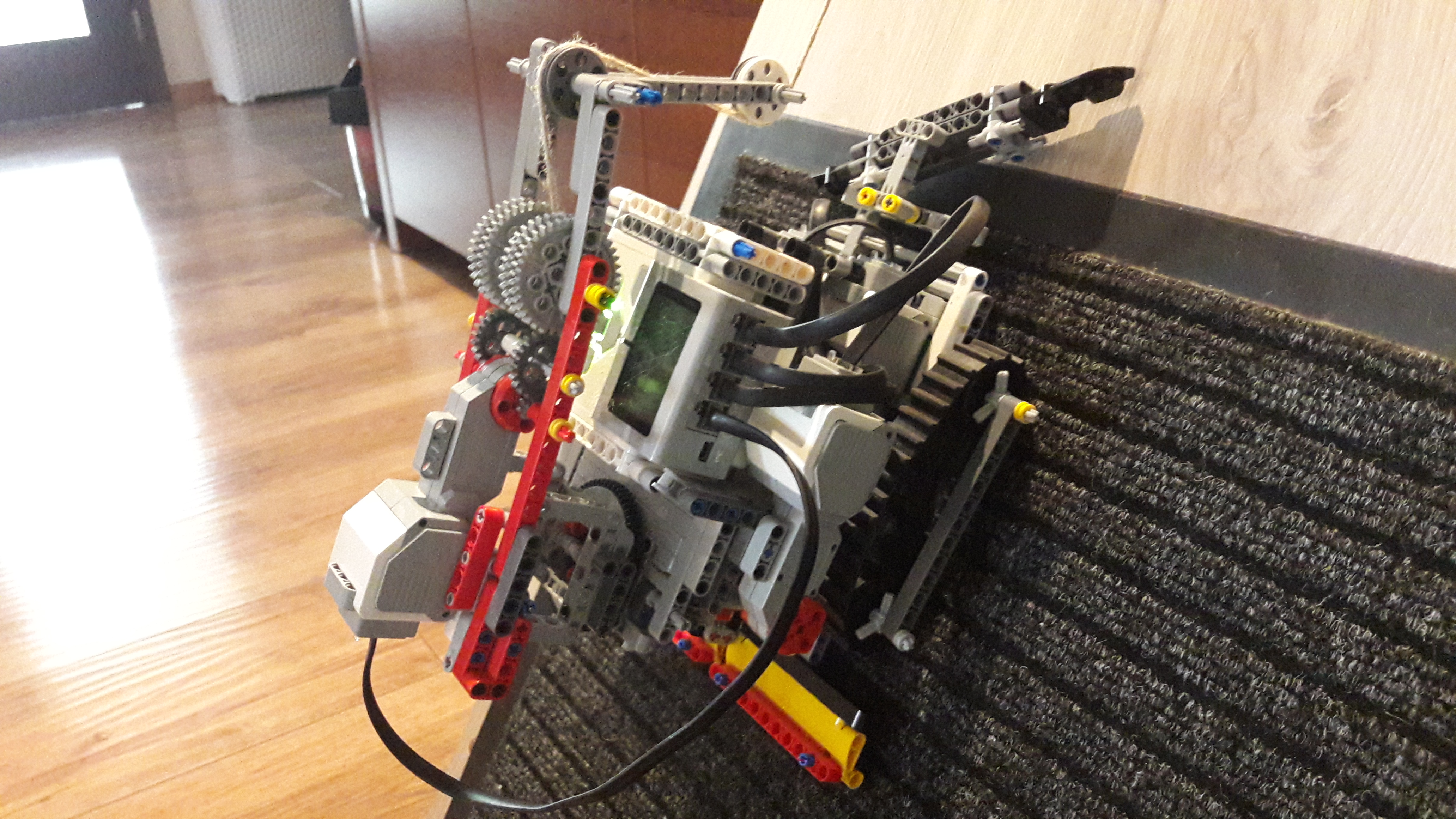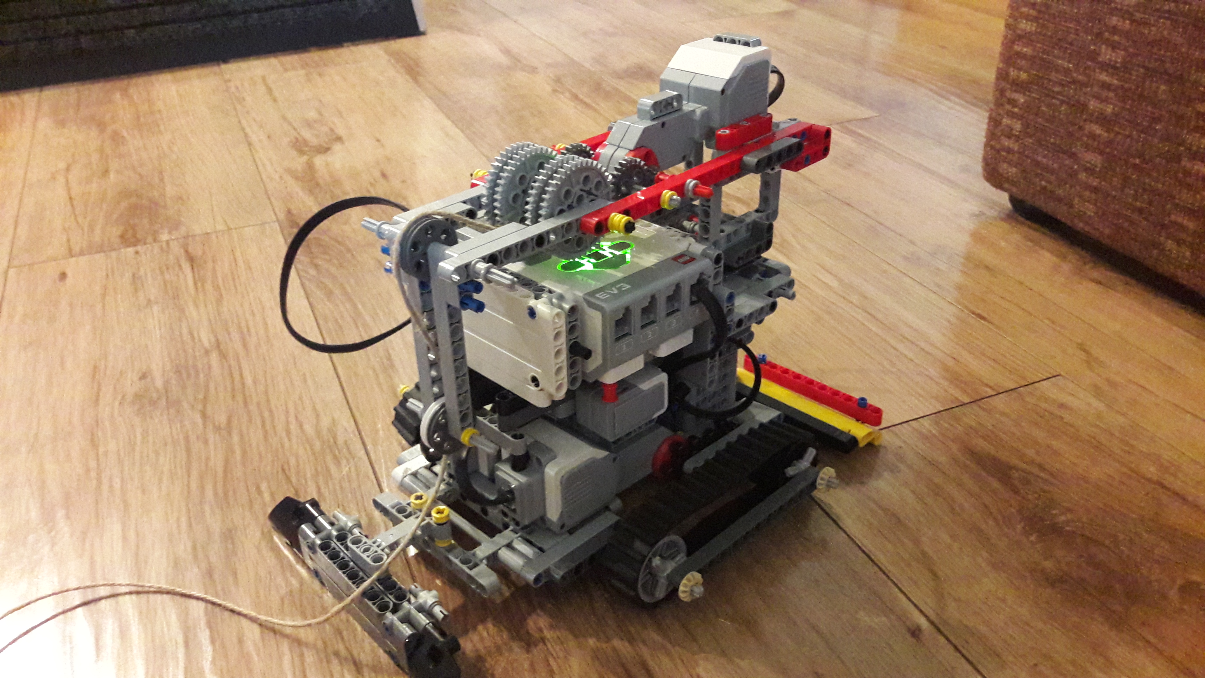 Ťažko sa mu otáčalo smerom hore. Tento problém sme vyriešili urobením silnejšieho prevodu na otáčavom ramene a vymenili sme medium motor za large pre extra silu.