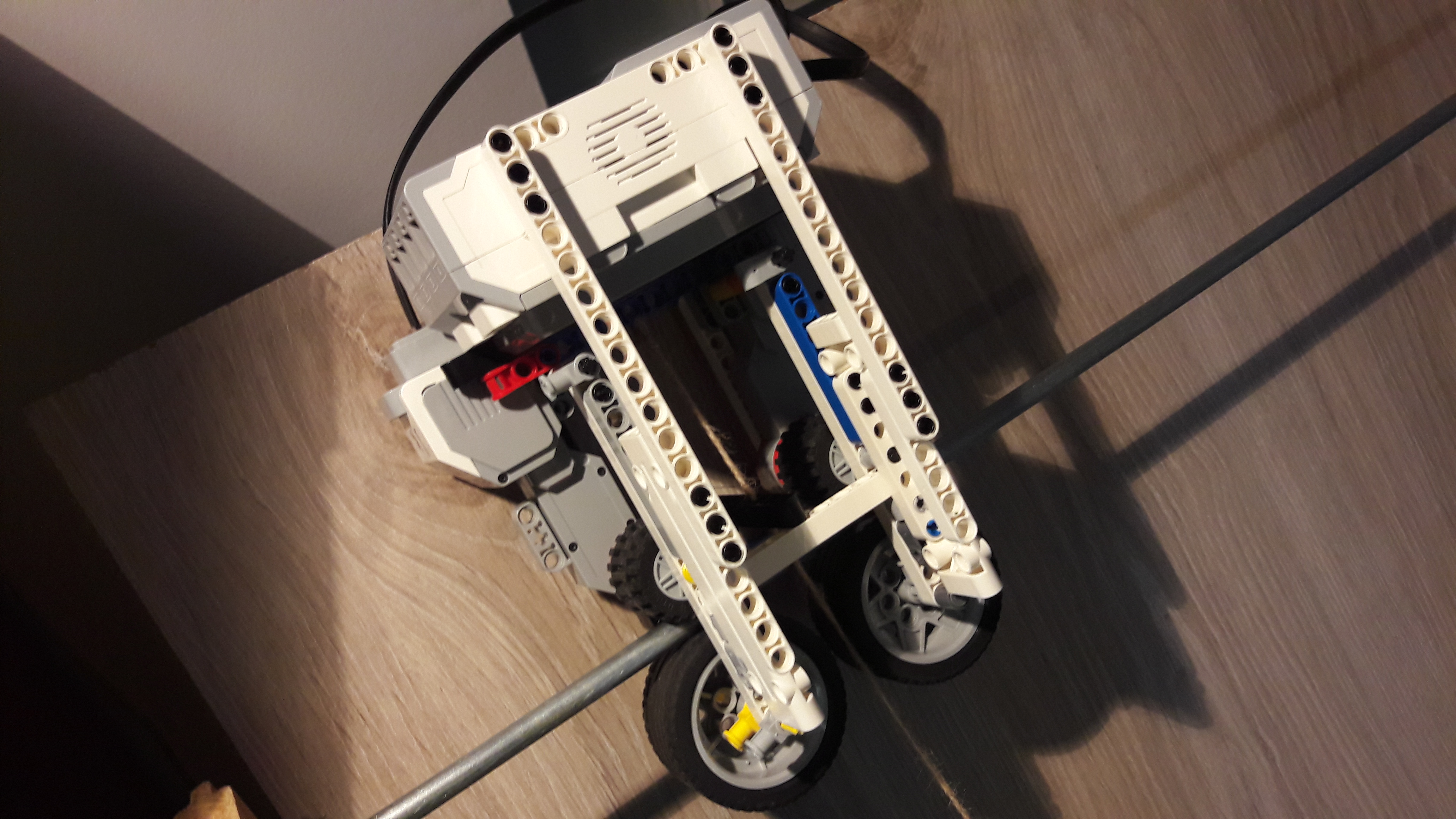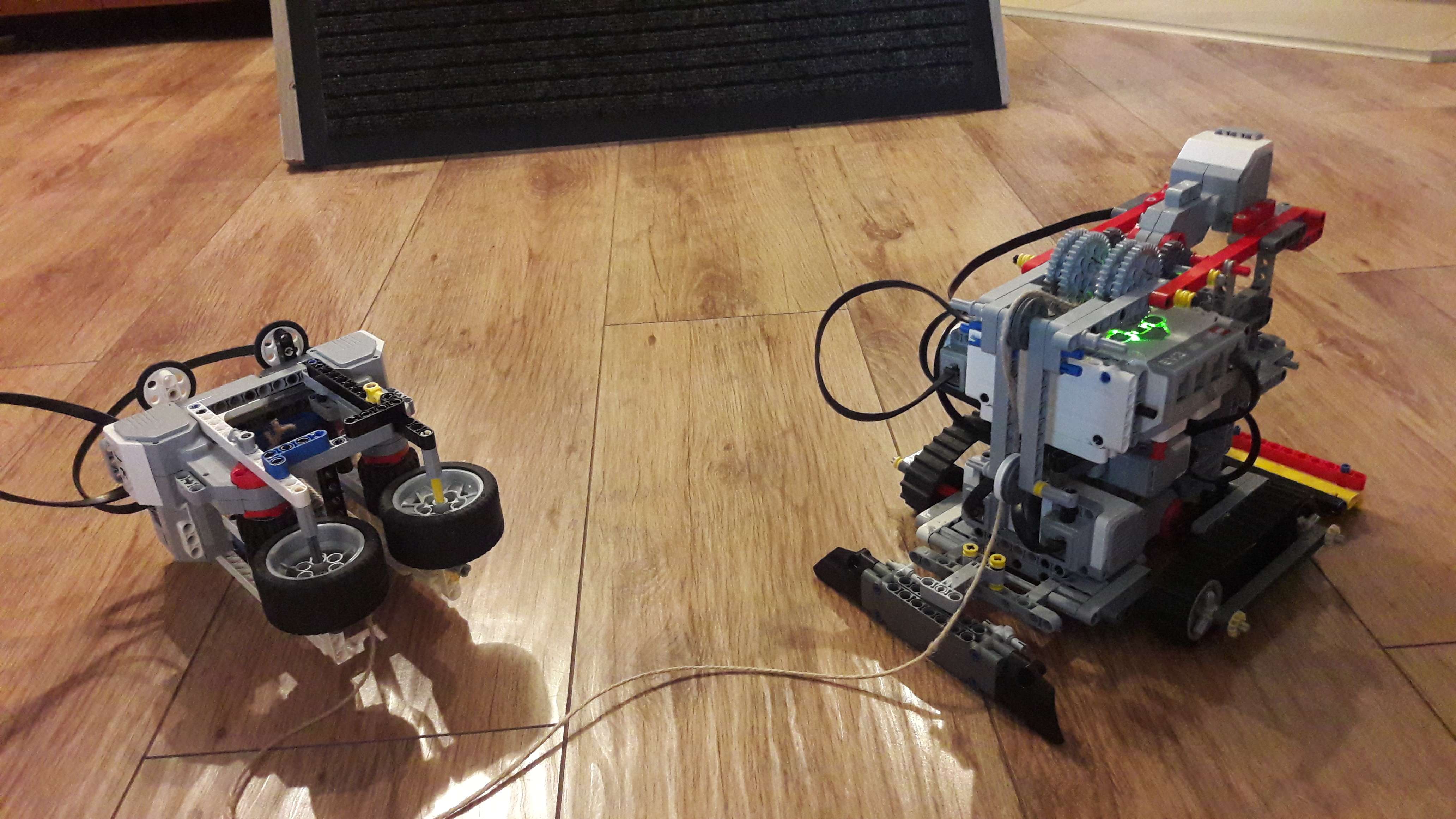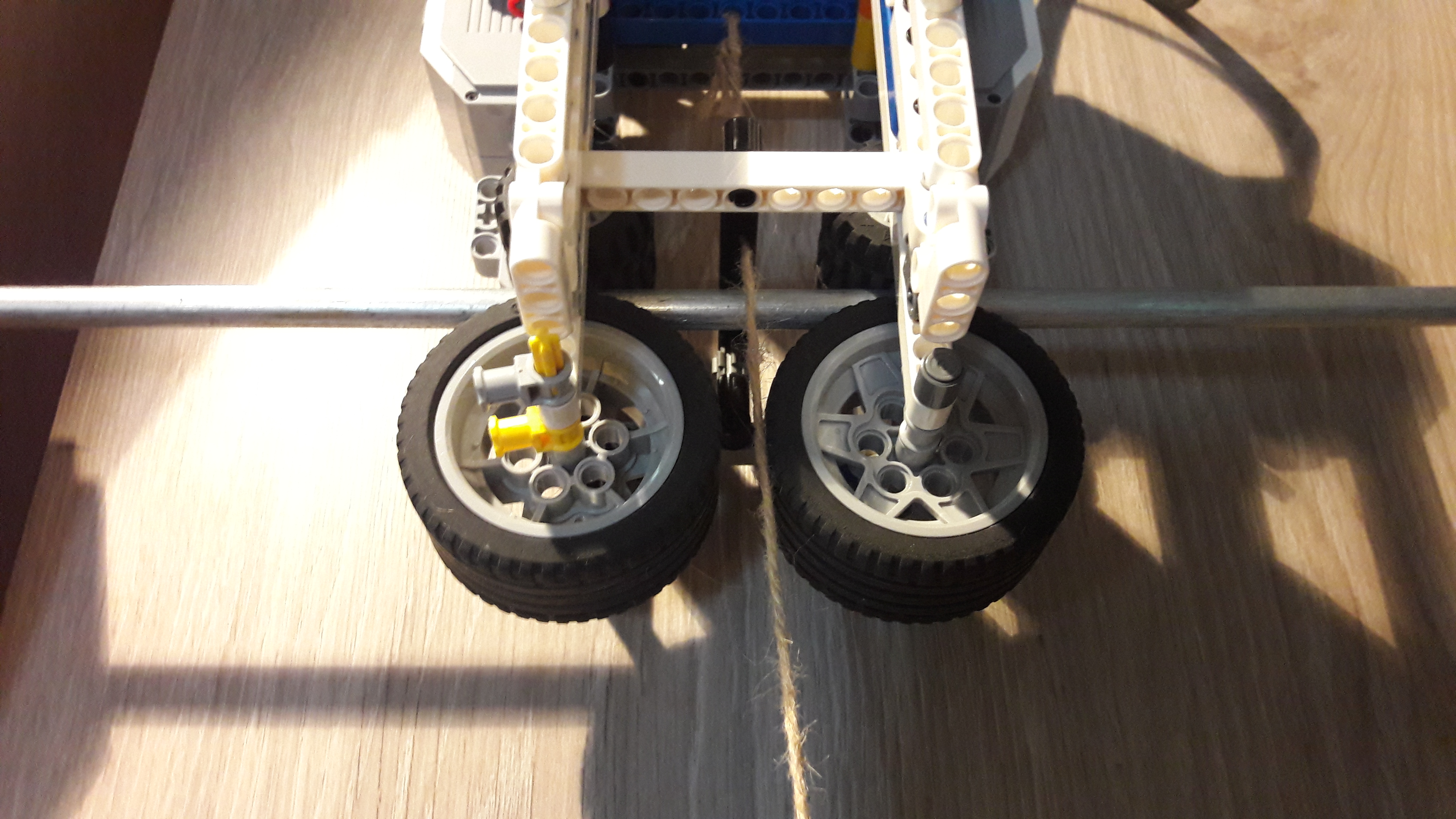 Na ňom sú 2 large motory s tvrdými kolesami. Tento robot má za úlohu posúvať miesto, kde je zakotvené lano. Nemáme jeden pevný bod v ktorom je zakotvené lano, lebo ratrak by sa stále snažil zarovnať s lanom čo by spôsobilo, že ratrak pôjde krivo.