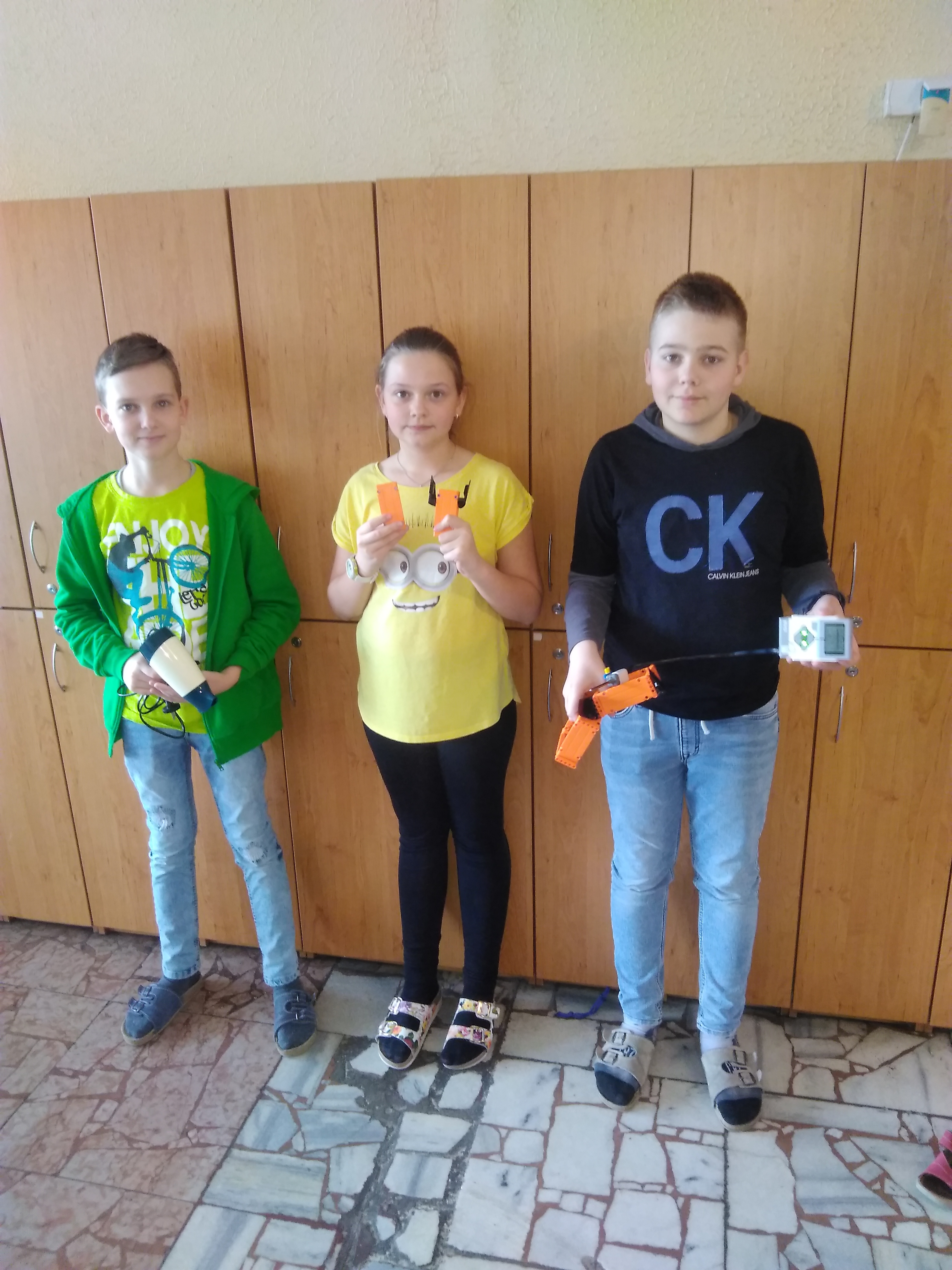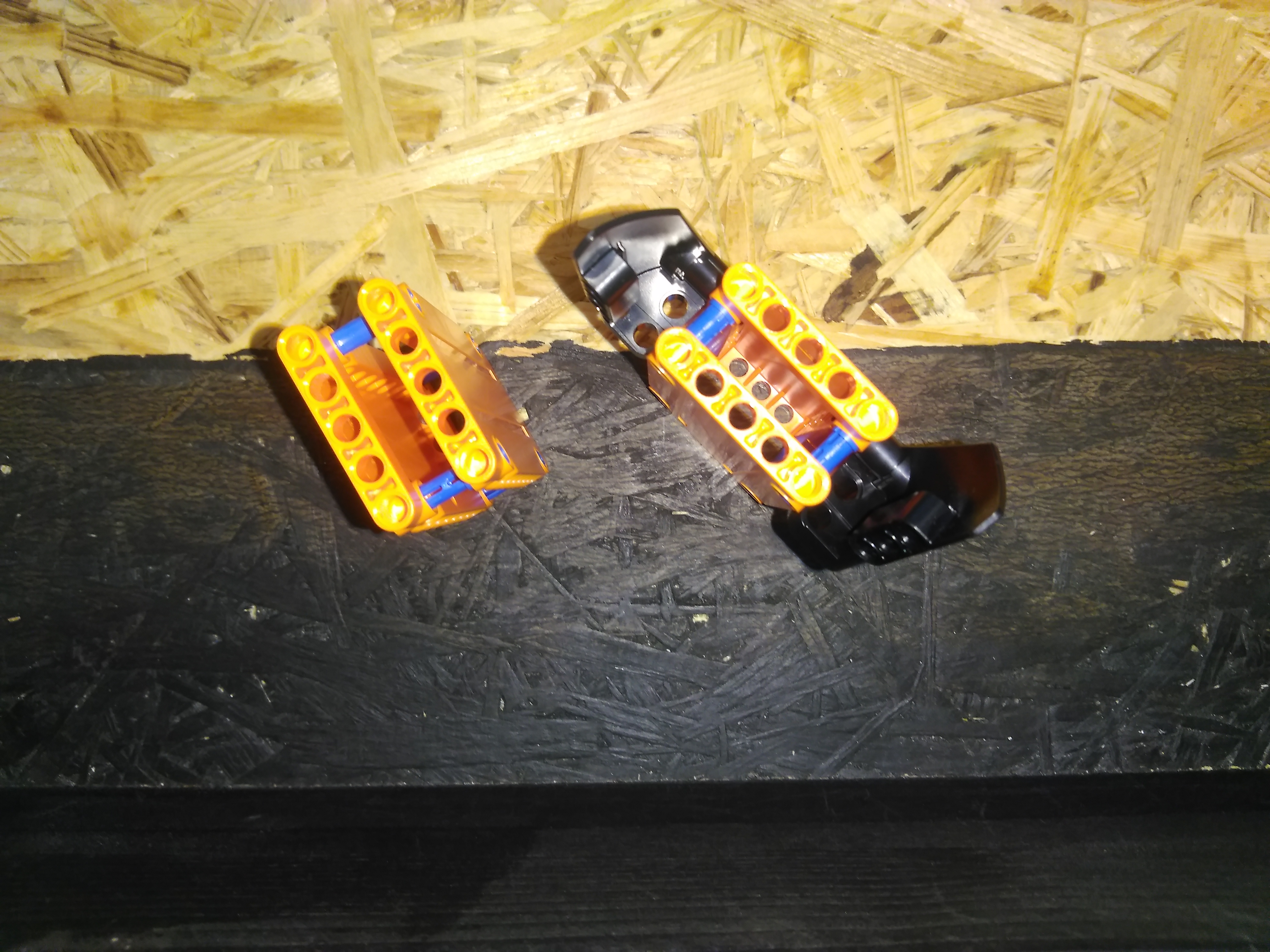 Konštrukciu netrvalo dlho postaviť. Postavili sme len štyri nástavce ktoré sme potom rozdelili na dve skupiny: veľké – tie môžete uvidieť vo videu ako prvé. Na jeden nástavec z tých veľkých sme pripevnili niečo ako krídla a ten druhý nástavec bol bez nich. Potom malé – tie môžete vidieť vo videu ako druhé. Na jeden nástavec sme pripevnili taktiež krídla ale tento krát menšie a druhý nástavec je bez nich.