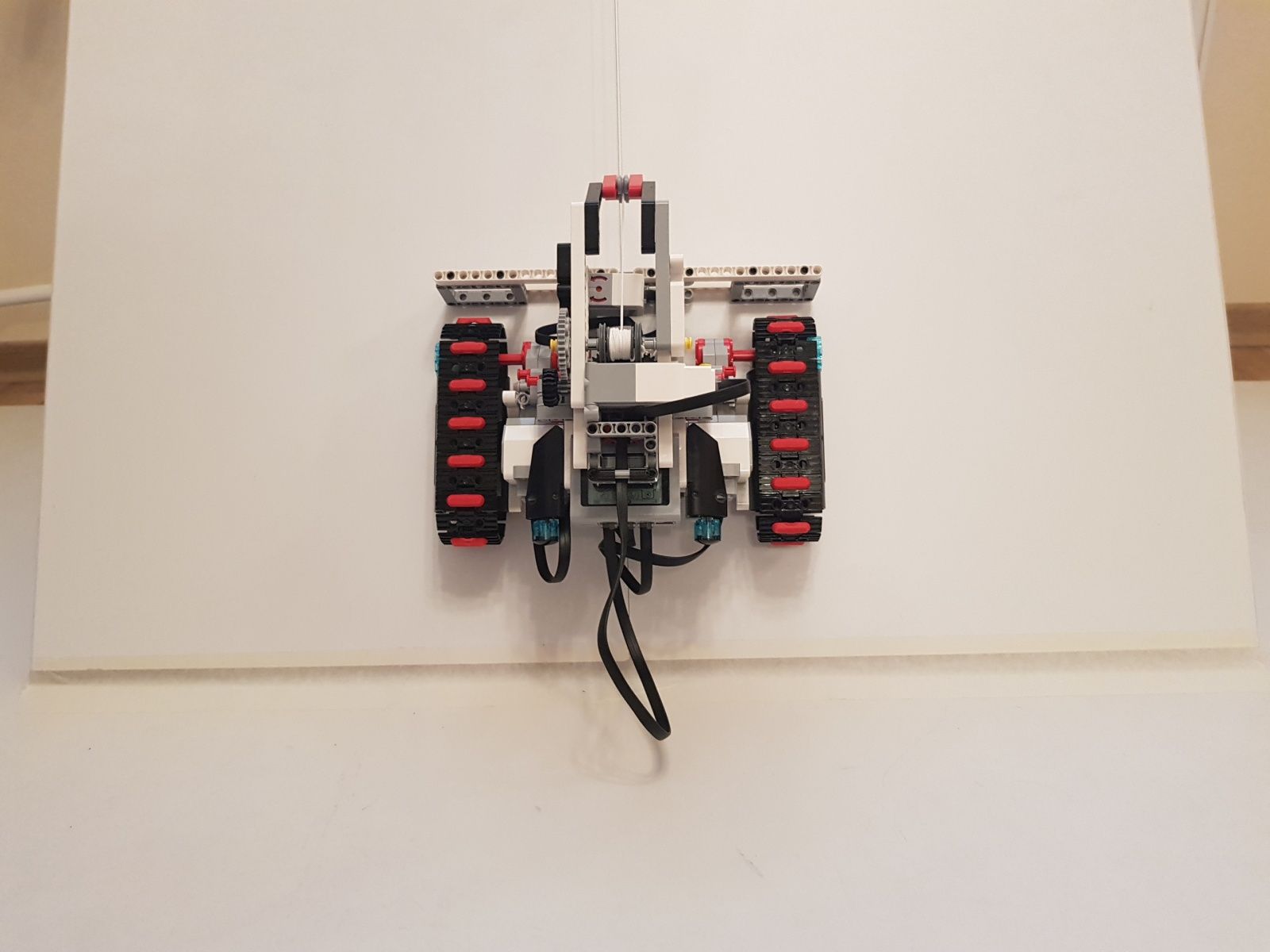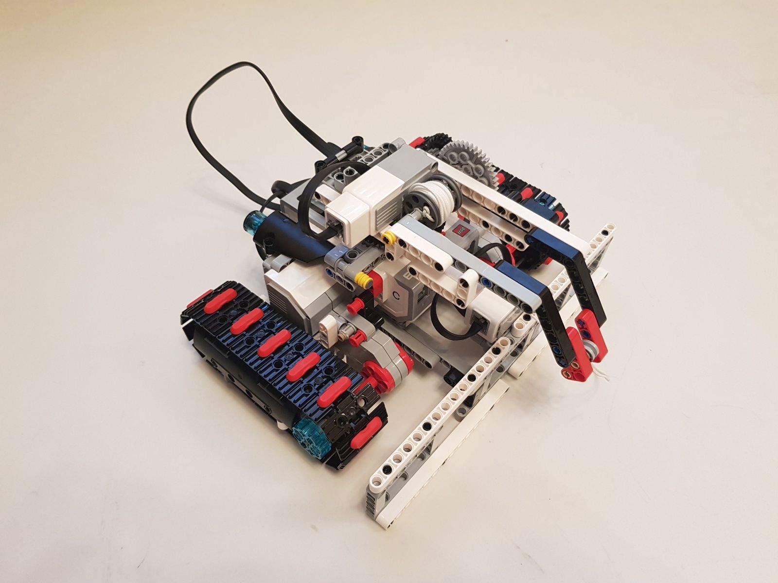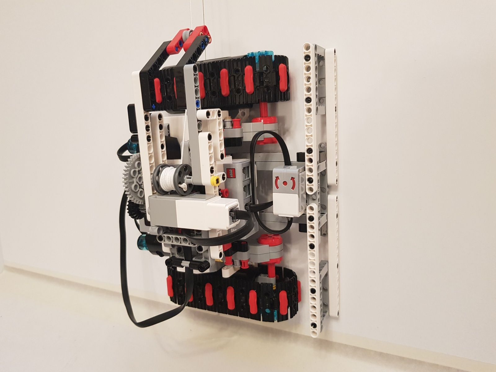Na pohyb robota sú použité dva veľké EV3 motory a jeden stredný EV3 na pohon navijaka s prevodovým pomerom 1:5. Na zvýšenie presnosti otáčania robota je použitý jeden gyro senzor. Robot používa jednu riadiace jednotku EV3.