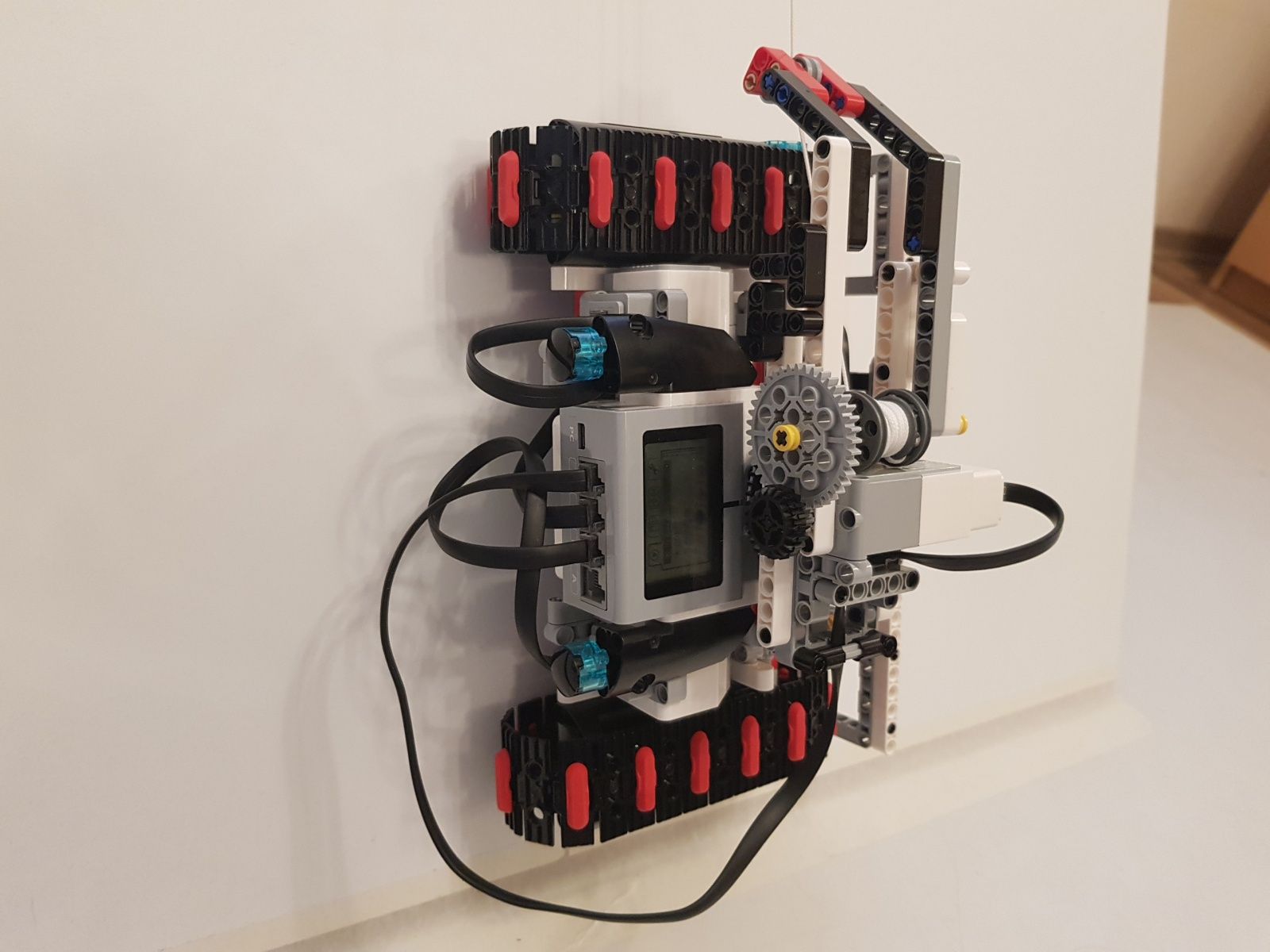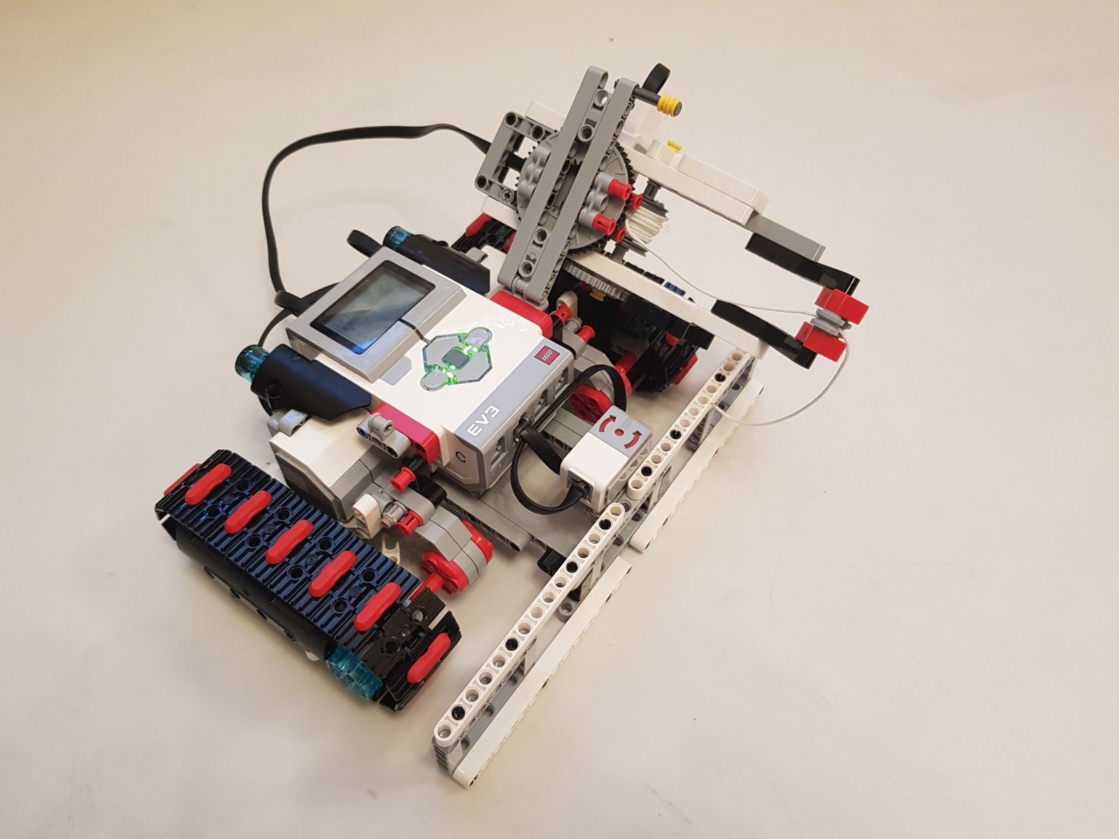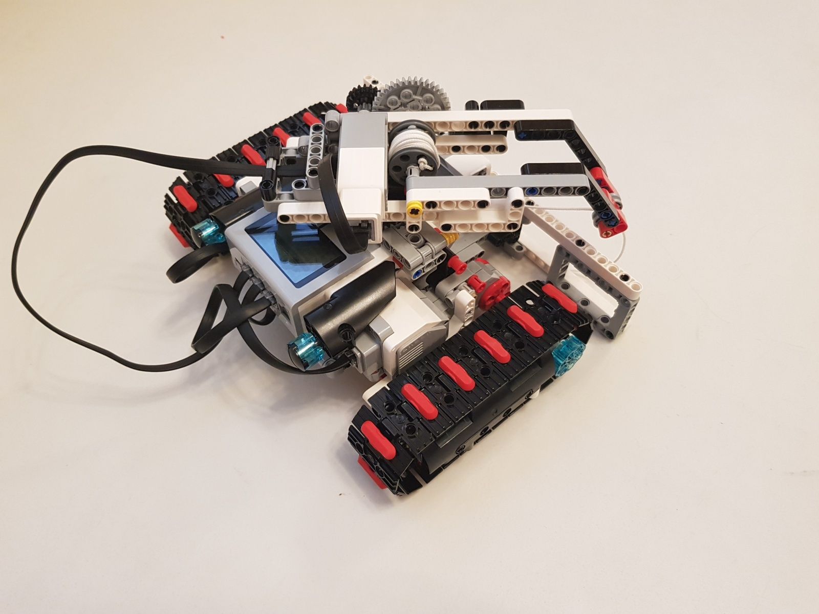 Na pohyb robota sú použité dva veľké EV3 motory a jeden stredný EV3 na pohon navijaka s prevodovým pomerom 1:5. Na zvýšenie presnosti otáčania robota je použitý jeden gyro senzor. Robot používa jednu riadiace jednotku EV3.