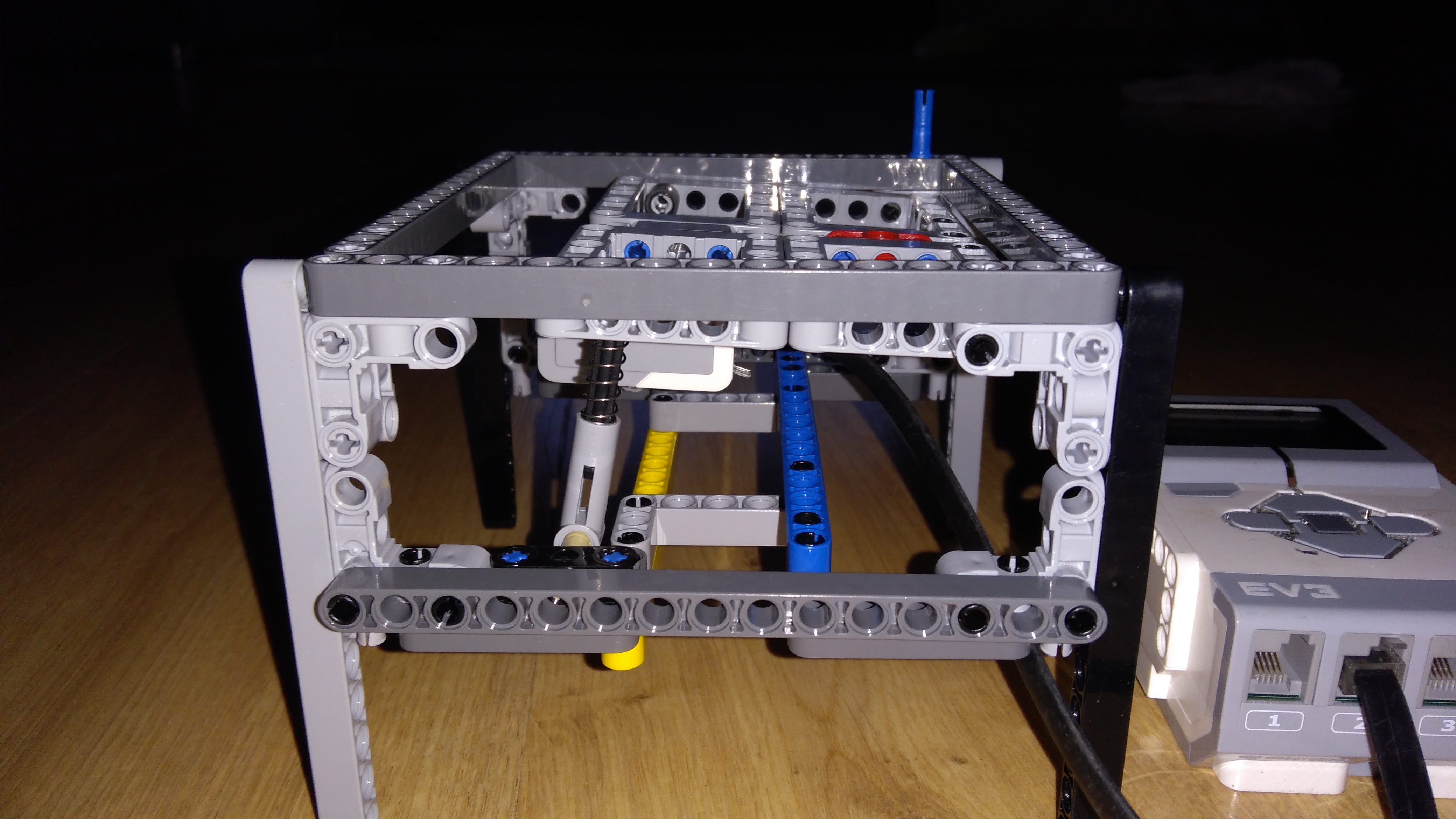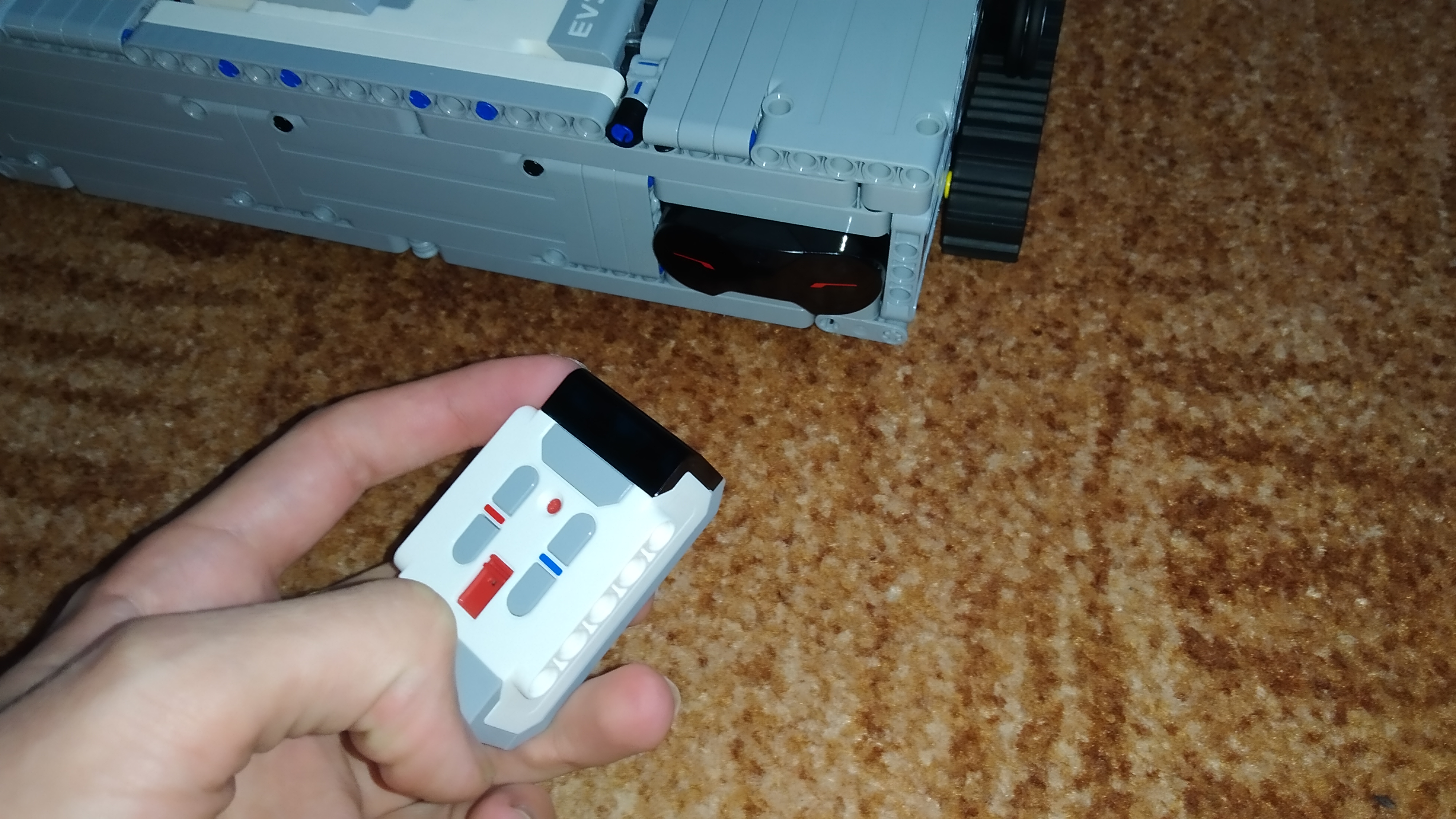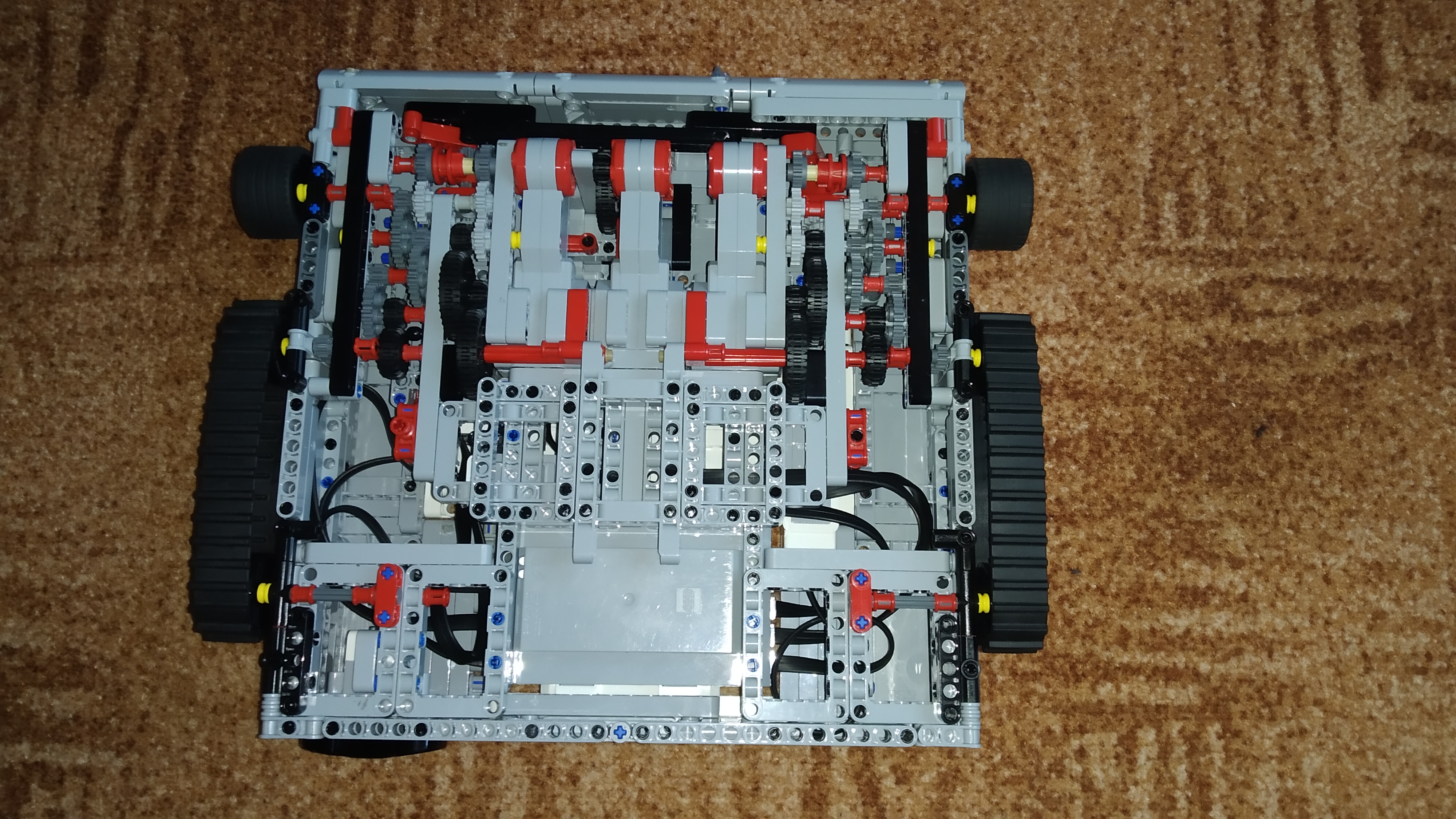 Dobrý deň, sme tím DonBot a toto je náše riešenie na úlohu Ratrak.Ratrak sa pohybuje pomocou dvoch gumených pásov, preskakovaniu pri vyššej záťaži zabraňuje pruženie s tromi nastaviteľnými úrovňami. Telo robota je veľmi široké a dlhé a pri malej výške je ťažisko v ideálnej polohe pre čo najlepšiu stabilitu na svahu. O pohon sa starajú dva veľké motory, a taktiež automatická dvojstupňová prevodovka. Prevody sú 9:1 (slabší ale rýchlejší) a 15:1 (silnejší ale pomalší), prehadzovanie riadi jeden stredný motor. Motorom na pohyb pomáha aj navijak s menším prevodom, poháňaný taktiež jedným veľkým motorom. Medzi ľavým motorom a navijakom je miesto pre diaľkové ovládanie, ktorým je možné robota ovládať. Prítomný je otvor pre navijak a tiež dvierka na ukrytie ovládača. V zadnej časti robota je prijímač (infračervený senzor) a dvierka na pohodlnejšie nabíjanie. Informácie o náklone poskytujú 2 gyro senzory.Posielame 2 verzie programu: starší program nedokázala EV3 kocka dobre spracovať, preto sme ho museli celý prerobiť. Tento starší program zobrazoval údaje o náklone (v novom programe sa už gyrosenzory nepoužívajú), rýchlosti motorov, prevodovom stupni a polohe navijaka, mal dokonca aj pohyblivý nadpis :) Podarilo sa nám ho raz spustiť, potom to však už na druhý deň nebolo možné :(